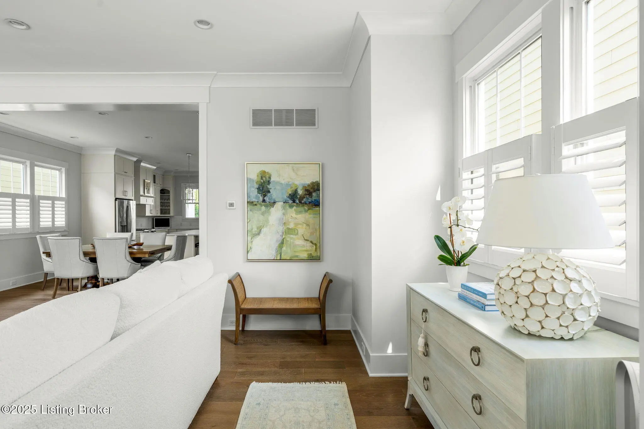 Welcome to 6424 Passionflower Drive, a beautifully designed 4-bedroom, 3.5-bath home located on a picturesque street in the highly sought-after Geothermal section of Norton Commons. In a neighborhood known for its front porch charm—where backyards are rare—this stunning home by Simpson Builders is a true standout. Step inside to discover a spacious, open-concept floor plan filled with timeless elegance. Every corner of this home showcases meticulous craftsmanship, with detailed trim work, built-ins, crown molding, custom ceiling features, and plantation shutters that filter in natural light throughout. At the heart of the home is a chef-inspired kitchen featuring floor-to-ceiling cabinetry, a large quartz island, a dual-fuel range, a walk-in pantry, and a dedicated workstation— perfect for working from home or staying organized. The luxurious primary suite offers a large custom walk-in closet, and a spa-like bathroom with a tiled walk-in shower and dual-sink custom vanity. 2 additional bedrooms on the second floor share a beautifully designed full bathroom with tile surround and a custom vanity. The finished lower level continues the high-quality finishes of the main floor. It features a spacious family room with custom bar cabinetry, a quartz counter top, beverage center. An additional bedroom, a full designer bathroom, and generous storage space. Step outside to enjoy evenings on your covered back porch, unwind in the private courtyard, or host friends on the large patio a lovely outdoor oasis in this community. Located just steps or short golf cart ride away from parks, schools, pools, local boutiques, dining, and vibrant community events, this home embodies everything Norton Commons has to offer. Schedule your showing today and come experience more life per square foot at 6424 Passionflower Drive.