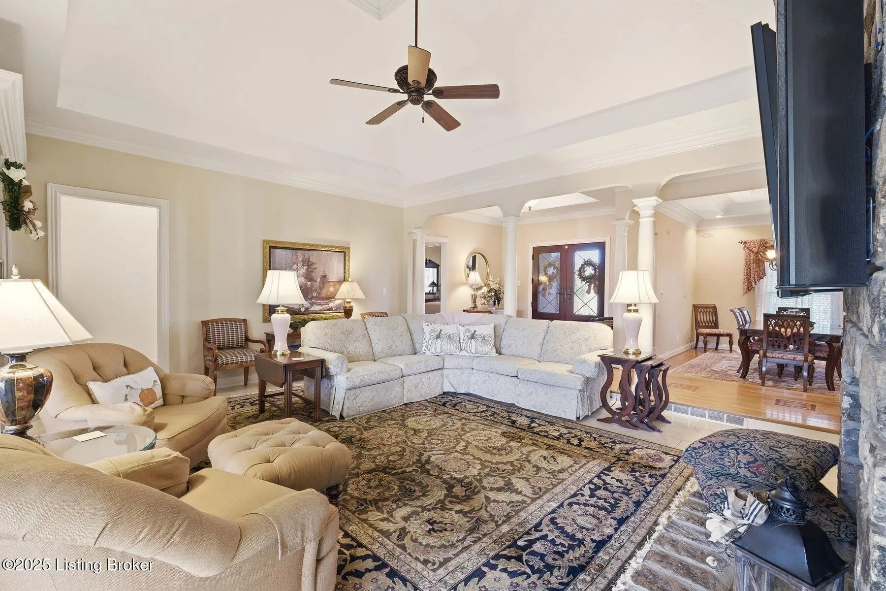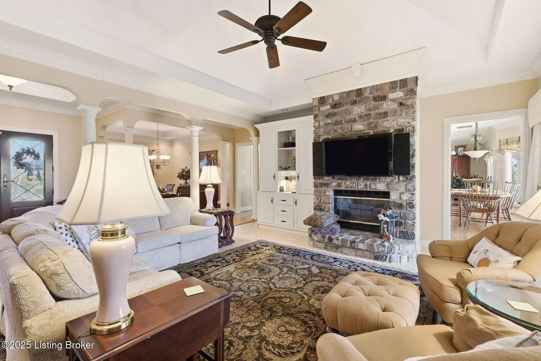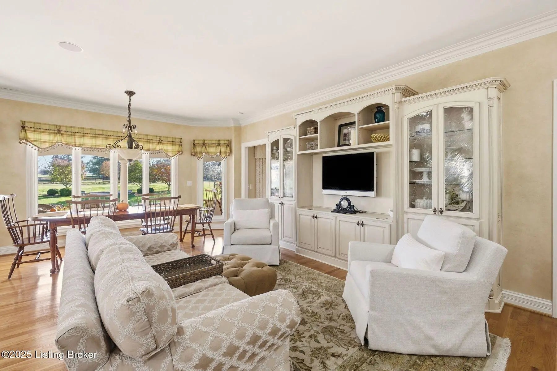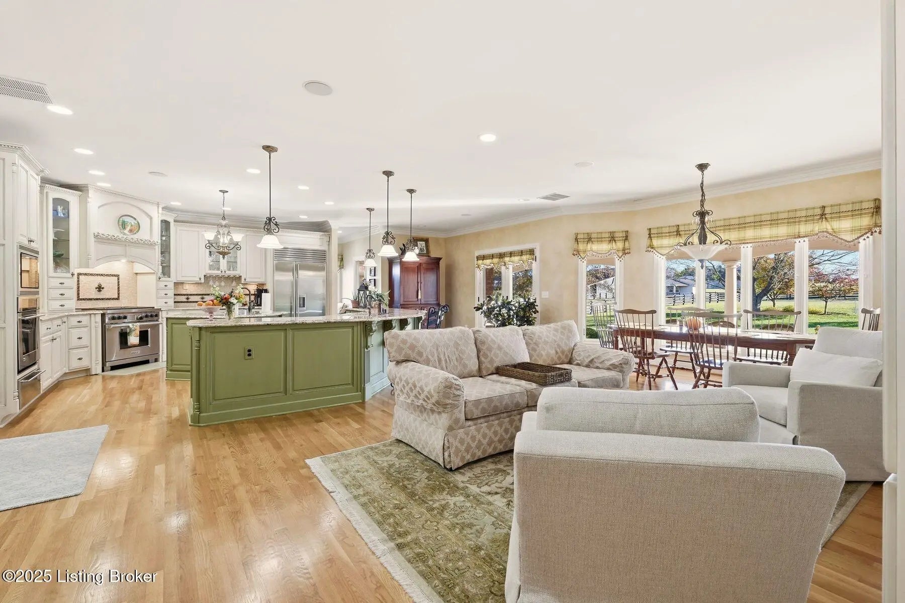 Stunning custom-built ranch home set on a pristine 2.8-acre property, offering three bedrooms and four full baths. This completely updated residence features a gourmet kitchen equipped with Sub-Zero refrigeration, Wolf appliances, custom cabinetry, and a spacious eating area that flows seamlessly into the inviting family room. Elegant formal living and dining rooms showcase beautiful tray ceilings, while the luxurious primary suite includes a private sitting area, tray ceilings, a spa-inspired bath with soaking tub, steam shower, heated floors, and a custom-designed walk-in closet. Two additional bedrooms feature vaulted ceilings and share a well-appointed Jack-and-Jill bath. The impressive lower level provides exceptional additional living space, including a large great room, theater room, workout room, craft room, full bath, and a second kitchenideal for entertaining or extended-stay guests. Additional highlights include central vacuum and a first-floor laundry with abundant storage. Outdoor living shines with a large covered rear porch complete with a fireplace and built-in sound system. The expansive grounds include fenced paddock areas and a meticulously maintained barn with one stall. Thoughtfully landscaped and impeccably cared for, the property is enhanced by custom driveway pavers and an impressive entrance. A truly exceptional home offering luxury, comfort, and unmatched craftsmanship. Call today for your private showing.