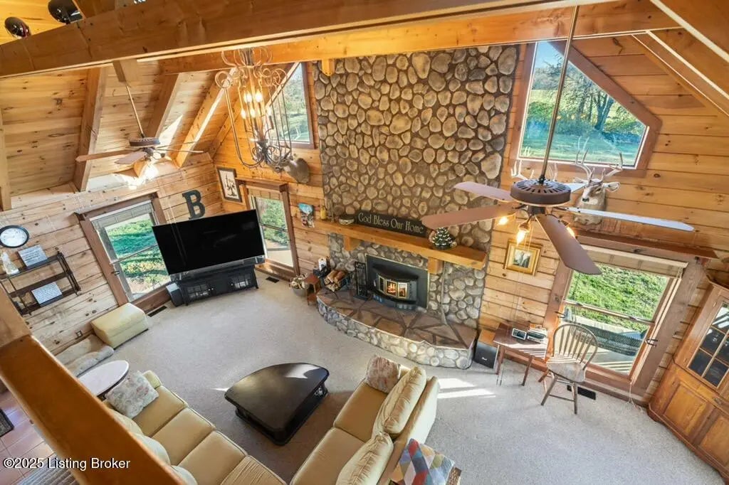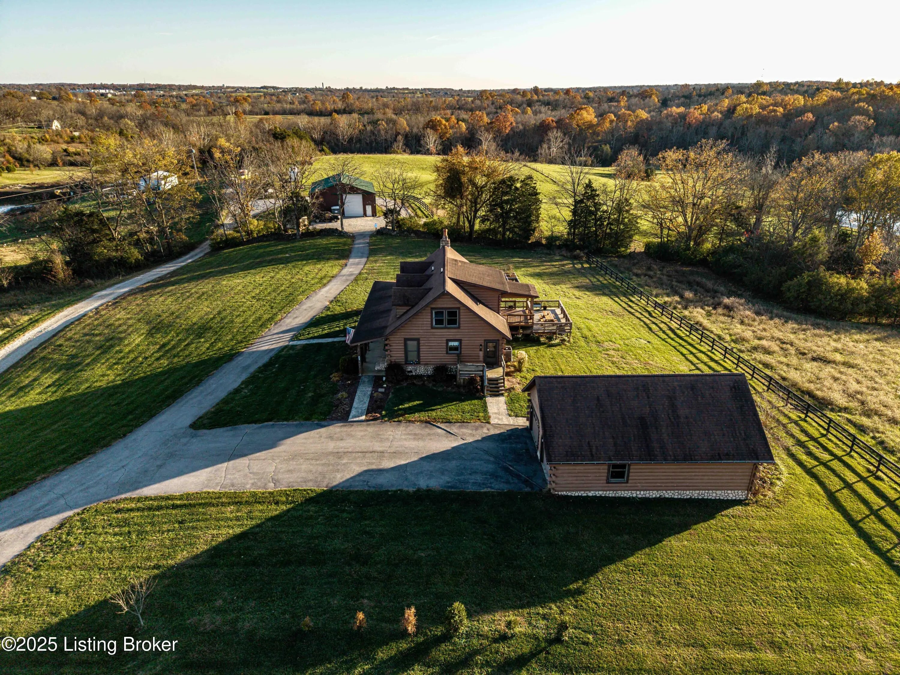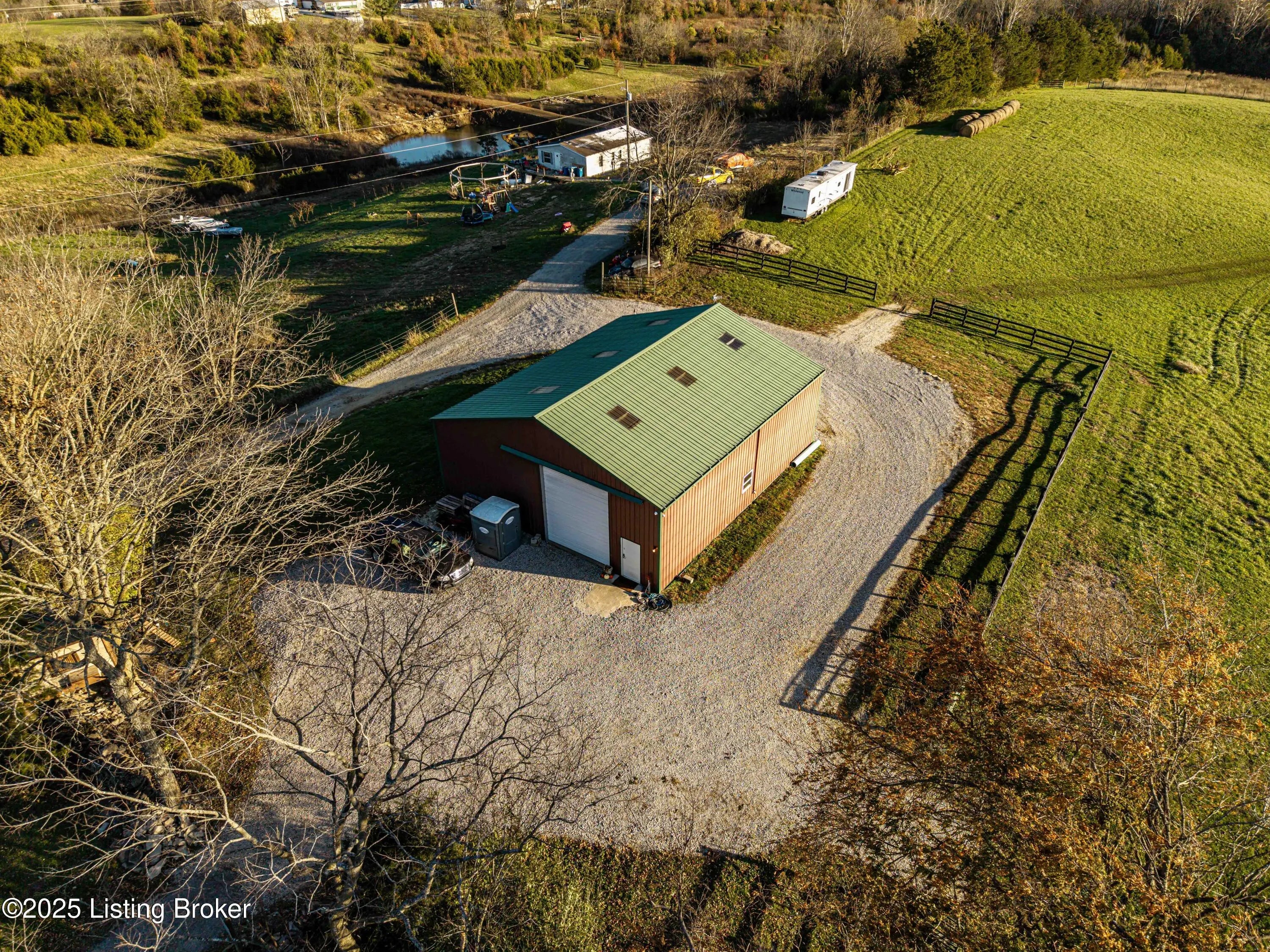 Discover this Beautiful, Conveniently Located yet Private property offering almost 35 Acres of Scenic, Versatile, and Inviting land. This Remarkable mini-farm features a Charming story-and-a-half Log home with Warm Log Interior, Vaulted, Beamed Ceilings, a Wood-Burning Fireplace (see disclosure), and a Cozy Loft that could serve as an additional bedroom. Enjoy Abundant Natural Light from the many windows, along with Separate Laundry, Two and a Half Baths, a Magnificent First Floor Primary EnSuite, and a Spacious, Relaxing Wraparound Deck with a covered section and a grill deck below—perfect for outdoor living. The land includes Beautiful Board Fencing, a Watering Trough, a Treehouse-Style Chicken Coop, a Raised Garden Bed, and a Half-Acre Stocked Pond for peaceful enjoyment. For your... For your agricultural or recreational needs, the property is already set up with Eight Campsites featuring raised fire pits. It is zoned Agri-Tourism, adding even more Exciting potential. (For more pictures, see Bourbon Trail Campgrounds.) Outbuildings include a 40 X 40 Barn with a Large Lean-To Overhang and 2 Finished Stalls with room for up to 6, and a Spacious 50×40 Shop with electricity, generator, concrete floors, a loft, RV-Sized Garage Doors, a 50 Amp Hook-Up, and a closed-in officecreating endless Functional and Flexible workspace options. Additionally, there is a Two and a Half Car Detached Garage. The Massive 34+ Acres, featuring 4 Fields for Rotation capability, is Conveniently located near the Bourbon Trail and Bluegrass Parkway, as well as Lexington and Louisville. With Expansive Views, Peaceful Surroundings, and Unlimited Possibilities, this property truly offers a Unique and Captivating lifestyle. Call for your private showing, and PACK YOUR BAGS!