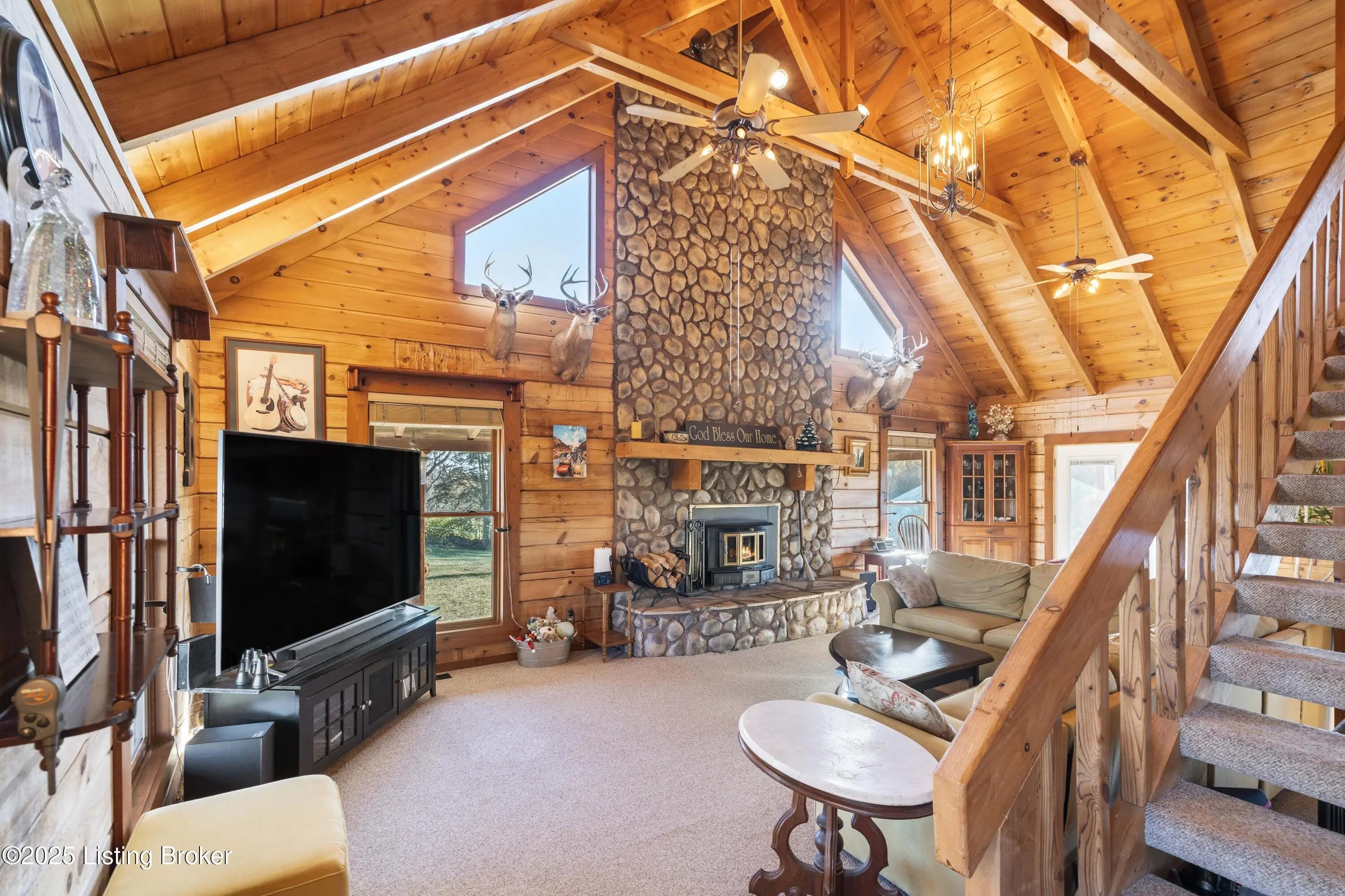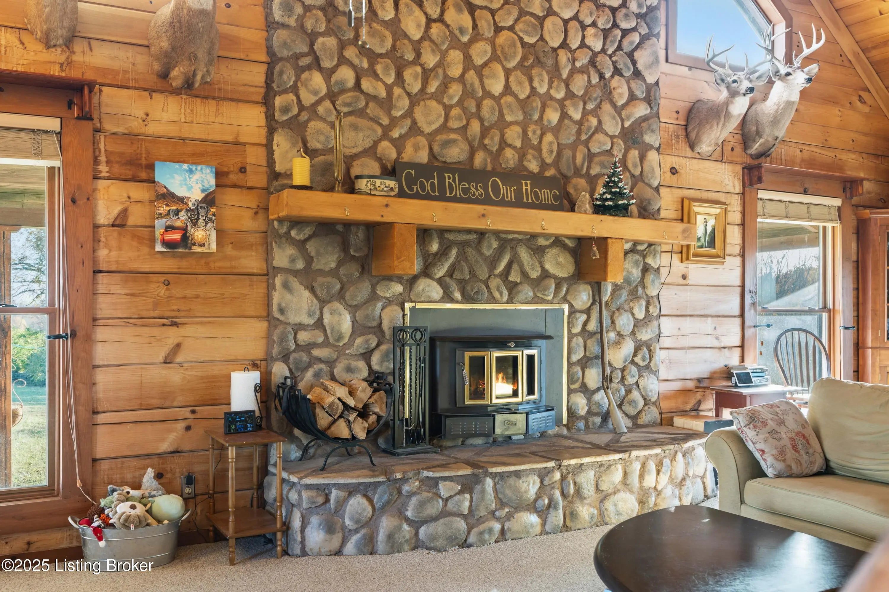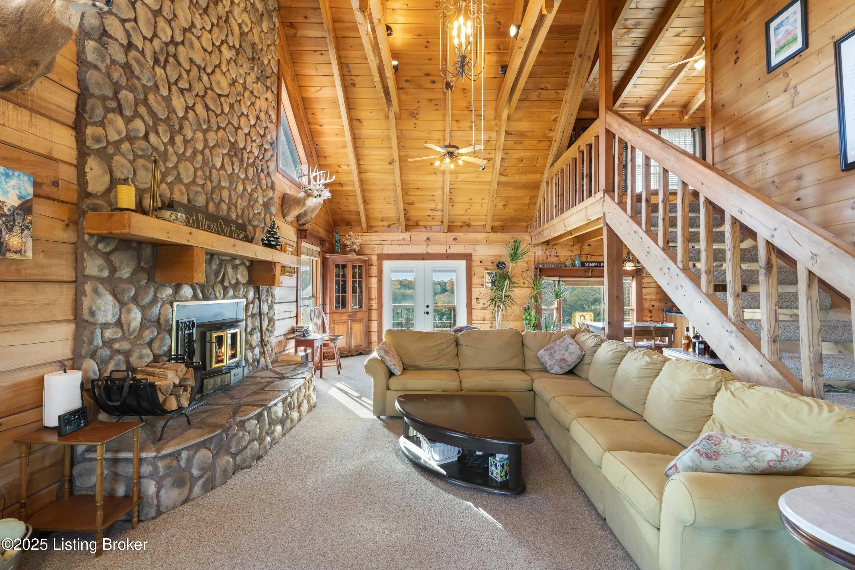 Discover this Beautiful, Conveniently Located yet Private property offering almost 35 Acres of Scenic, Versatile, and Inviting land. This Remarkable mini-farm features a Charming story-and-a-half Log home with Warm Log Interior, Vaulted, Beamed Ceilings, a Wood-Burning Fireplace (see disclosure), and a Cozy Loft that could serve as an additional bedroom. Enjoy Abundant Natural Light from the many windows, along with Separate Laundry, Two and a Half Baths, a Magnificent First Floor Primary EnSuite, and a Spacious, Relaxing Wraparound Deck with a covered section and a grill deck below—perfect for outdoor living. The land includes Beautiful Board Fencing, a Watering Trough, a Treehouse-Style Chicken Coop, a Raised Garden Bed, and a Half-Acre Stocked Pond for peaceful enjoyment. For your... For your agricultural or recreational needs, the property is already set up with Eight Campsites featuring raised fire pits. It is zoned Agri-Tourism, adding even more Exciting potential. (For more pictures, see Bourbon Trail Campgrounds.) Outbuildings include a 40 X 40 Barn with a Large Lean-To Overhang and 2 Finished Stalls with room for up to 6, and a Spacious 50×40 Shop with electricity, generator, concrete floors, a loft, RV-Sized Garage Doors, a 50 Amp Hook-Up, and a closed-in officecreating endless Functional and Flexible workspace options. Additionally, there is a Two and a Half Car Detached Garage. The Massive 34+ Acres, featuring 4 Fields for Rotation capability, is Conveniently located near the Bourbon Trail and Bluegrass Parkway, as well as Lexington and Louisville. With Expansive Views, Peaceful Surroundings, and Unlimited Possibilities, this property truly offers a Unique and Captivating lifestyle. Call for your private showing, and PACK YOUR BAGS!