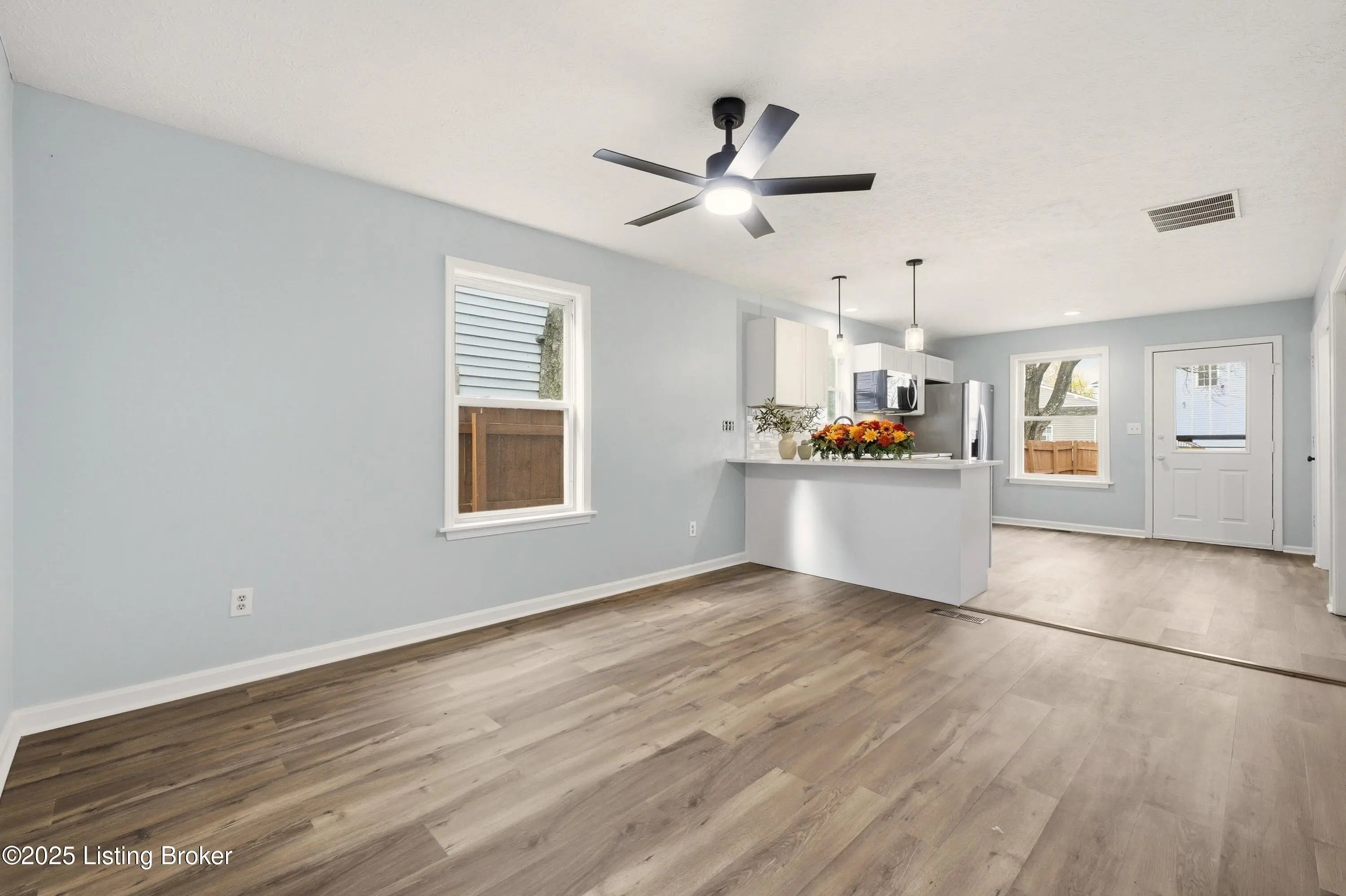 Beautifully renovated 3 bed, 2 bath home in historic Smoketown! Walking distance to Logan Street Market, Shelby Park, and local shops, with quick access to downtown Louisville. Updates include new paint throughout, luxury vinyl plank flooring (20-mil, scratch-resistant and waterproof), new hardware, new kitchen cabinets, new appliances, new vanities, new toilets, new bathroom fans, and new fans throughout. Exterior upgrades feature a new back deck, repaired and stained fence gate, refreshed front landscaping, and a Nest thermostat. Move-in ready!