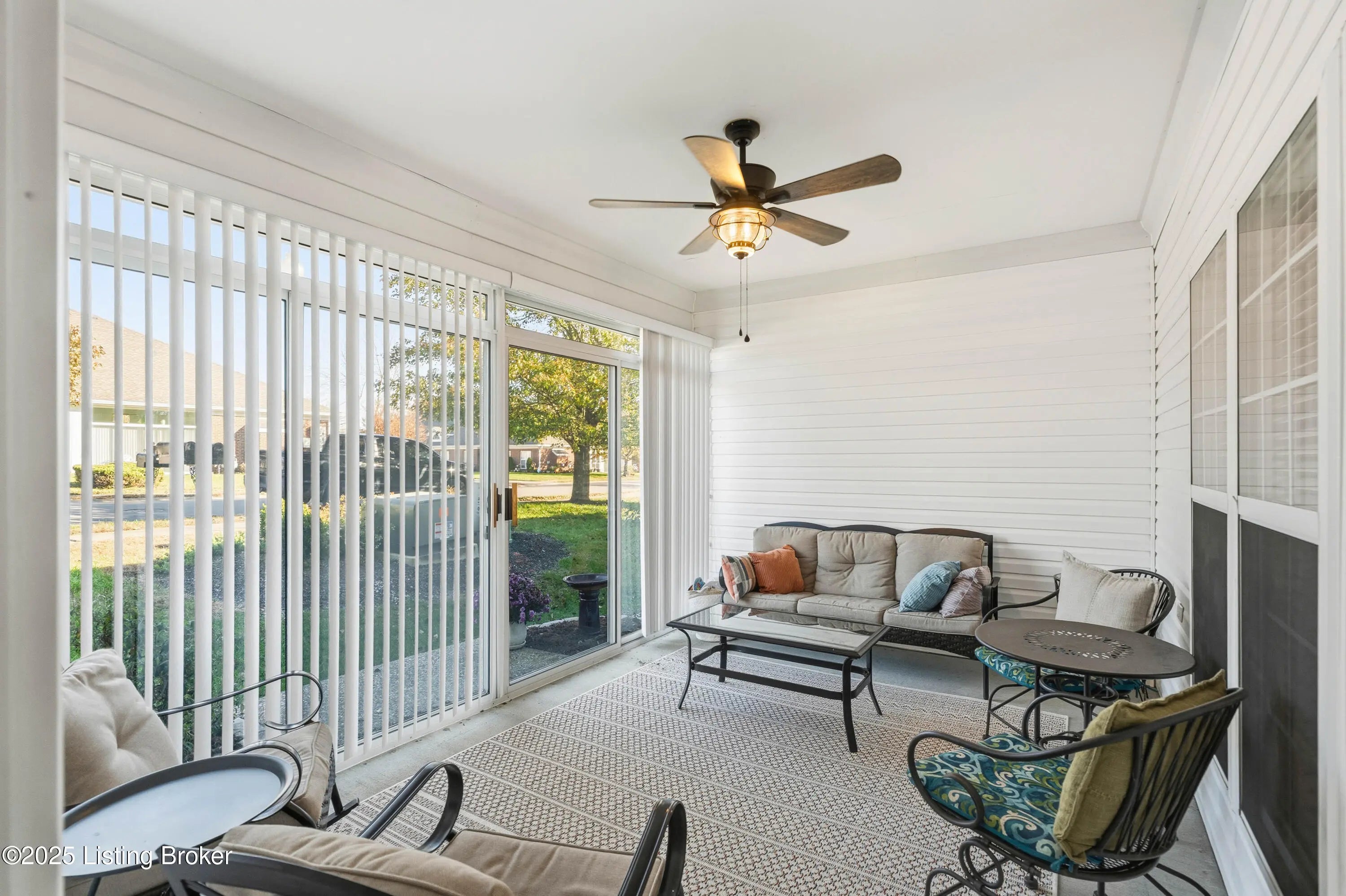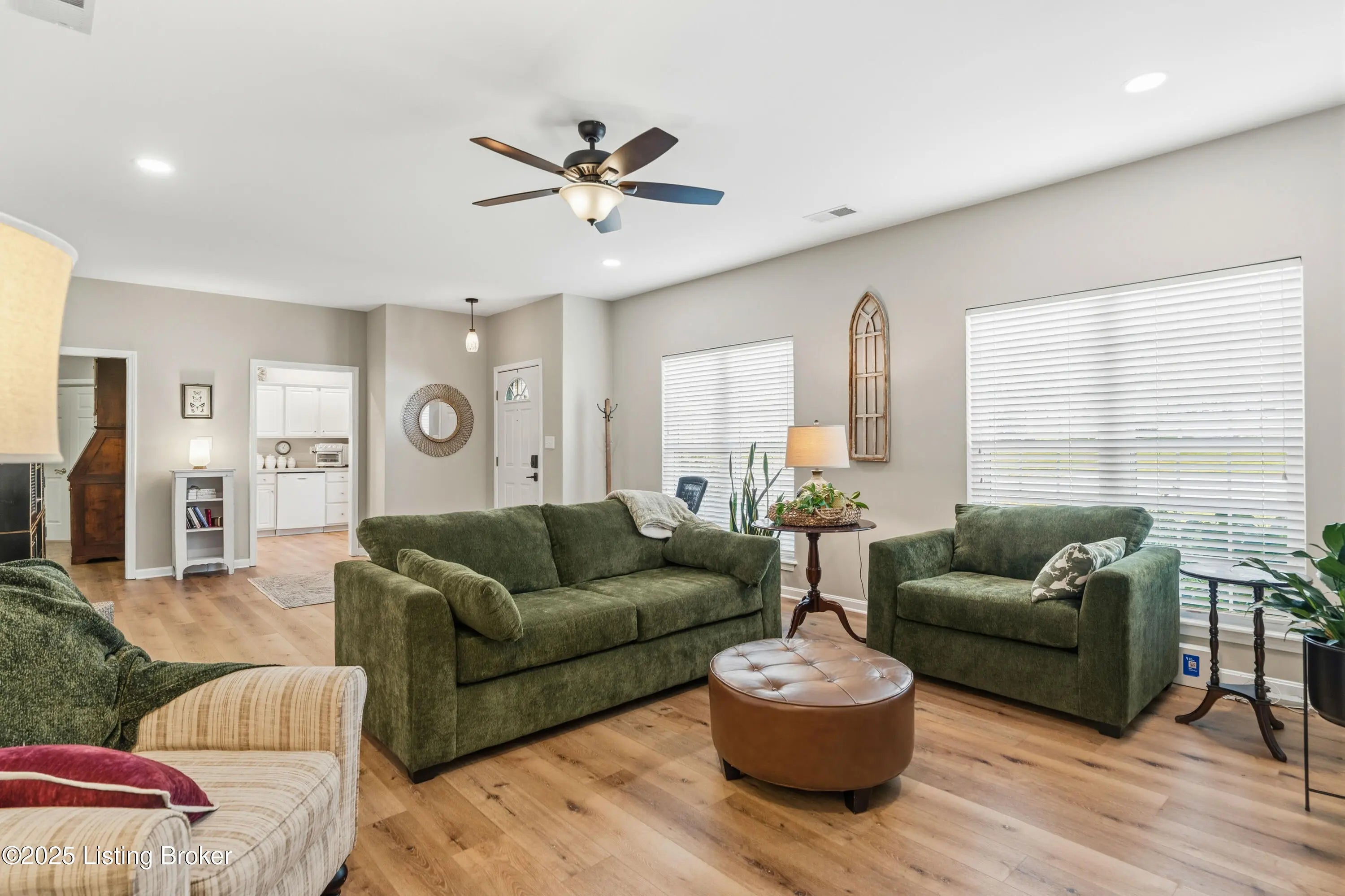 Welcome to your dream patio home. This beautifully updated 2/3 bedroom (includes middle room as possible bedroom or extra tv room), 2 bath home - you'll know you are stepping into comfort and style. Easy maintenance free living is one of the best parts of The Villas at Fairway Crossing plus the convenient location. Easy to get anywhere in 10-30 minutes - Shelbyville, Frankfort and Louisville are all close. The best part of Turnberry Ln is it is perfect for entertaining too - with the cozy gas fireplace and finished sunporch. Several recent and newer updates have been made: new luxury vinyl plank flooring which is not only waterproof but lasts forever not showing wear and tear, 4 new ceiling fans replaced including sunporch. New recessed light and ceiling fan added to living room. Electric updates for that and for bathroom. New lighting and new plumbing for vanities. Both baths have new vanities with soft close drawers and lighting. New toilets, all newly painted. Garage exterior keypad replaced. This garage has durable epoxy flooring, newer roof and windows. Nicely installed blinds. Here it is - perfect flowing one level living that is inviting and functional make this your next new home! All Kitchen appliances and Washer/dryer stay. Low utilities plus only $125/month HOA.