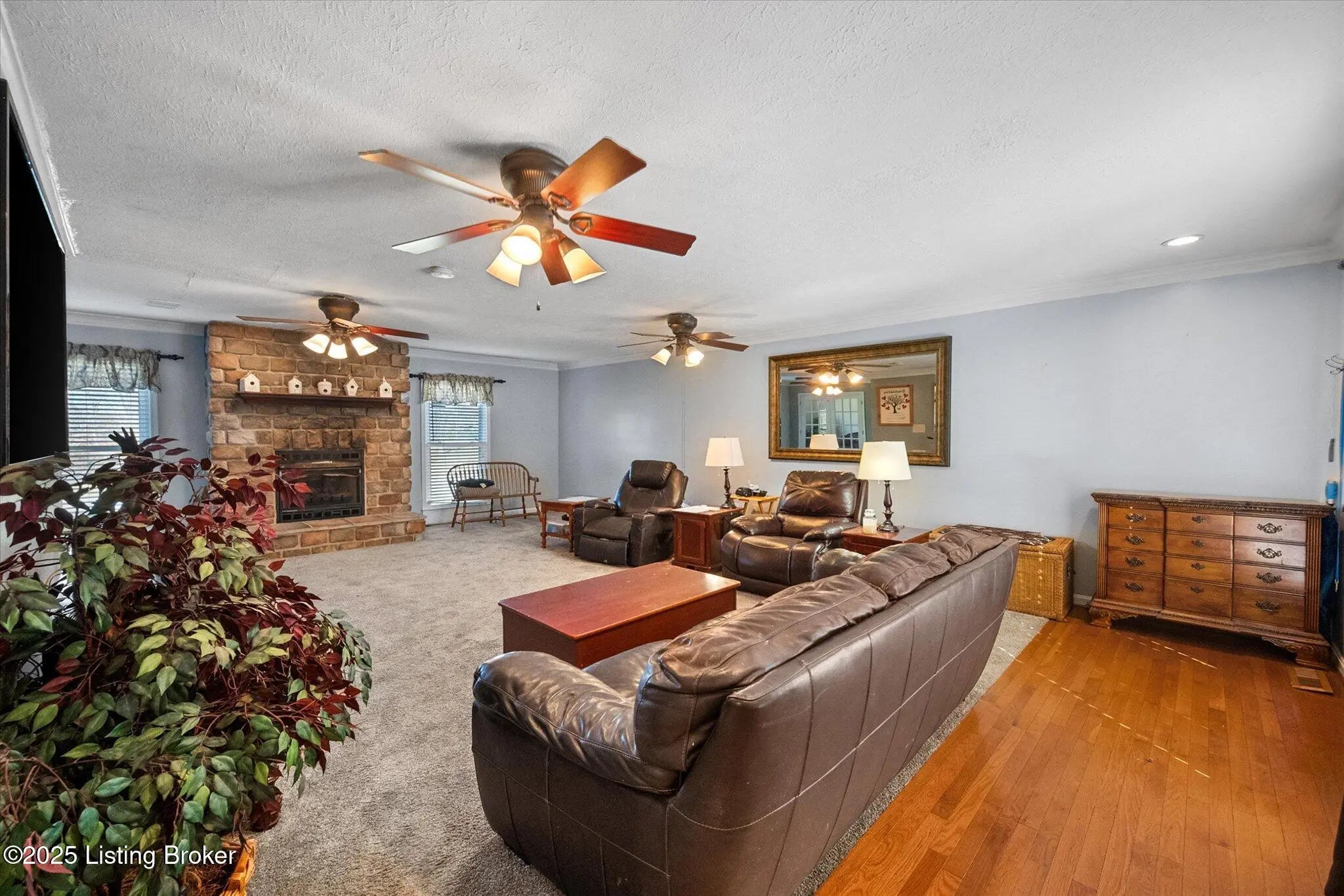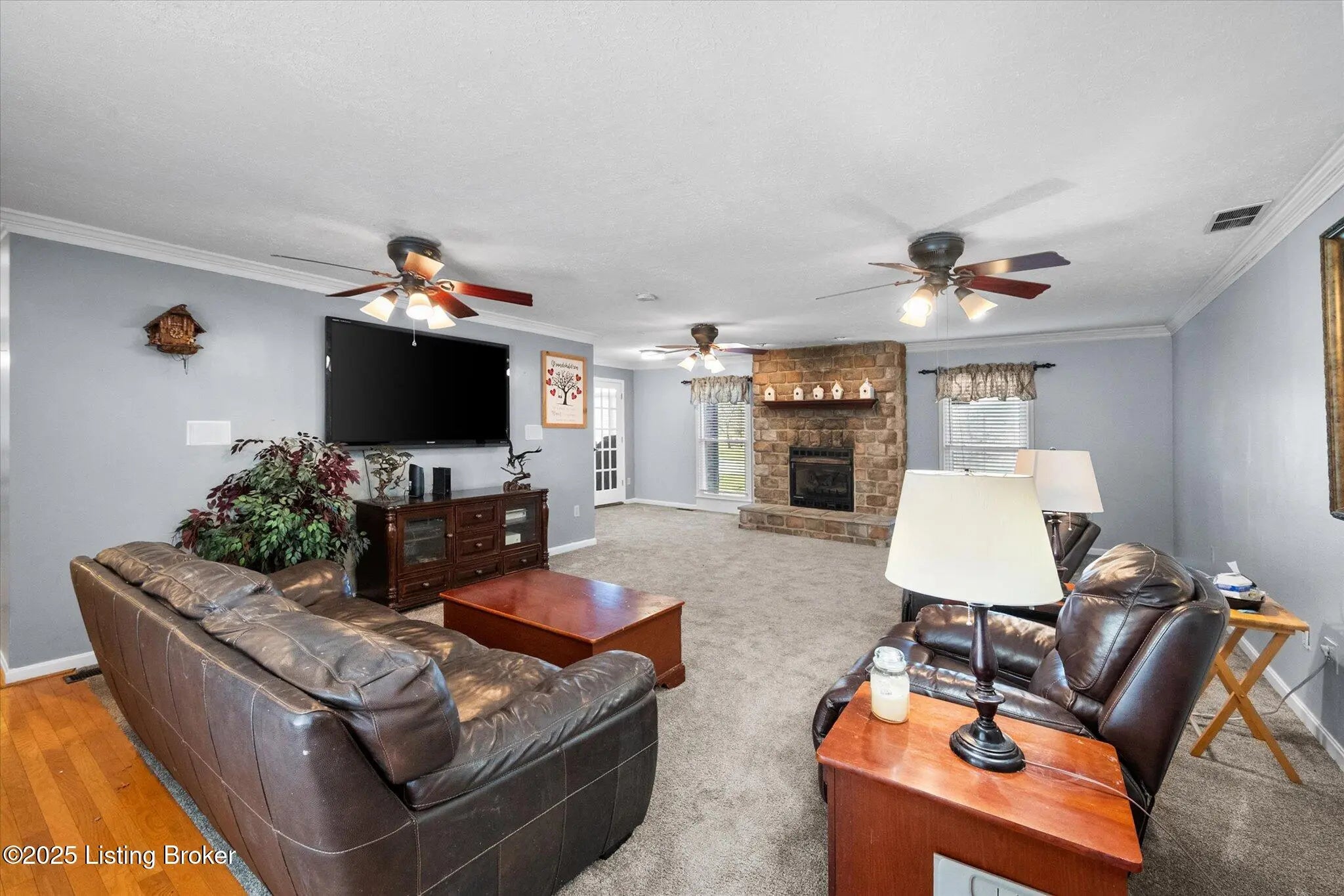 This 2,600+ sq ft ranch just minutes from I-65 delivers exceptional main-level living on nearly a half-acre with a fenced yard and inviting partially covered deck. Inside, enjoy a spacious granite kitchen, large family and living rooms with fireplaces and a sunroom that adds warmth and charm. This home offers great flow for gatherings inside and out, while the heated 3-car garage with water is perfect for hobbies or projects. Situated in a peaceful neighborhood featuring a community pond, this home blends comfort, convenience, and ample space. Schedule your showing now!