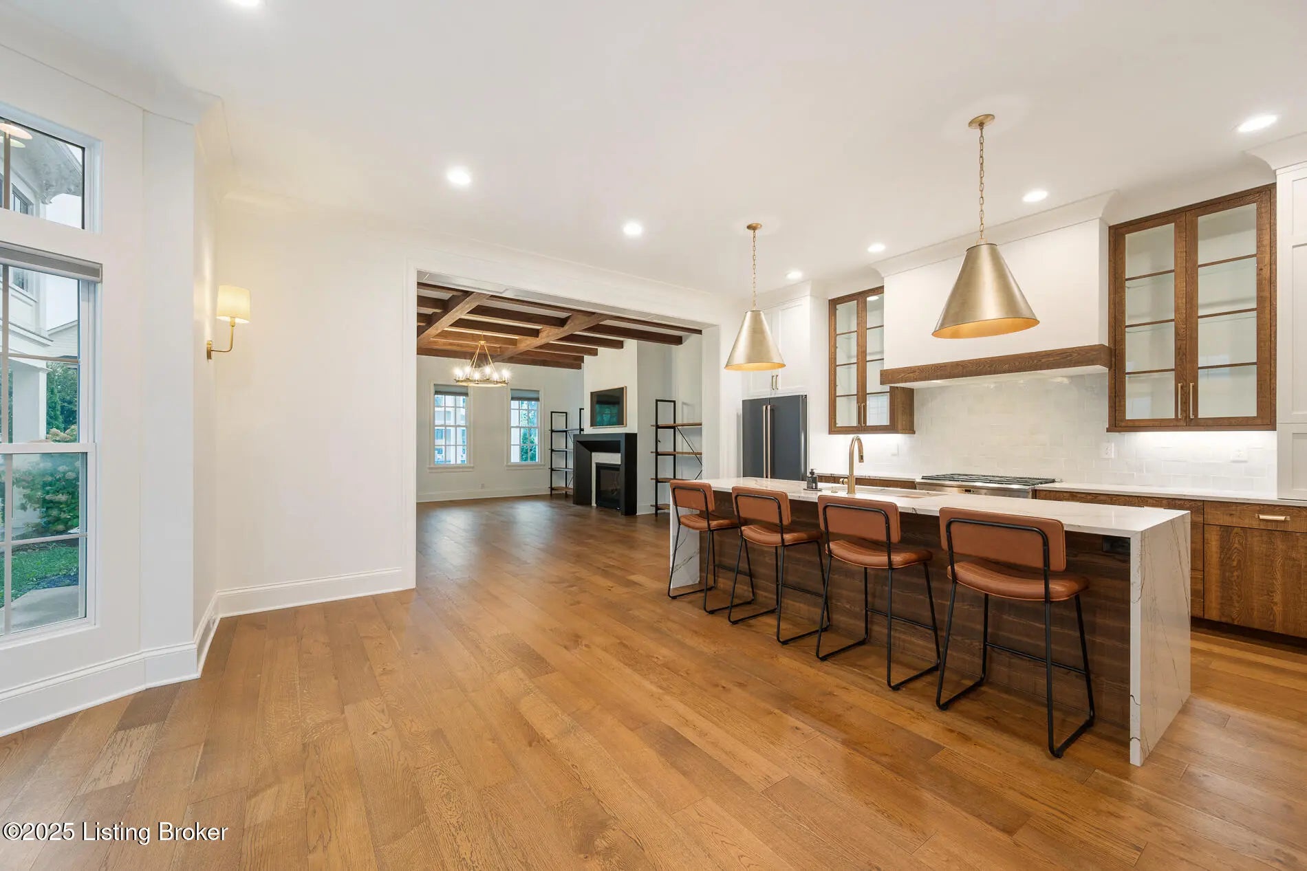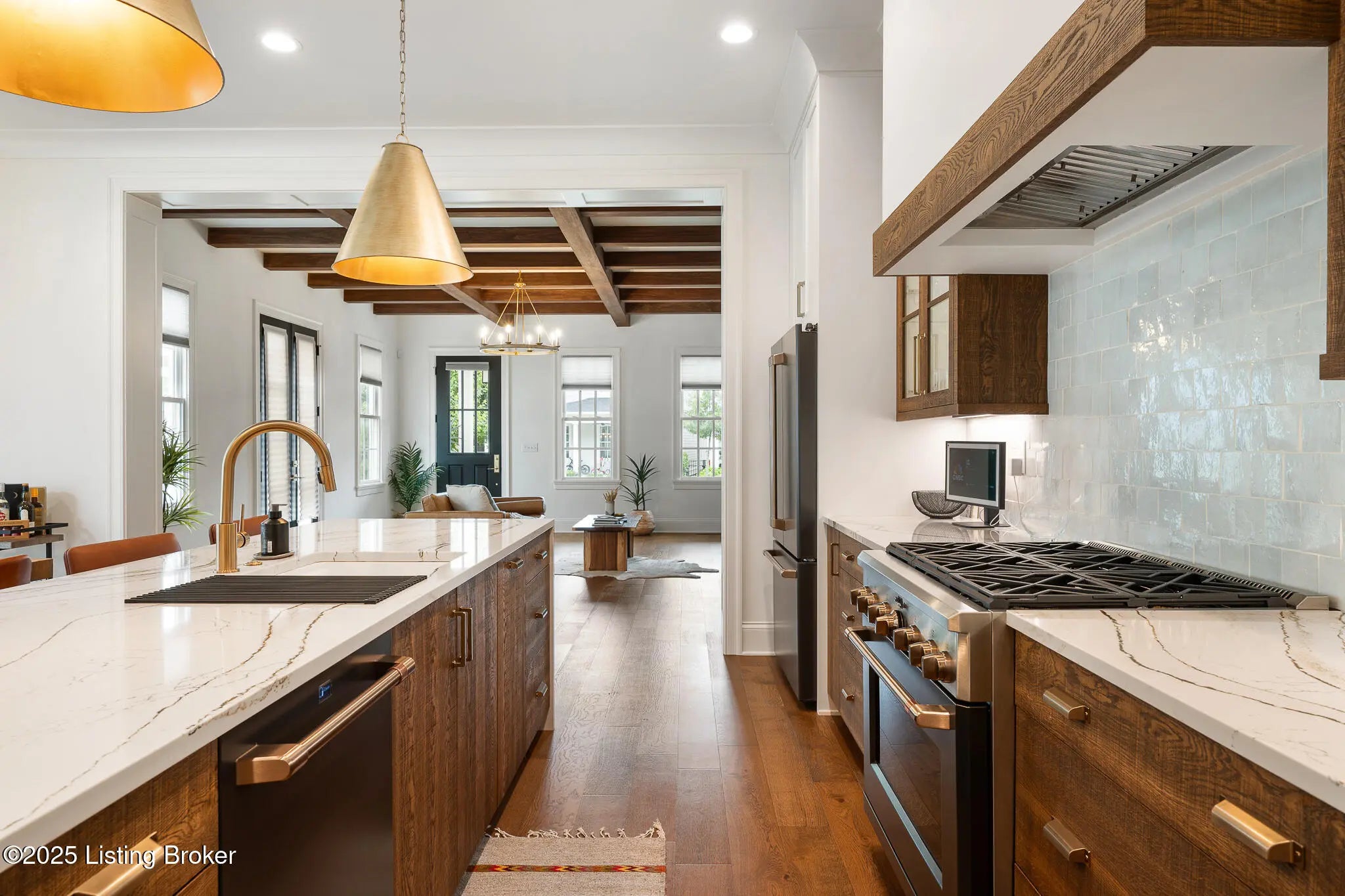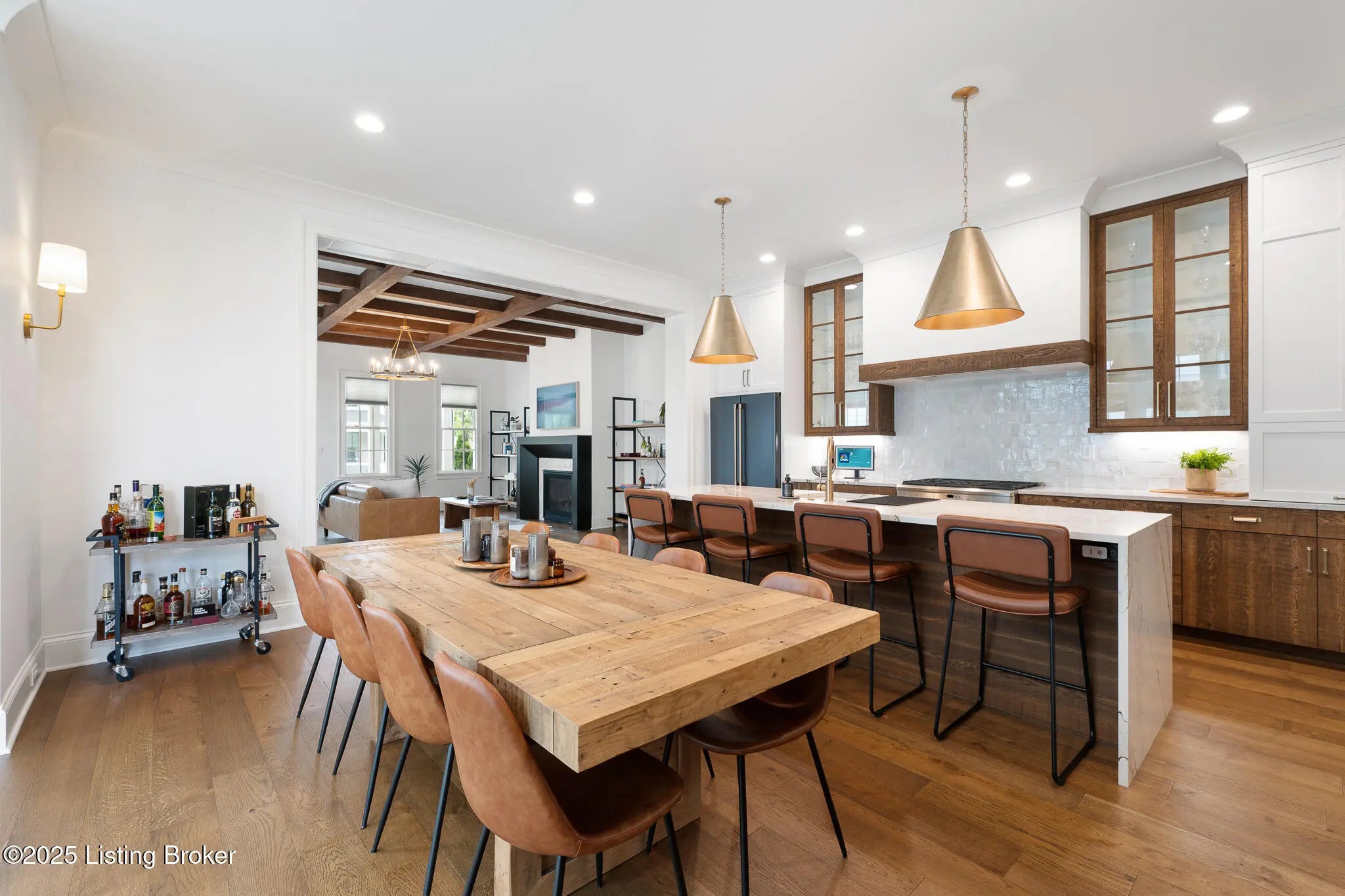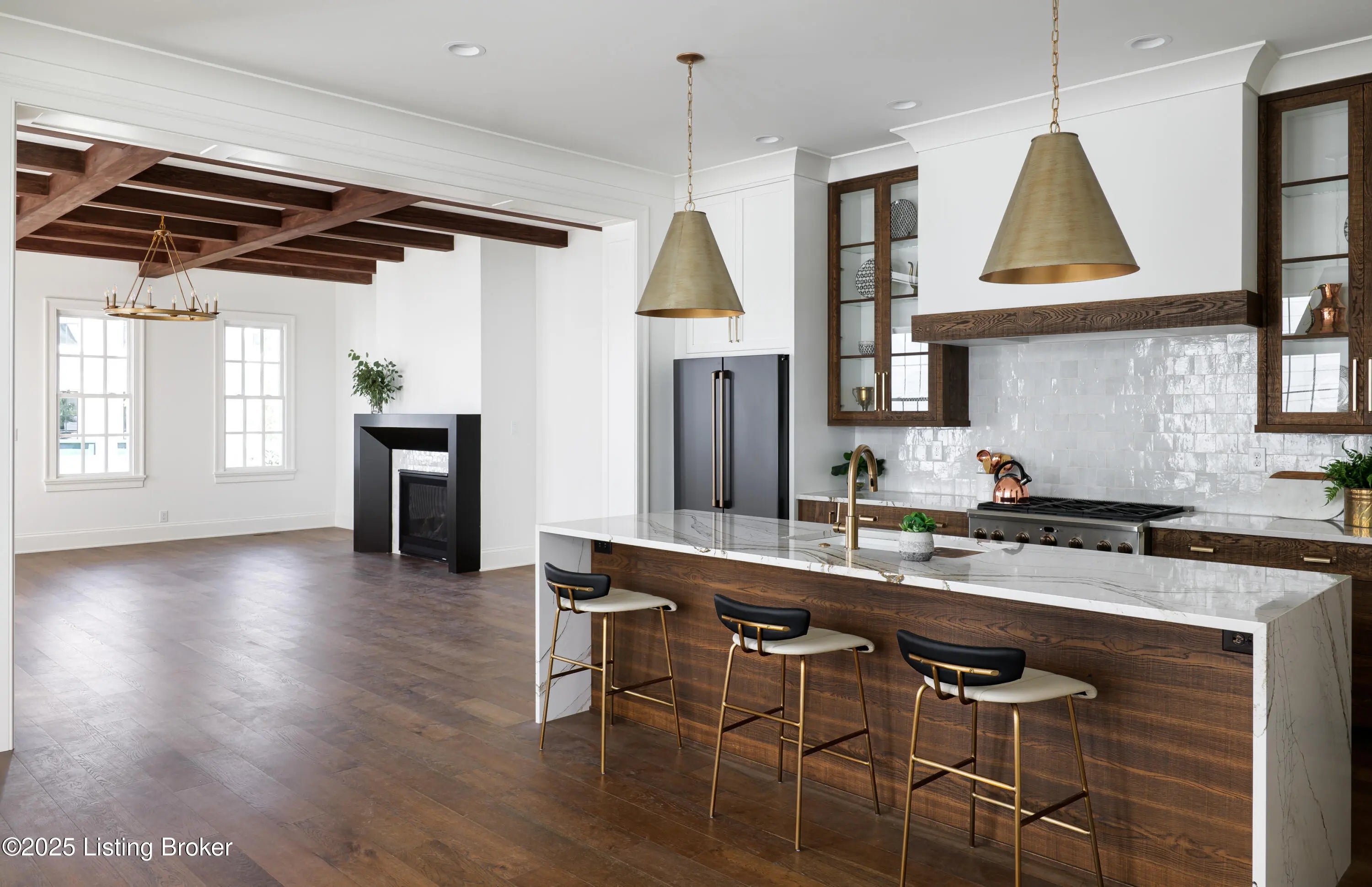 6225 Mistflower Circle is a beautifully crafted Artisan Signature Home, designed with a welcoming covered front porch and an open floor plan that blends comfort and sophistication. The family room, accented with warm wood beams and a cozy fireplace, flows seamlessly into the gourmet style kitchen, dining area, and out to the private side courtyard—perfect for entertaining. The chef's kitchen showcases high-end luxury appliances, granite counters, custom wood cabinetry, a huge walk-in pantry, and a spacious center kitchen island with seating for four. Muted gold hardware adds a touch of elegance throughout. Other first floor amenities are a convenient office, powder room, and renovated two-car garage with epoxy flooring and custom built-in storage shelves and closets. Upstairs, the primary suite offers a spa-like retreat with dual sinks, soaking tub, walk-in shower, and a large custom closet. Two additional bedrooms, a full bath, and a laundry room with top-of-the-line Samsung washer and dryer complete the second floor. The finished basement offers a versatile second family room that seamlessly connects to a wall-length wet bar with a mini refrigerator and ample storagecreating the perfect space for entertaining. This level also includes a fourth bedroom, two large storage areas, and a third full bathroom. Throughout, you'll find the exceptional finishes and craftsmanship, paired with modern comfort, including a geothermal HVAC system for efficiency and sustainability. Finally, this home is nestled in Norton Commons, one of Louisville's premier, most sought-after communities, where you'll enjoy a relaxed lifestyle featuring swimming pools, dining, shopping, amphitheater, dog parks, playgrounds, and more.