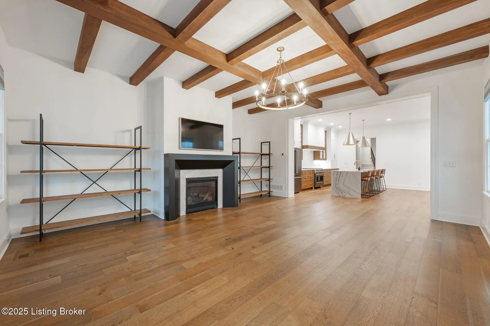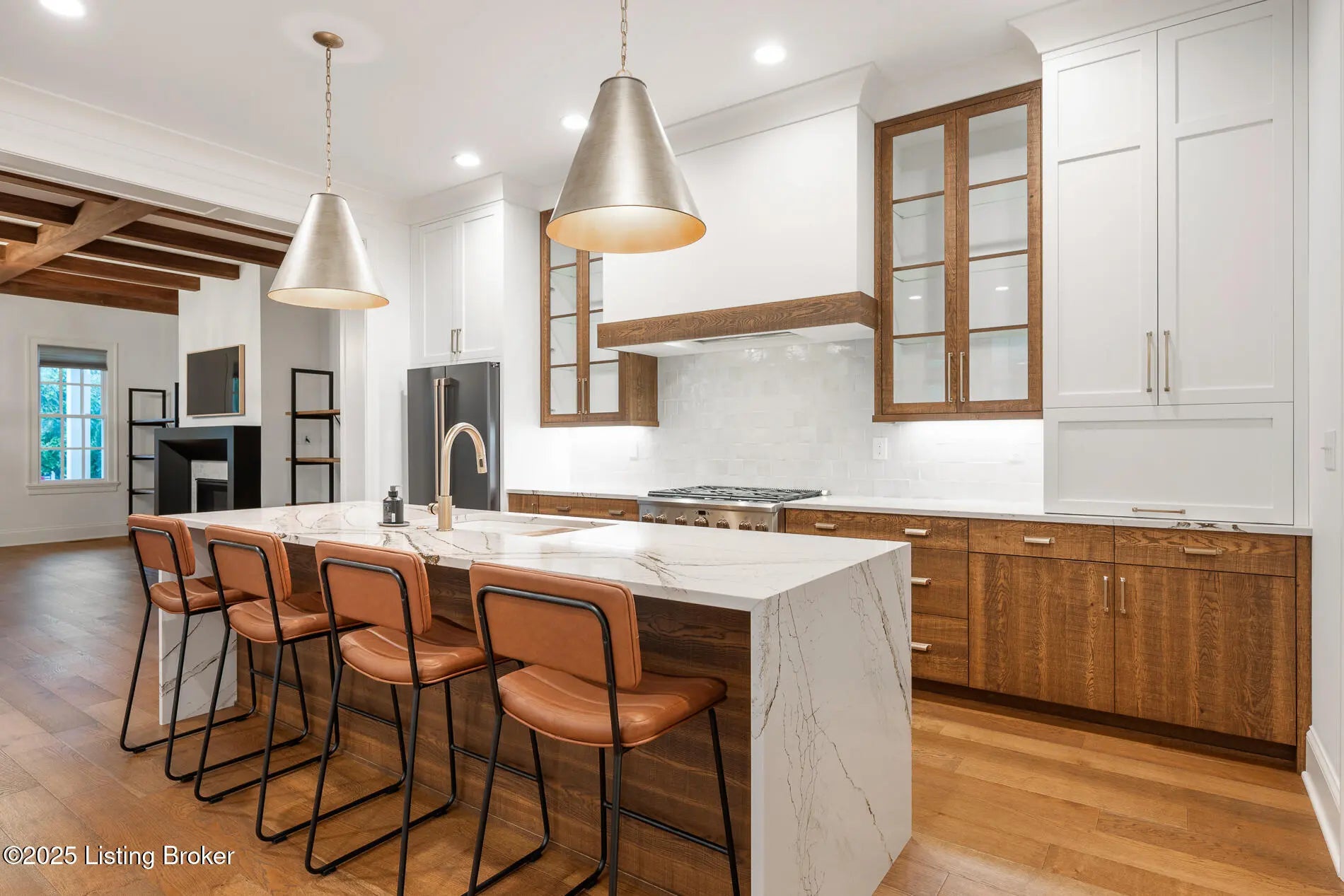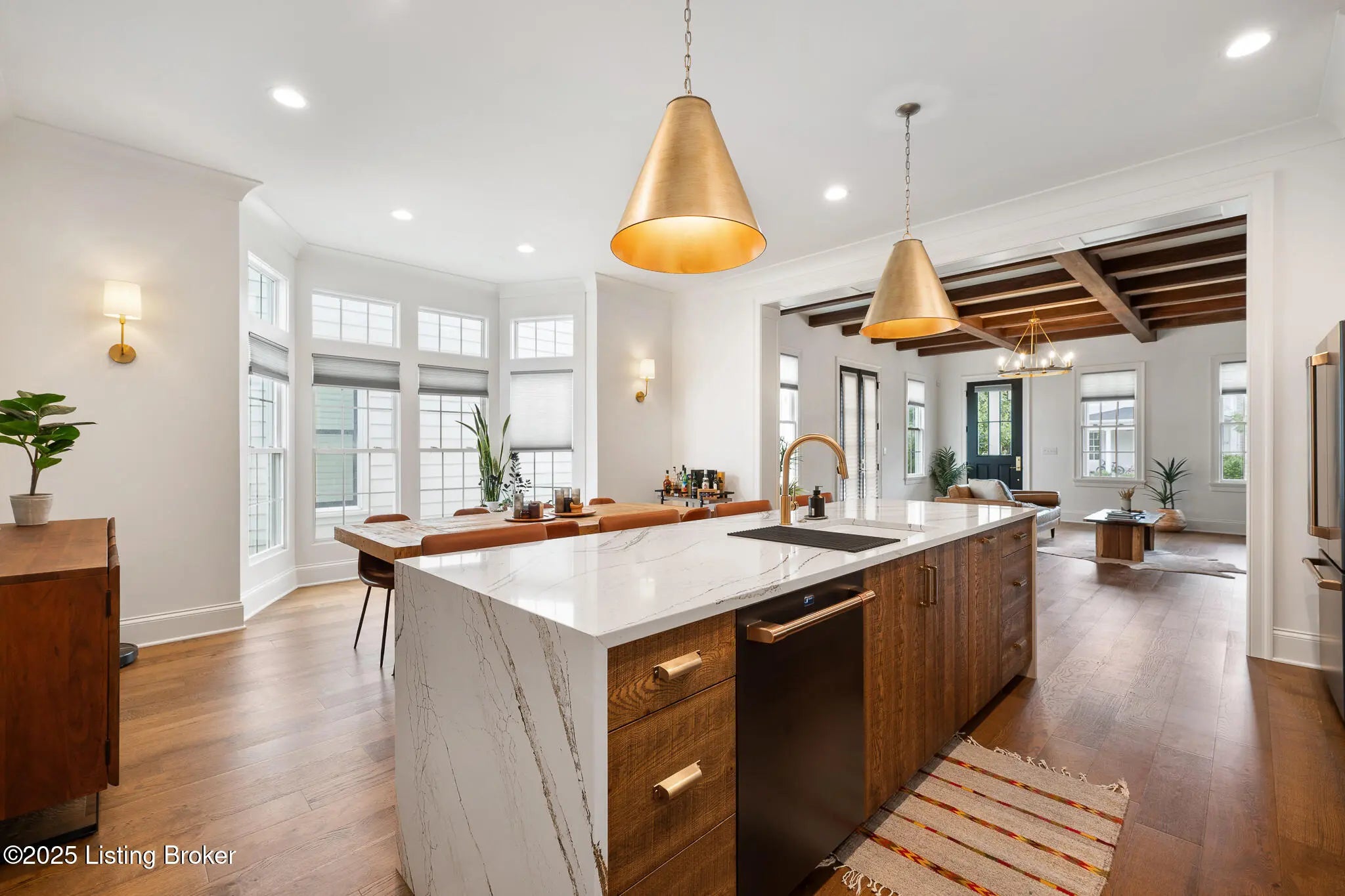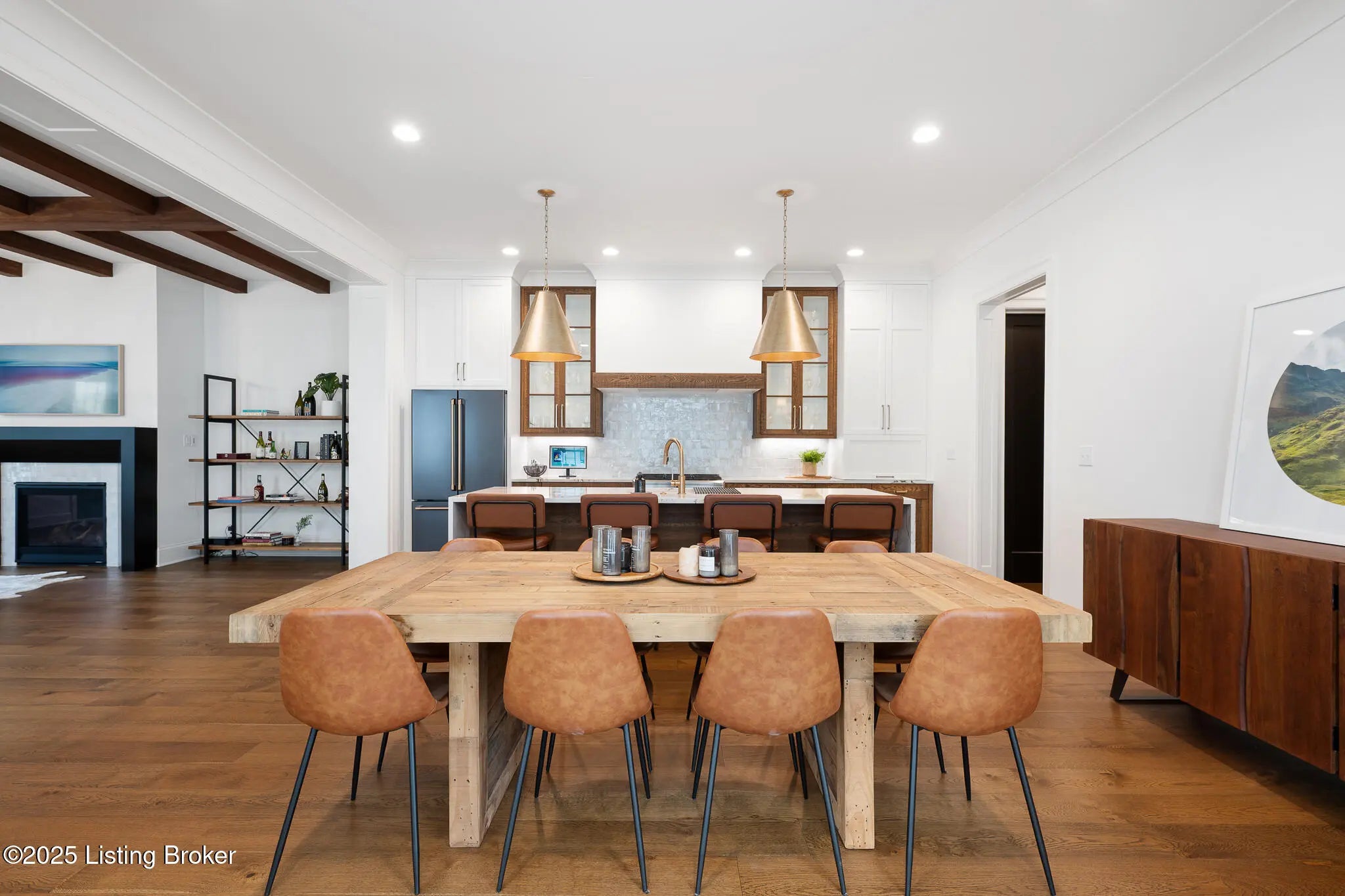 6225 Mistflower Circle is a beautifully crafted Artisan Signature Home, designed with a welcoming covered front porch and an open floor plan that blends comfort and sophistication. The family room, accented with warm wood beams and a cozy fireplace, flows seamlessly into the gourmet style kitchen, dining area, and out to the private side courtyard—perfect for entertaining. The chef's kitchen showcases high-end luxury appliances, granite counters, custom wood cabinetry, a huge walk-in pantry, and a spacious center kitchen island with seating for four. Muted gold hardware adds a touch of elegance throughout. Other first floor amenities are a convenient office, powder room, and renovated two-car garage with epoxy flooring and custom built-in storage shelves and closets. Upstairs, the primary suite offers a spa-like retreat with dual sinks, soaking tub, walk-in shower, and a large custom closet. Two additional bedrooms, a full bath, and a laundry room with top-of-the-line Samsung washer and dryer complete the second floor. The finished basement offers a versatile second family room that seamlessly connects to a wall-length wet bar with a mini refrigerator and ample storagecreating the perfect space for entertaining. This level also includes a fourth bedroom, two large storage areas, and a third full bathroom. Throughout, you'll find the exceptional finishes and craftsmanship, paired with modern comfort, including a geothermal HVAC system for efficiency and sustainability. Finally, this home is nestled in Norton Commons, one of Louisville's premier, most sought-after communities, where you'll enjoy a relaxed lifestyle featuring swimming pools, dining, shopping, amphitheater, dog parks, playgrounds, and more.