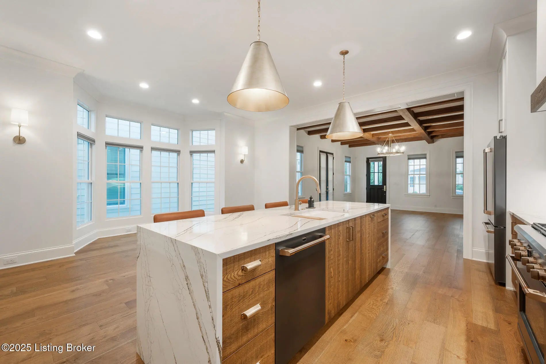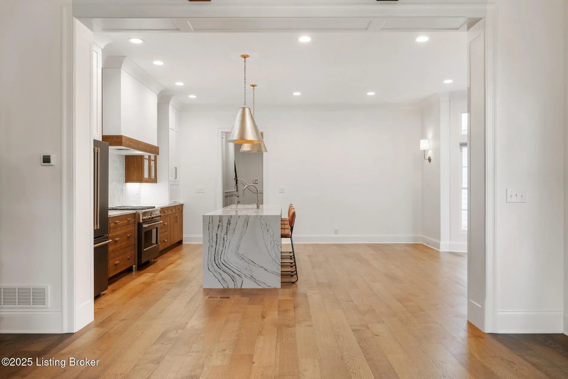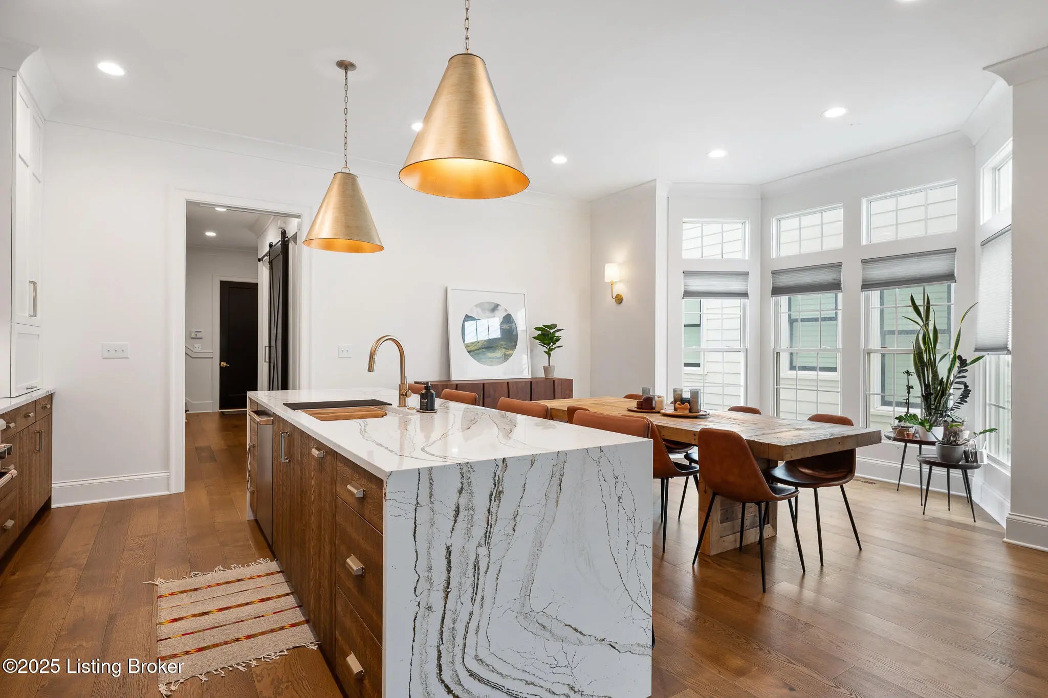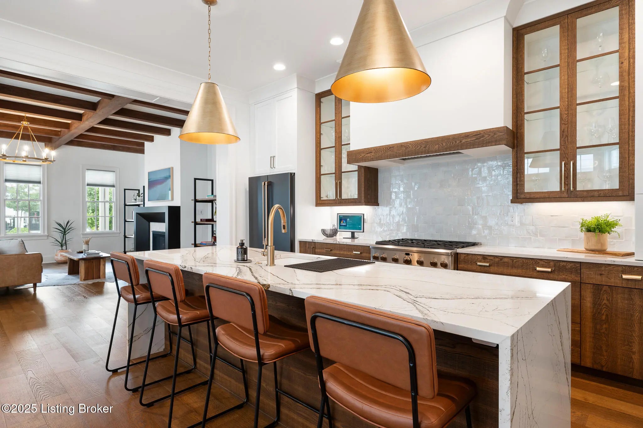 6225 Mistflower Circle is a beautifully crafted Artisan Signature Home, designed with a welcoming covered front porch and an open floor plan that blends comfort and sophistication. The family room, accented with warm wood beams and a cozy fireplace, flows seamlessly into the gourmet style kitchen, dining area, and out to the private side courtyard—perfect for entertaining. The chef's kitchen showcases high-end luxury appliances, granite counters, custom wood cabinetry, a huge walk-in pantry, and a spacious center kitchen island with seating for four. Muted gold hardware adds a touch of elegance throughout. Other first floor amenities are a convenient office, powder room, and renovated two-car garage with epoxy flooring and custom built-in storage shelves and closets. Upstairs, the primary suite offers a spa-like retreat with dual sinks, soaking tub, walk-in shower, and a large custom closet. Two additional bedrooms, a full bath, and a laundry room with top-of-the-line Samsung washer and dryer complete the second floor. The finished basement offers a versatile second family room that seamlessly connects to a wall-length wet bar with a mini refrigerator and ample storagecreating the perfect space for entertaining. This level also includes a fourth bedroom, two large storage areas, and a third full bathroom. Throughout, you'll find the exceptional finishes and craftsmanship, paired with modern comfort, including a geothermal HVAC system for efficiency and sustainability. Finally, this home is nestled in Norton Commons, one of Louisville's premier, most sought-after communities, where you'll enjoy a relaxed lifestyle featuring swimming pools, dining, shopping, amphitheater, dog parks, playgrounds, and more.
