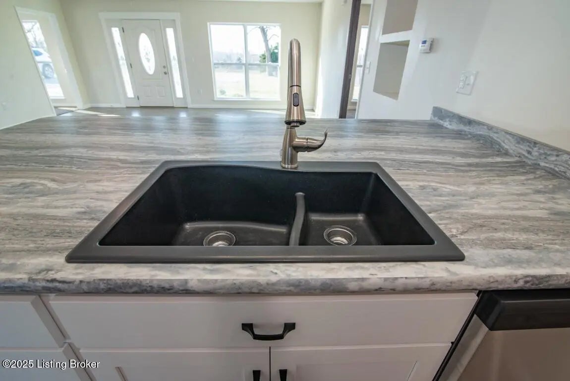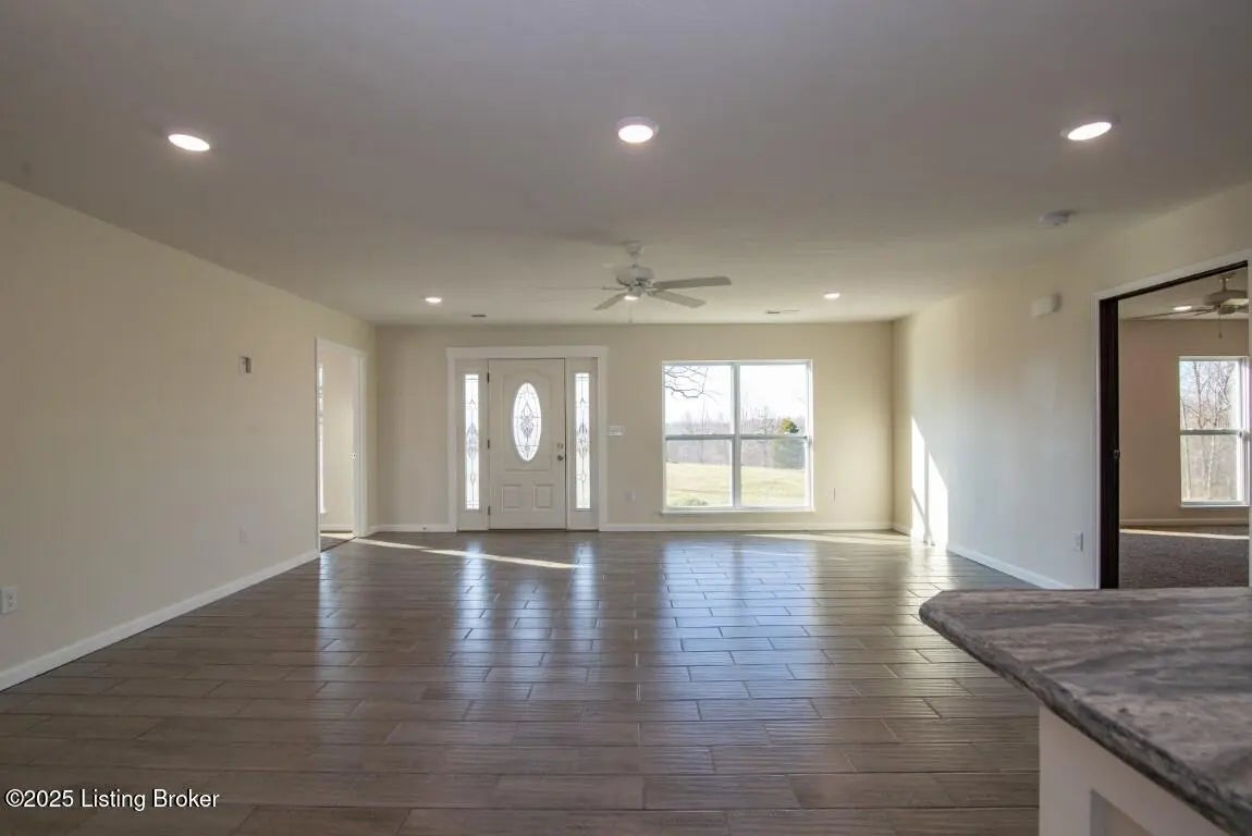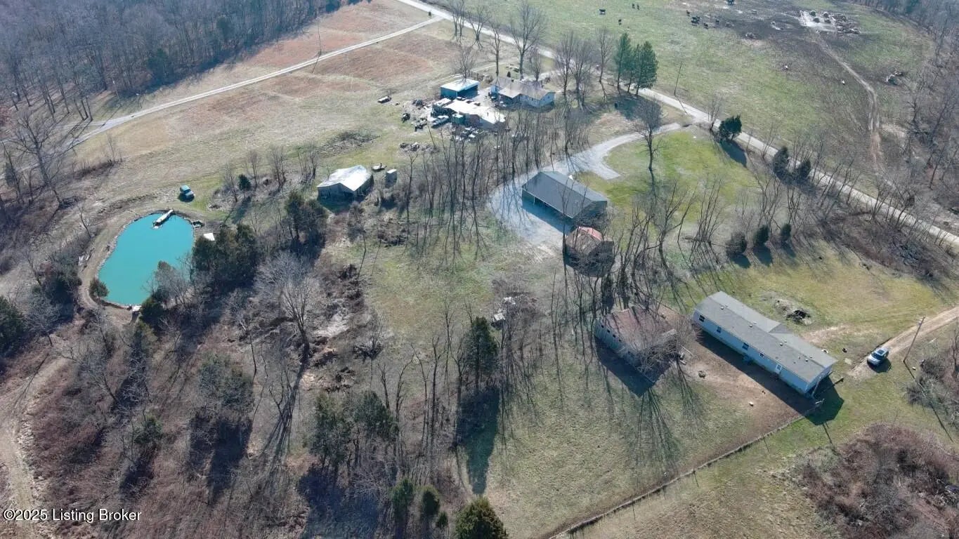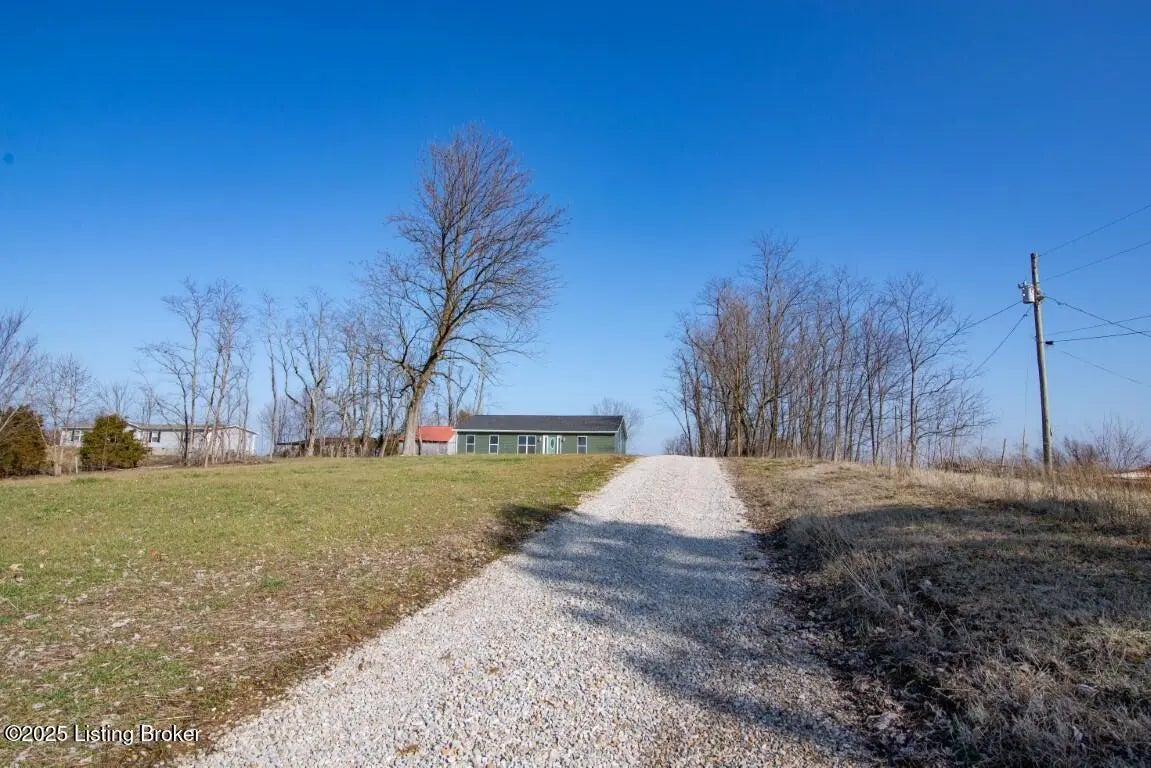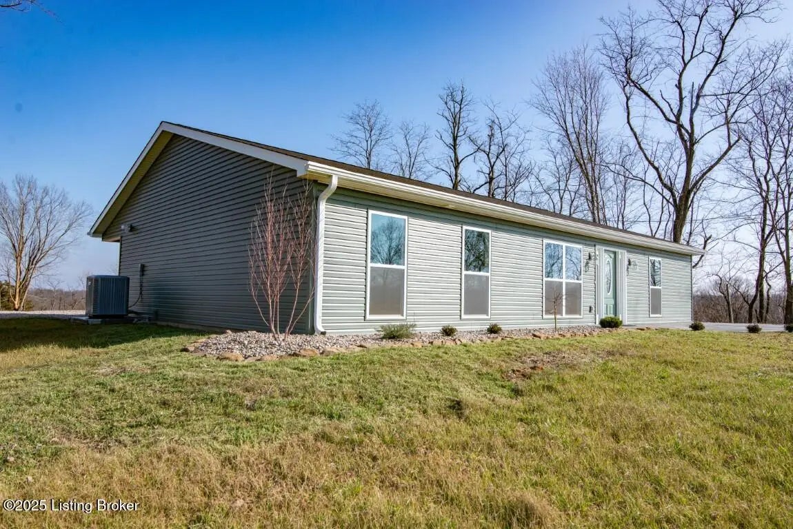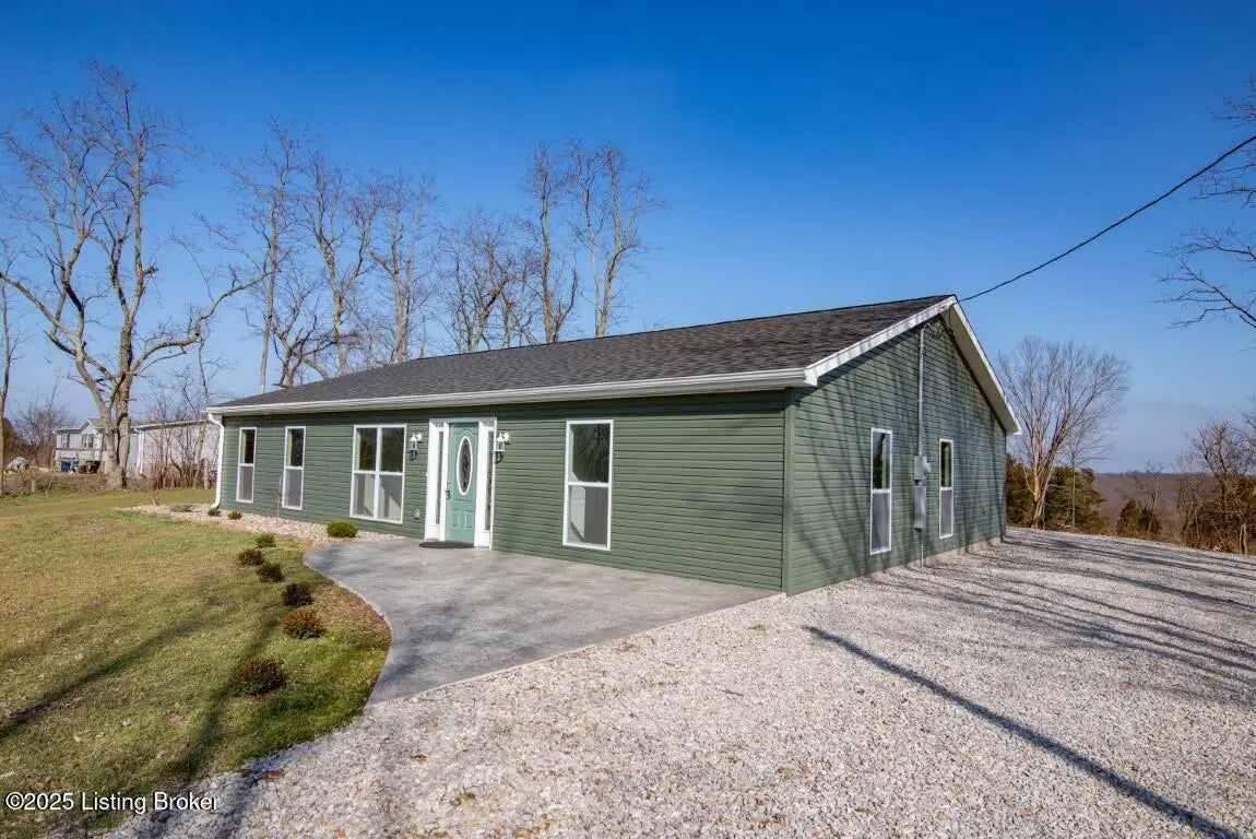 Welcome Home to 1,748 sq. ft. of beautifully designed, detail-oriented living space, this HOME is sure to IMPRESS!** Step into the huge and inviting open-concept living, dining, and kitchen areas are warm, spacious, and perfect for gatherings. Enjoy the built-in nook, oversized gourmet kitchen island, stainless steel appliances (about 2 year old), custom soft-close cabinets/drawers, and stunning granite-look countertops. Beautiful tile flooring runs through most of the home, with plush carpet in the bedrooms for comfort. Split bedroom design with each carpeted, with ceiling fans, TV-mount-ready outlets and walk in closets. The guest bath is generously sized with abundant cabinetry, counter space, tile flooring, and a convenient access door to water lines. The master suite is truly a showstopper-featuring a custom stone accent wall with built-in sconces, lush carpet, ceiling fan, and a lighted walk-in closet with sturdy custom shelving. The spa-like master bath offers a double vanity, great lighting, and a walk-in tiled shower with built-in nooks, in-shower bench, and **one rainfall shower head plus two regular shower heads**. Accessibility features include no steps, slab foundation, 36-inch-wide doors, alternating light switches, level lot/drive, tall custom windows, and all ceiling vents for flexible furniture placement. Additional highlights include recessed lighting throughout, dimmer switches, accent lighting in the primary, motion security lights, and attic storage. Outside, enjoy the front and huge rear patios. Approximately ¾ fencing (treated cedar wood & woven wire), a barn with workshop potential, and mature trees. Water is supplied via a shared well(agreement recorded) with neighbors and owners alternate paying \$25/month for six months each year for the pump. **Peace of mind includedthis home is still under American Home Warranty until April 2028.**Located on 2+ acres in a rural setting within Meade County, this property blends modern comfort, thoughtful design, and country charmready to welcome you home!
