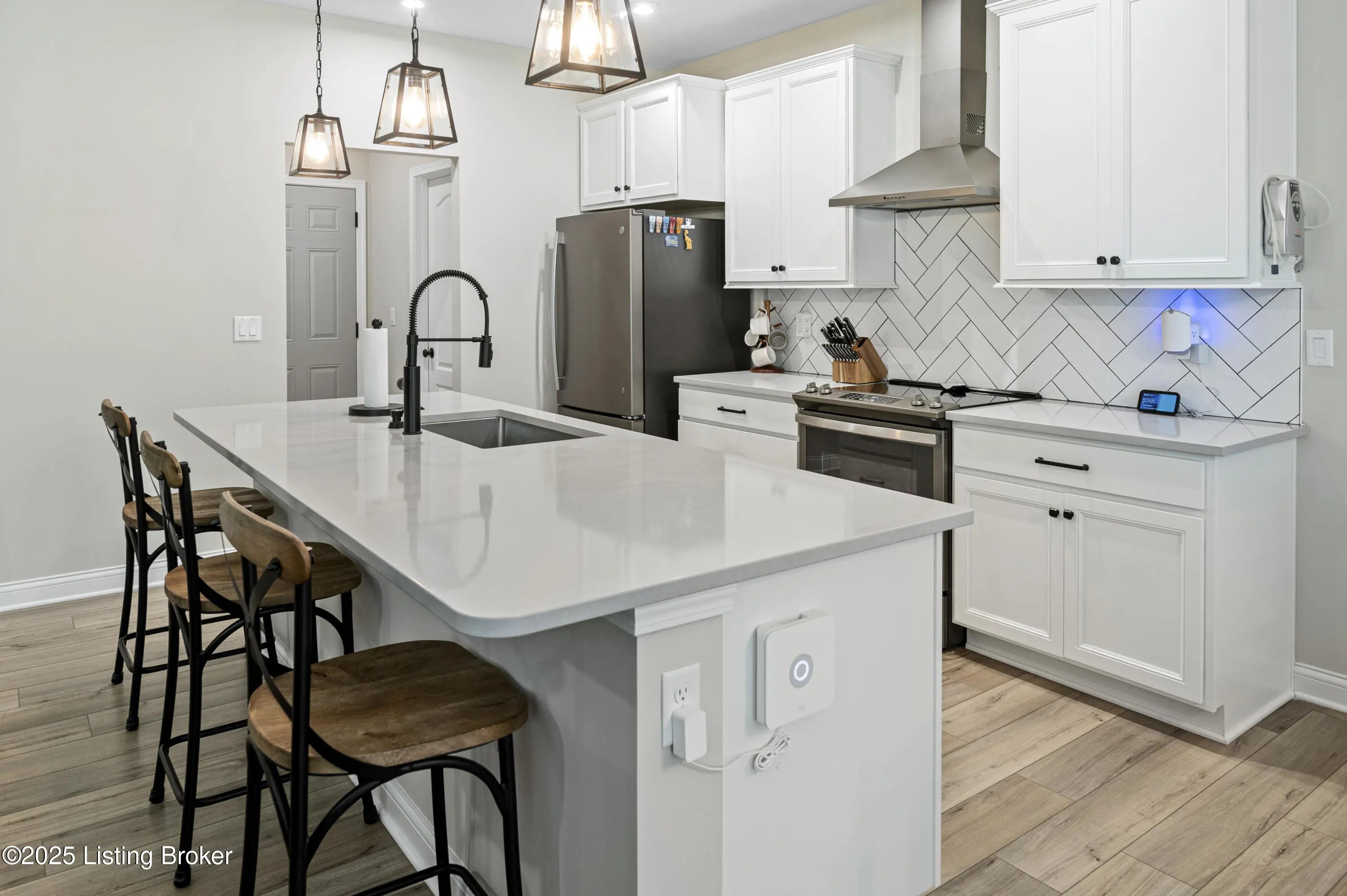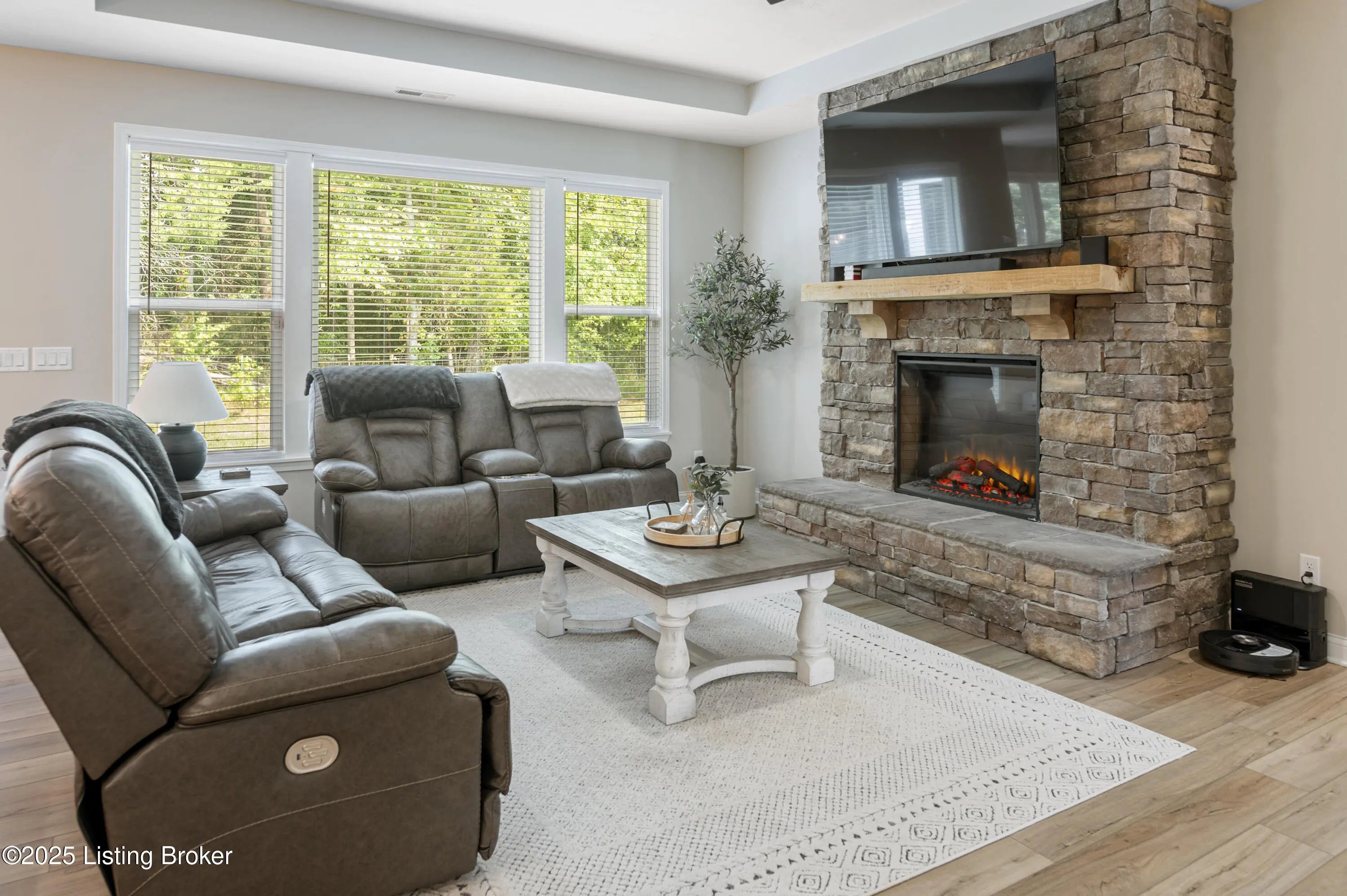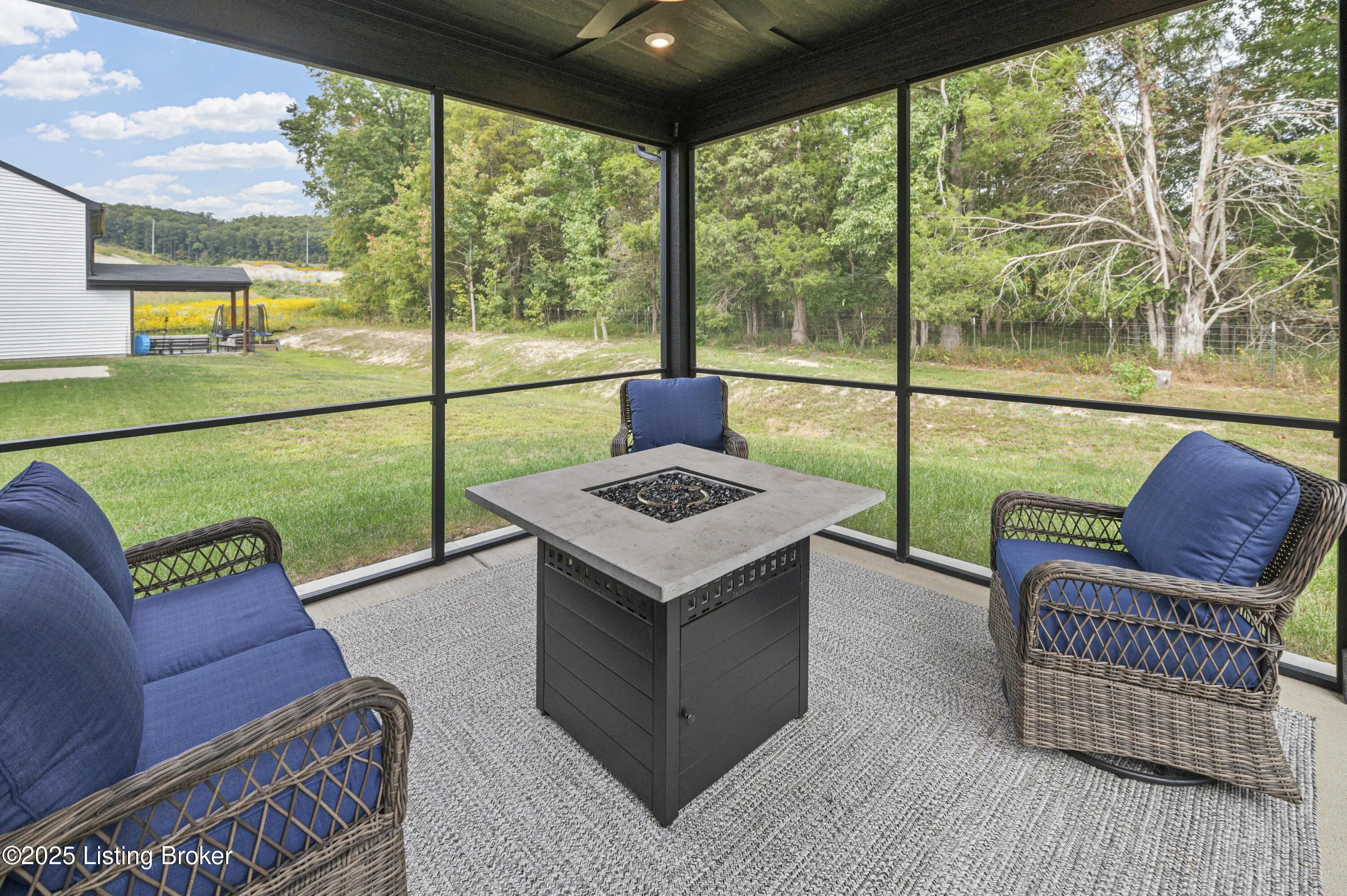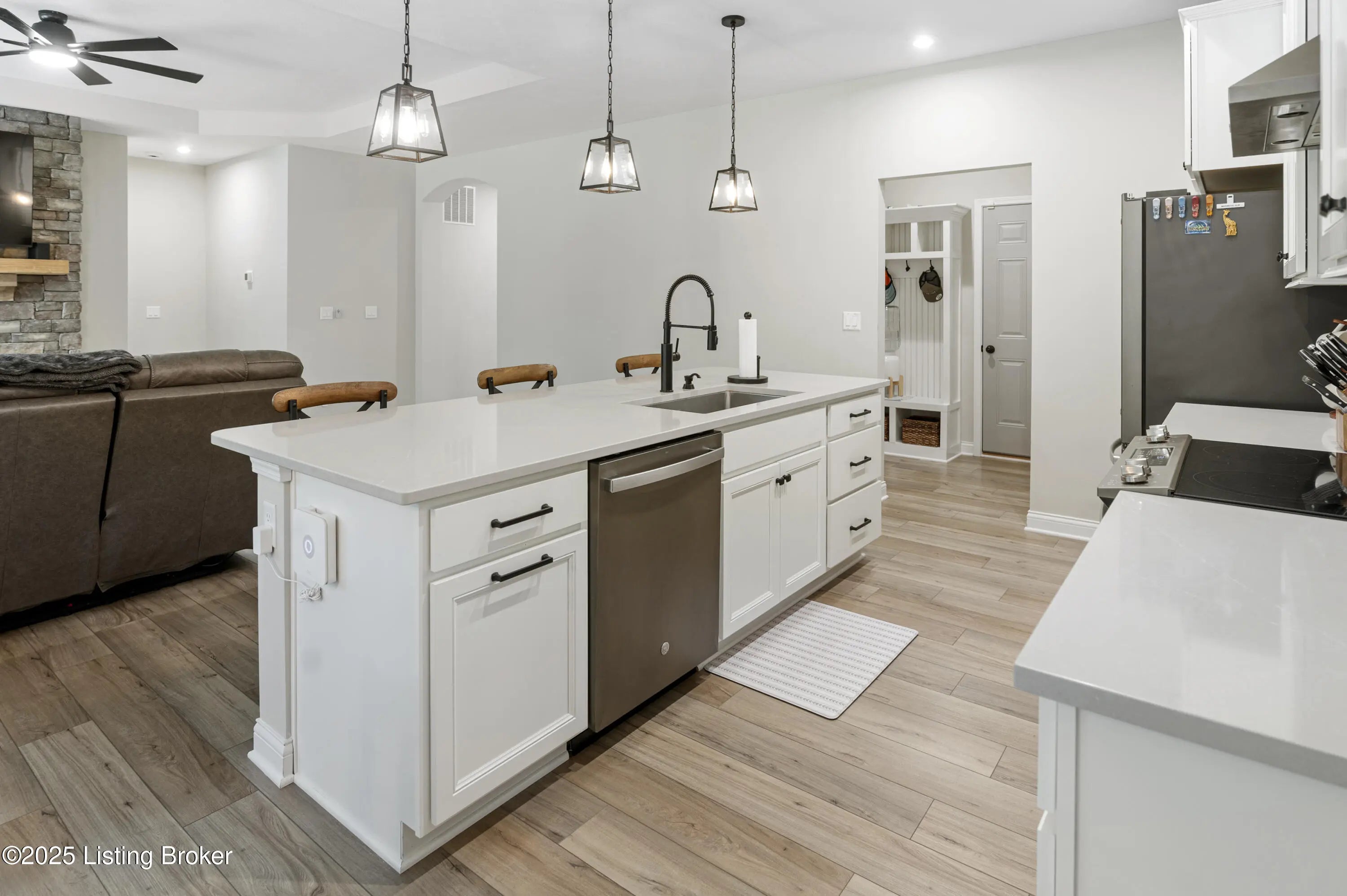 Built just two years ago, this beautiful 3-bedroom, 2-bath home is packed with top-notch builder upgrades.The open-concept features a spacious great room with stone fireplace that flows seamlessly into the kitchen and morning room. Chef's dream kitchen with quartz countertops, center island, and pantry, while the breakfast nook/morning room offers natural light and opens to a screened-in patio—perfect for relaxing or entertaining. The primary suite is a retreat, boasting a spa-like bath with dual vanities, large tiled shower with four shower heads, and walk-in closet with upgraded shelving system. Additional details include custom-built cubbies by garage entry, convenient laundry room, Hardie board siding, 80-gallon hot water tank, and plumbing for water filtration and softener systems