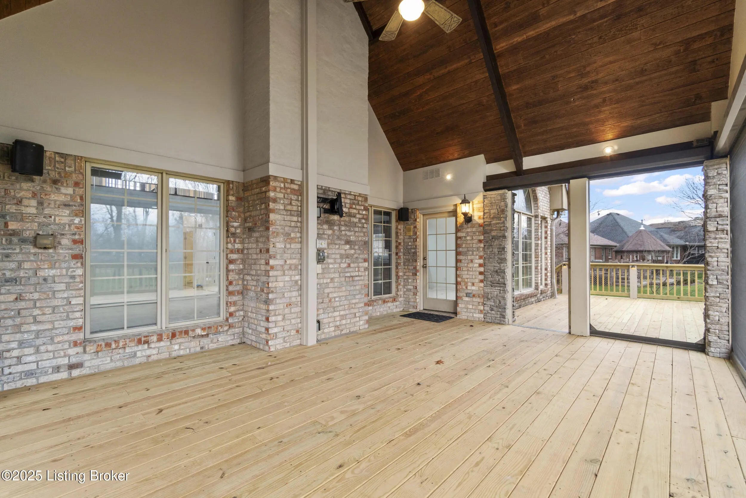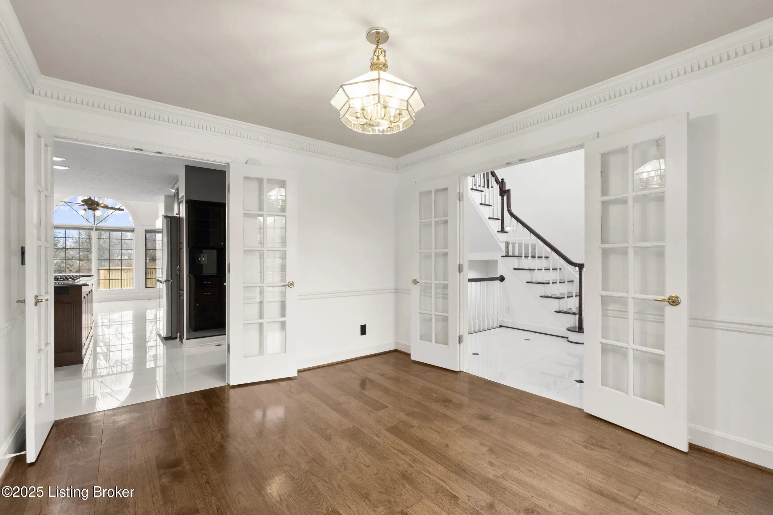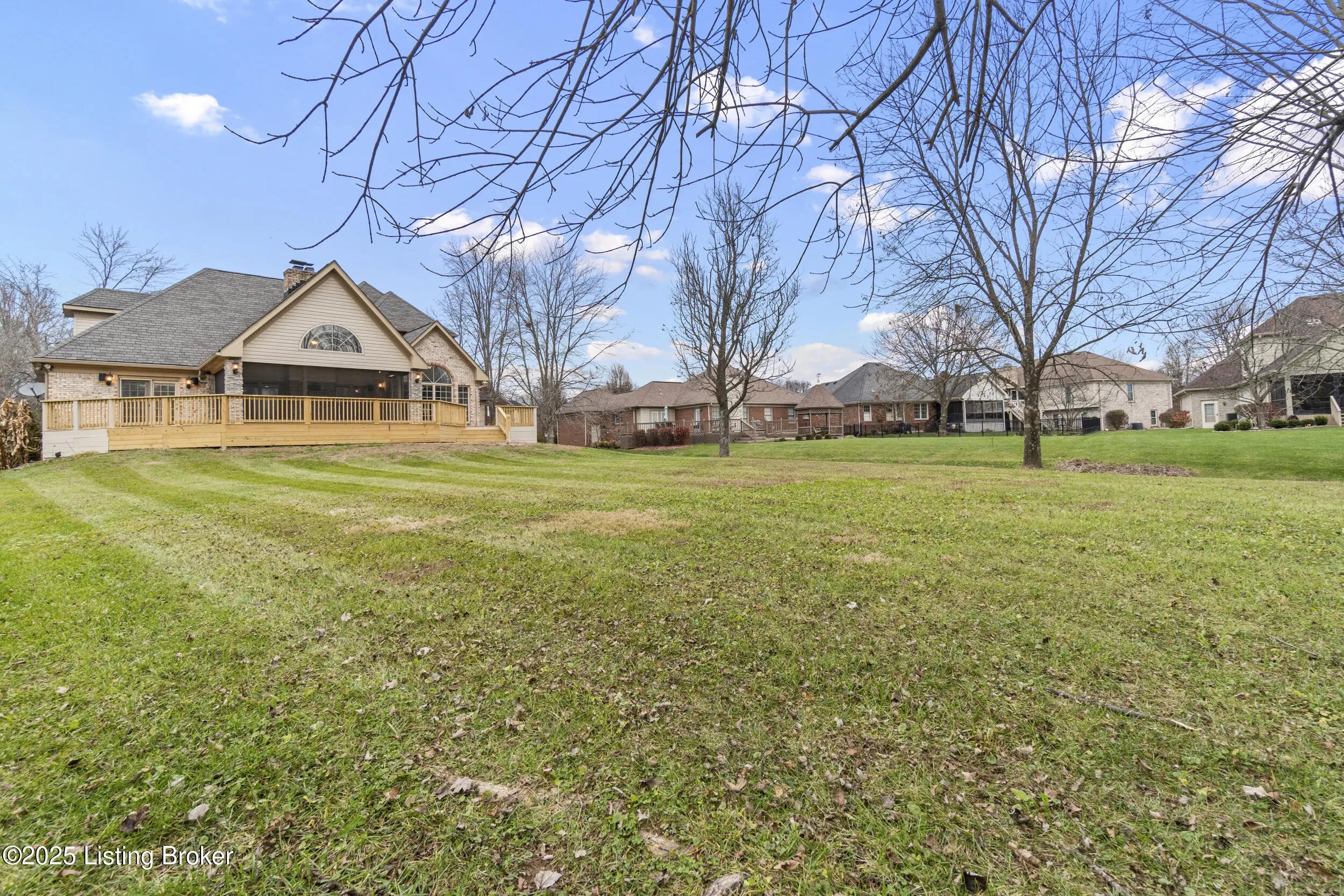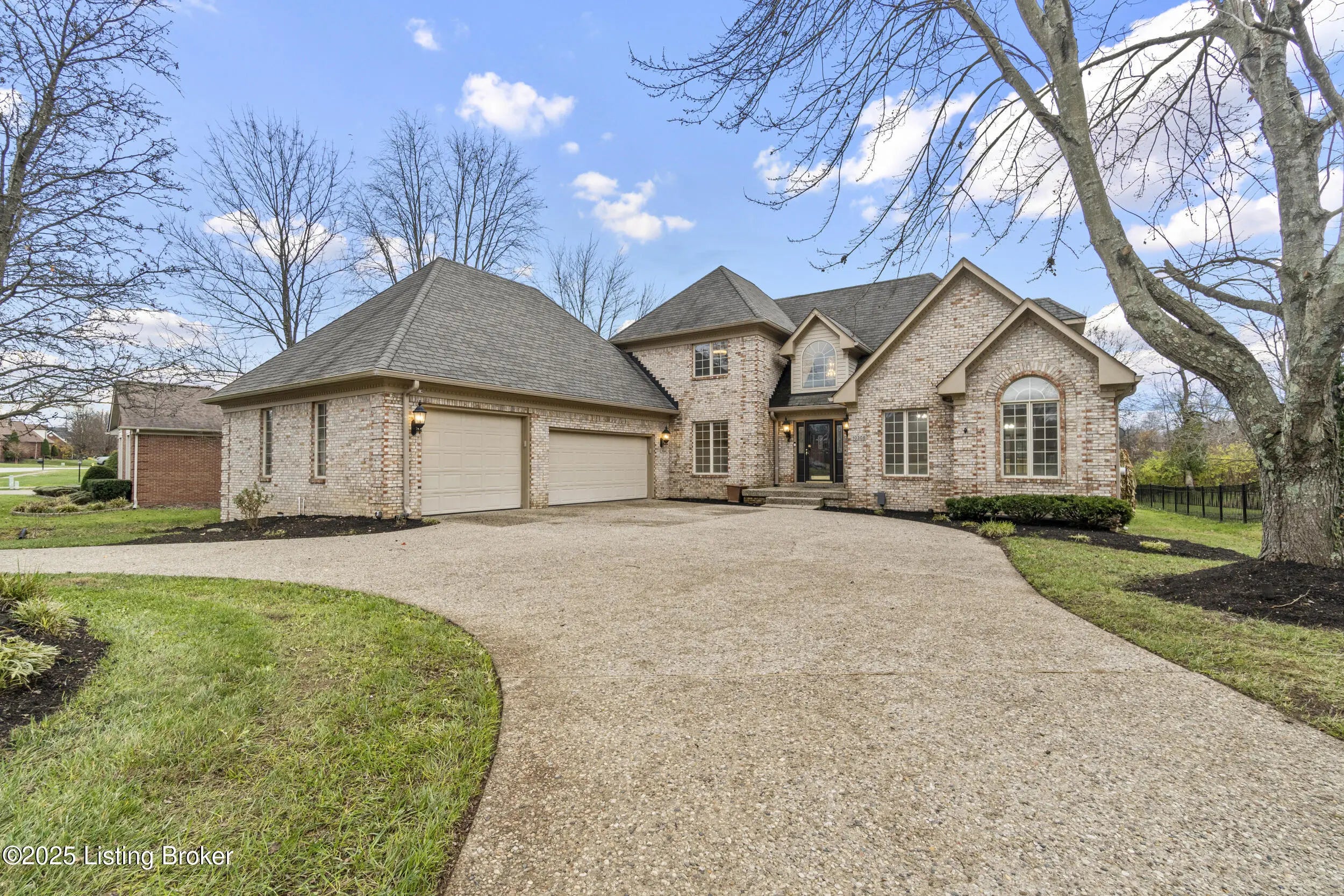 Welcome to 10308 Colonel Hancock Drive, a beautifully renovated 4-bedroom, 3.5-bath home in the desirable Glenmary community. Offering approximately 2,820 sq ft above grade plus 1,870 sq ft of finished basement, this home provides exceptional space, quality, and convenience. The main level features a two-story foyer with refinished grand staircase, a formal dining room, private office, and a breakfast area off the kitchen. The kitchen includes rich Hickory cabinetry, black granite with blue pearl accents, stainless steel appliances, gas stove, newer Samsung refrigerator, under-cabinet lighting, and a secondary bar area with matching Hickory cabinets and granite counter-tops. The living room offers a two-story vaulted ceiling, fireplace, and a large built-in with accent lighting, plus a nearby half bath for guests. The roof was replaced in 2012 with lifetime architectural shingles designed to simulate slate. The main-floor primary suite features a spacious bedroom, full bath, and a walk-in closet with custom built-ins. Upstairs are three additional bedrooms with generous closets and a full bath. The finished basement includes a full white-cabinet bar with wine fridge, ice maker, built-in microwave, sink, and storage, along with two oversized open rooms, a full bath, and a secondary office/workout room with mirrored walls. Dual staircases provide access to both the main level and the three-car garage. Outdoor living includes a brand-new deck with screened-in and covered sections, upgraded handrails, lighting, and ceiling fan. The property backs to a peaceful creek, mature trees, and walking paths on just under half an acre. Glenmary offers walking paths throughout, with convenient access to shops, dining, and the Gene Snyder Expressway.