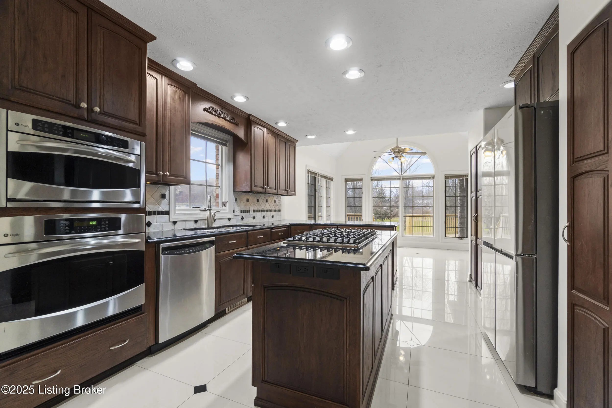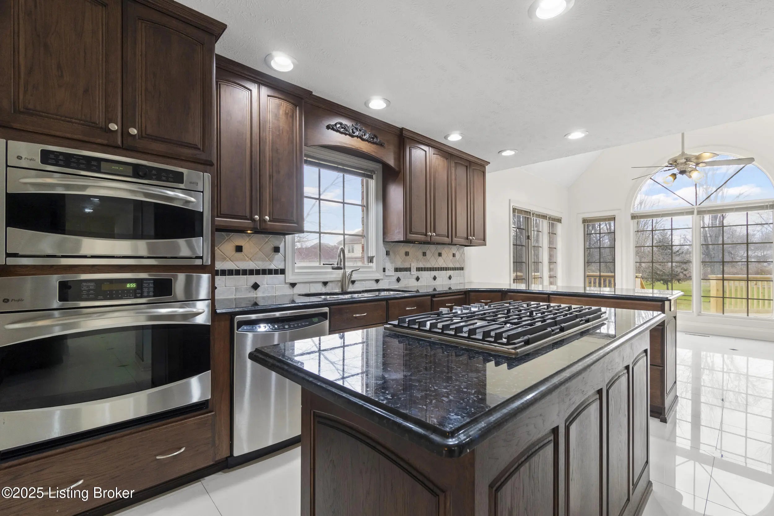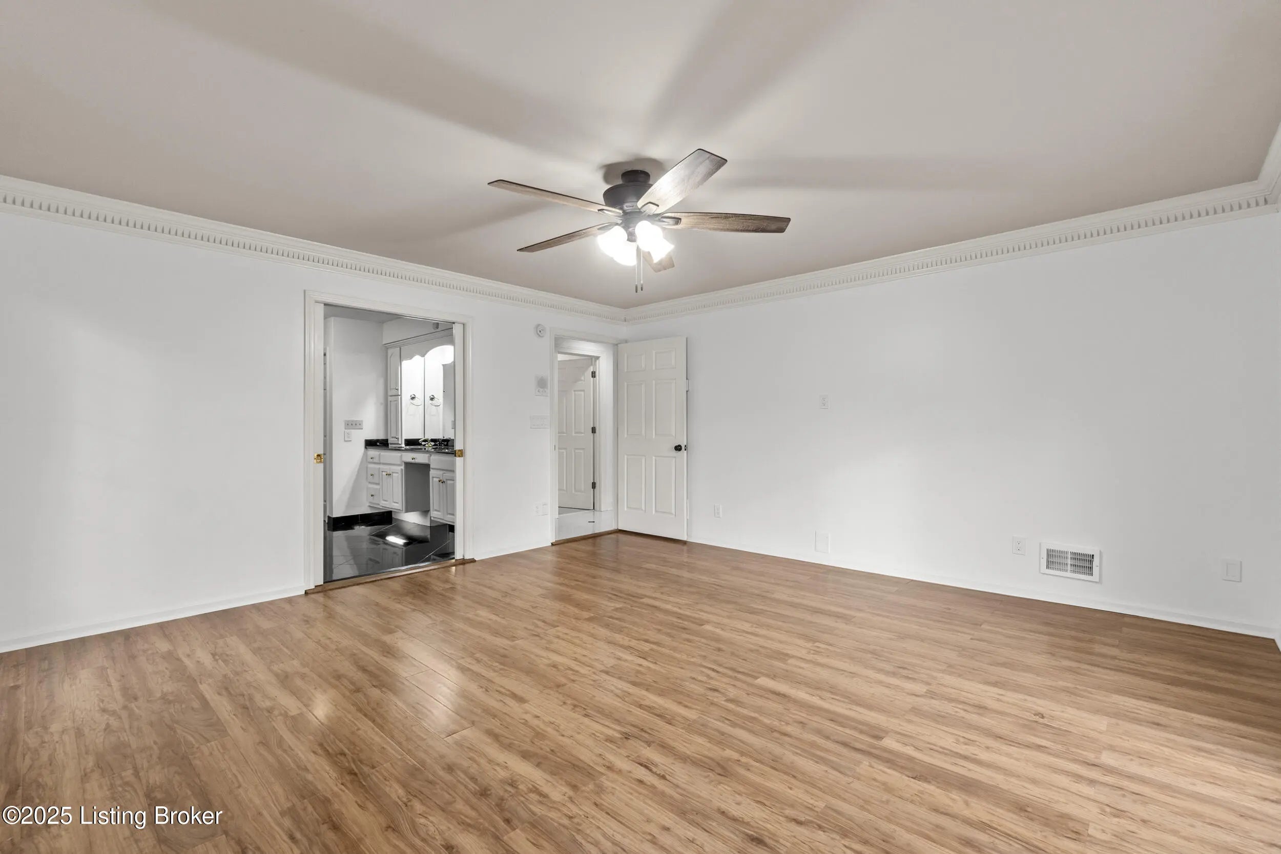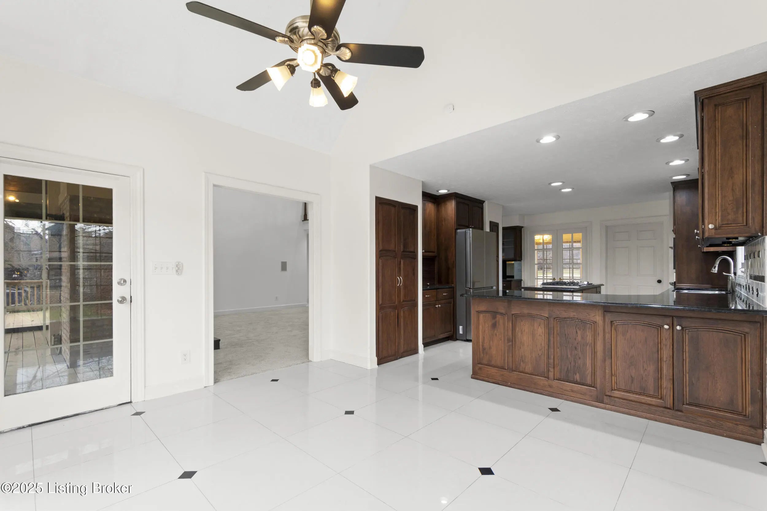 Welcome to 10308 Colonel Hancock Drive, a beautifully renovated 4-bedroom, 3.5-bath home in the desirable Glenmary community. Offering approximately 2,820 sq ft above grade plus 1,870 sq ft of finished basement, this home provides exceptional space, quality, and convenience. The main level features a two-story foyer with refinished grand staircase, a formal dining room, private office, and a breakfast area off the kitchen. The kitchen includes rich Hickory cabinetry, black granite with blue pearl accents, stainless steel appliances, gas stove, newer Samsung refrigerator, under-cabinet lighting, and a secondary bar area with matching Hickory cabinets and granite counter-tops. The living room offers a two-story vaulted ceiling, fireplace, and a large built-in with accent lighting, plus a nearby half bath for guests. The roof was replaced in 2012 with lifetime architectural shingles designed to simulate slate. The main-floor primary suite features a spacious bedroom, full bath, and a walk-in closet with custom built-ins. Upstairs are three additional bedrooms with generous closets and a full bath. The finished basement includes a full white-cabinet bar with wine fridge, ice maker, built-in microwave, sink, and storage, along with two oversized open rooms, a full bath, and a secondary office/workout room with mirrored walls. Dual staircases provide access to both the main level and the three-car garage. Outdoor living includes a brand-new deck with screened-in and covered sections, upgraded handrails, lighting, and ceiling fan. The property backs to a peaceful creek, mature trees, and walking paths on just under half an acre. Glenmary offers walking paths throughout, with convenient access to shops, dining, and the Gene Snyder Expressway.