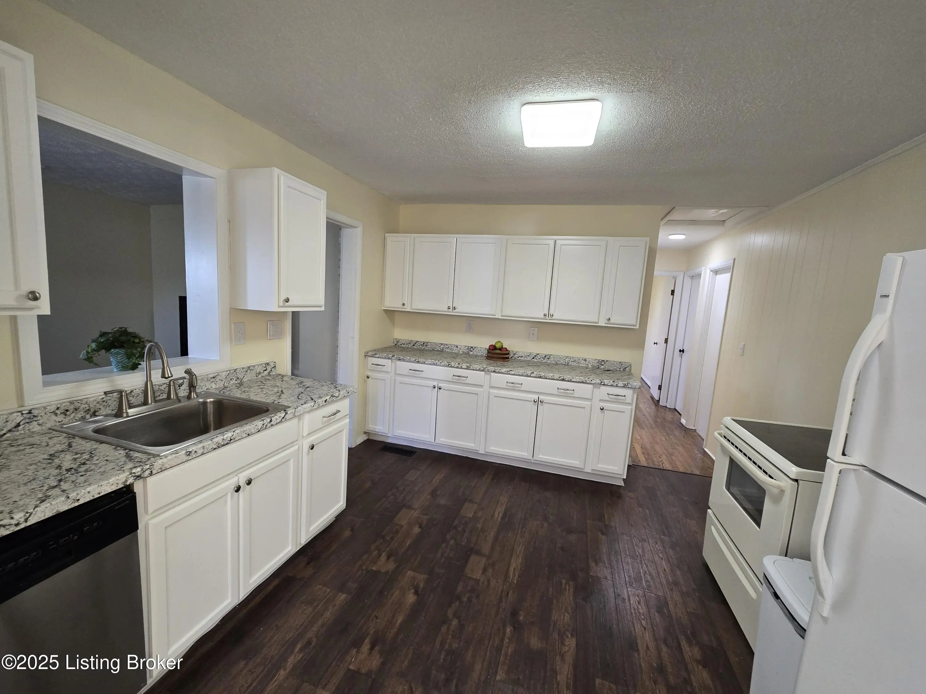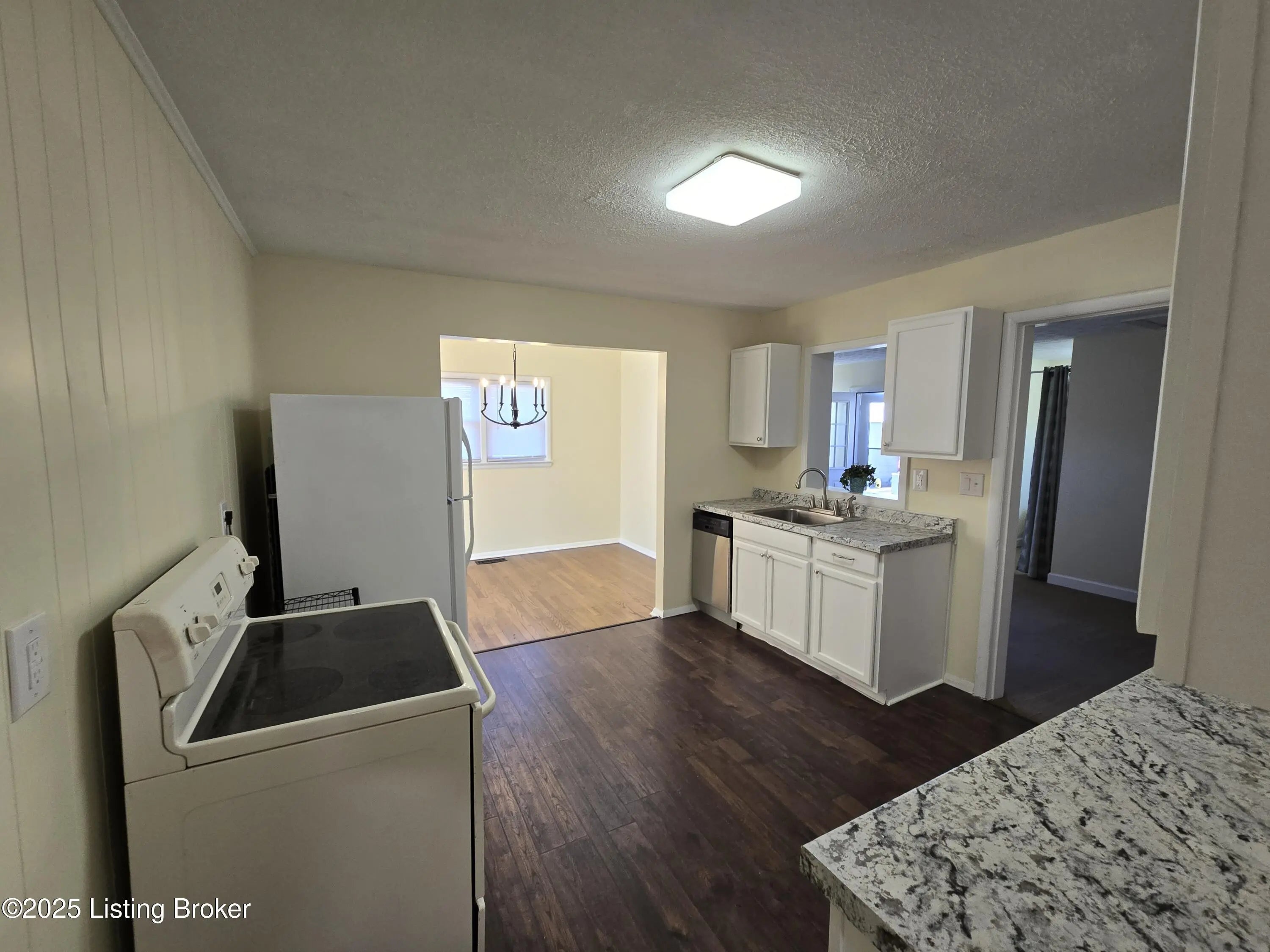 Fresh and clean and ready to move in! This three bedroom brick ranch has newly refinished hardwood floors, updated kitchen with new cabinets, countertops and floor and newly painted throughout. The huge living room has beautiful hardwood floors and great natural light as well as the dining room! The kitchen has just been remodeled with a generous amount of cabinetry and counter space- there's even a pass thru into the family room! All three bedrooms have fresh paint and refinished hardwood floors as well; the bathroom has a newer vanity and tub surround is easy-care fiberglass. Off the family room is a good sized room for laundry. The fully fenced back yard is very good sized plus a two car garage with an attached 10 x 20 workshop/storage w/ lower level. Plus newer roof & HVAC!