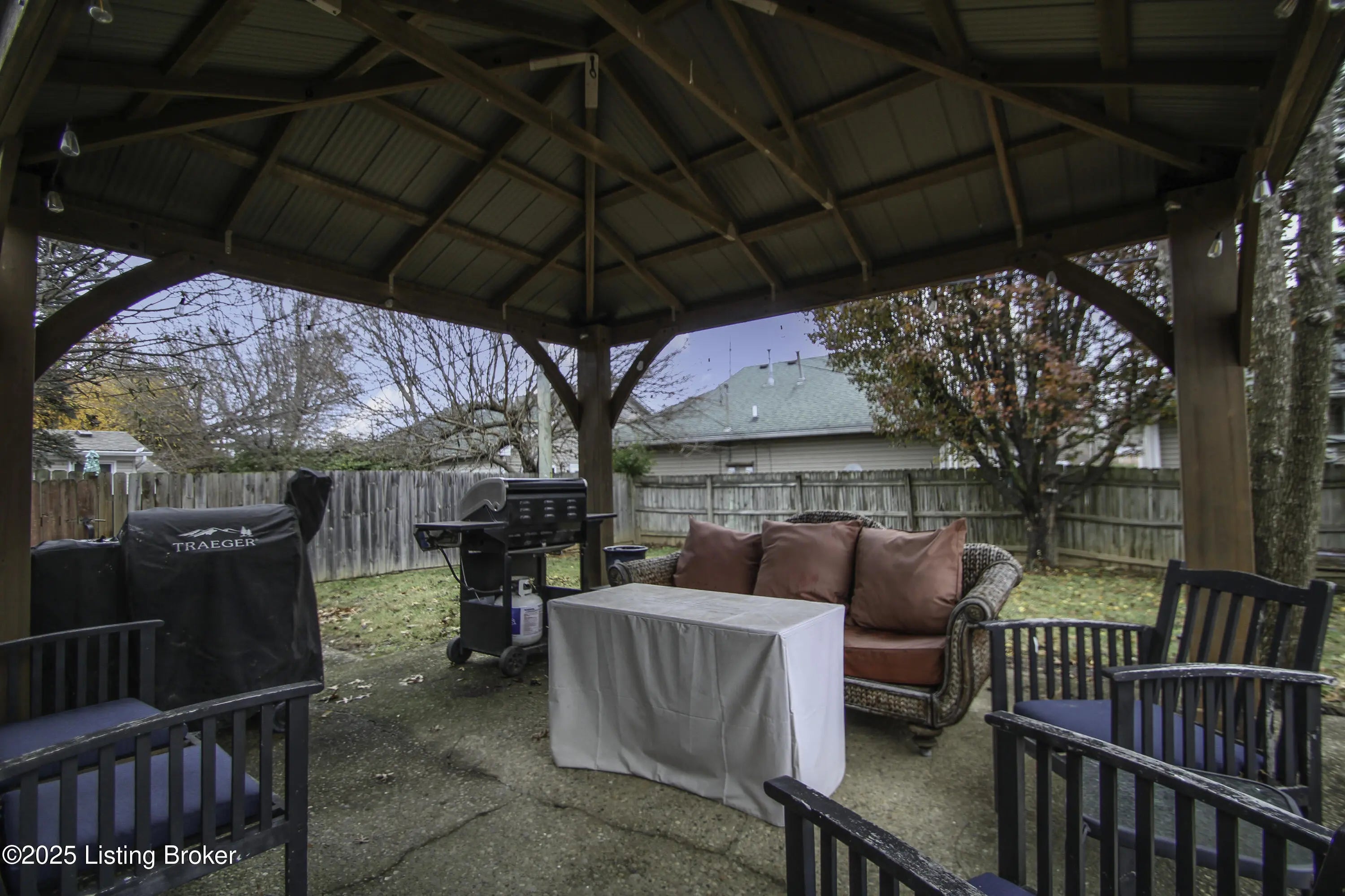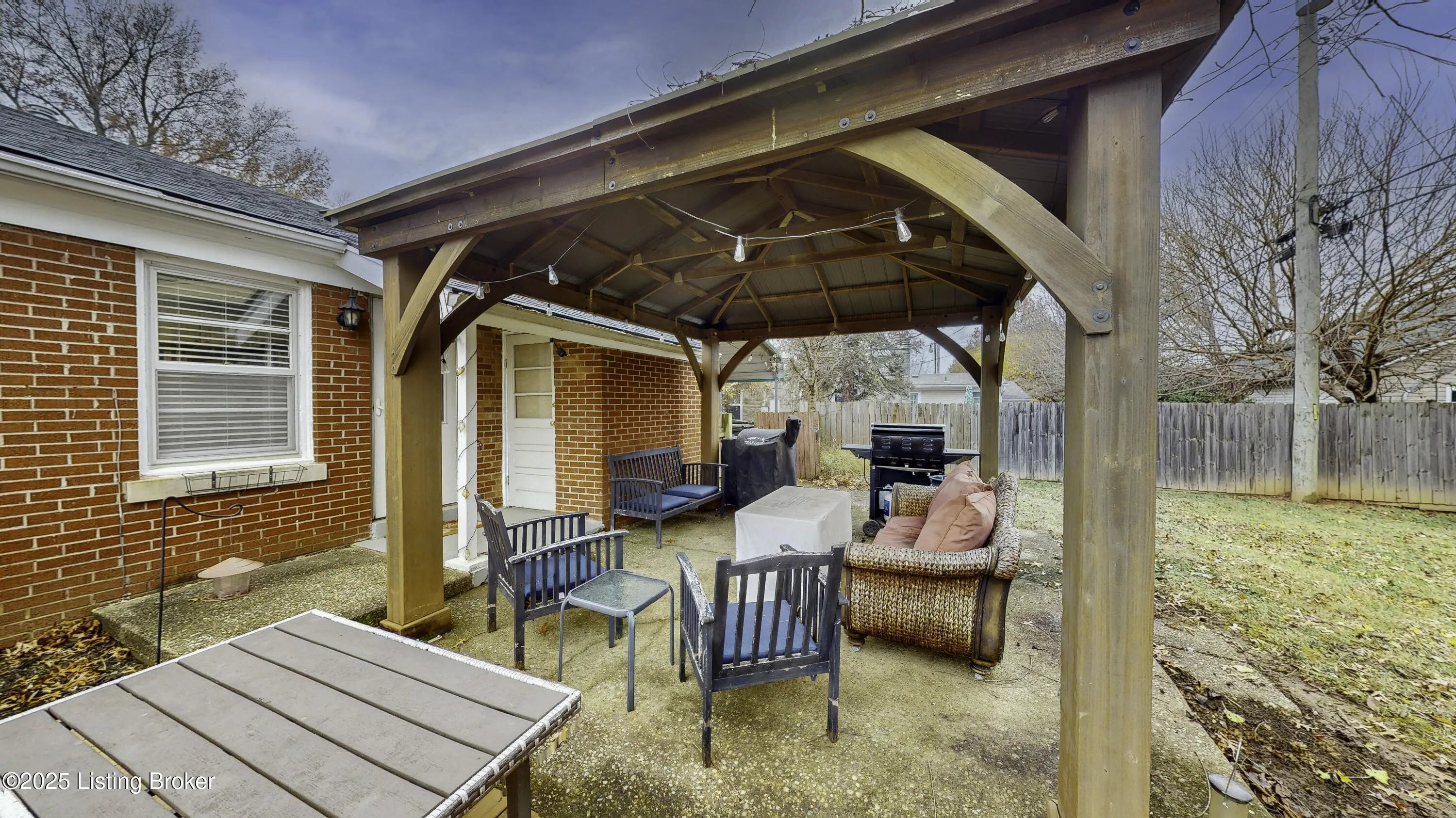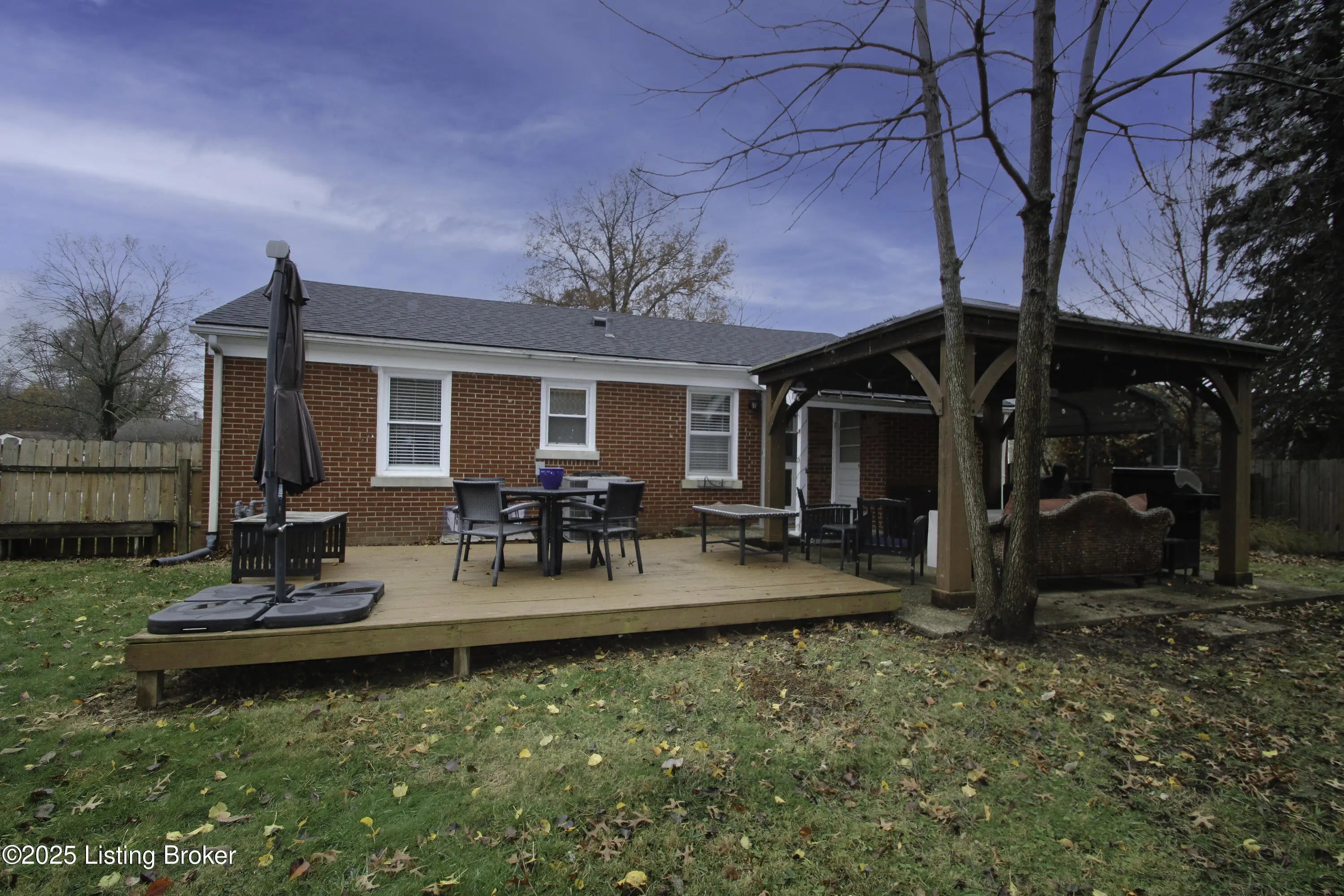 Move-in ready, 3-bedroom, brick ranch home in Lyndon! Thorobred Acres is across the street from the YMCA and convenient to shopping and dining, etc. The house features original refinished hardwood floors and a new roof and HVAC in 2023. All bedrooms have hardwood floors and a closet attached. One bedroom is currently being used as a laundry room and large closet. It can be converted back by putting a stackable washer and dryer in the hall closet. The exterior has an attached storage room that houses the water heater. The fully fenced backyard has a vaulted metal roof gazebo over the patio, a large ground level deck and an outdoor shed! There is a carport over the driveway for added convenience. Schedule your showing today!