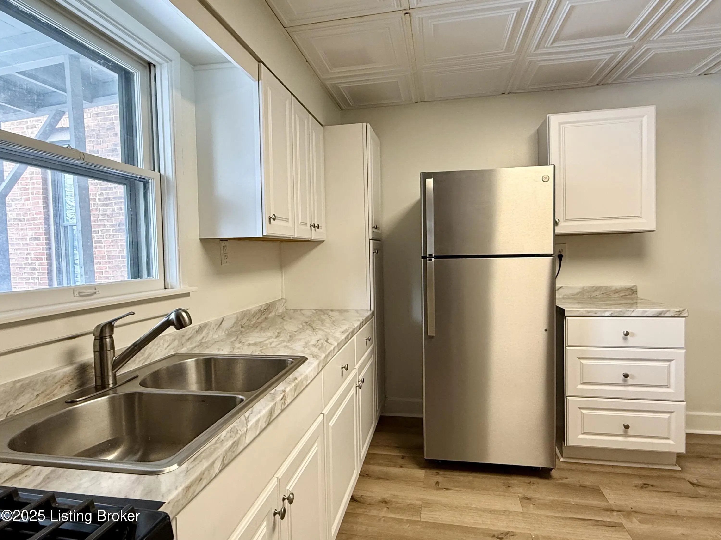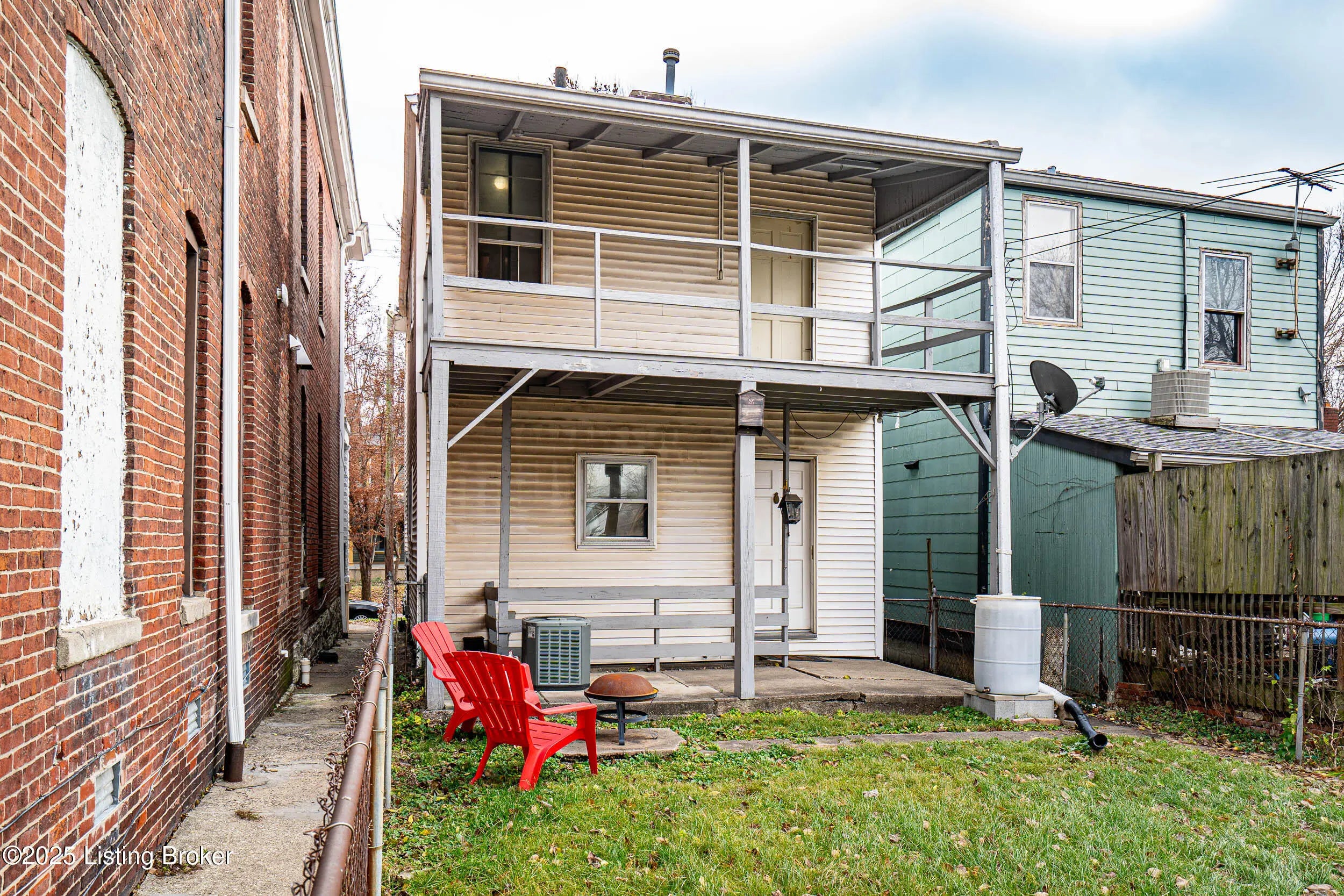 Welcome to this beautifully updated 3-bedroom, 2-bath home conveniently located just one block from the Frederick Law Olmsted-designed Central Park and the iconic St. James & Belgravia Courts in historic Old Louisville. Offering over 1,500 sq ft of living space, this property blends historic character with modern updates and sits on a picturesque tree-lined street. A delightful covered front porch sets the tone, inviting you into a warm and welcoming interior. The front living room features a decorative fireplace with tile surround and mantle, flanked by two sidelight windows that fill the room with natural light. This space flows seamlessly into the spacious dining room, where several (functioning) hinged casement windows, a convenient closet, and rich hardwood floors add charm and functionality. Toward the rear of the home, the updated kitchen offers white cabinetry, luxury vinyl plank flooring, and newer GE stainless steel appliancesincluding a gas range and built-in microwave. A full bathroom is located just off the kitchen, along with access to the covered back patio, perfect for outdoor dining or relaxation. Upstairs, you'll find three generously sized bedrooms, all featuring gleaming hardwood floors, and the 2nd full bathroom with tub/shower combination. One bedroom includes access to a covered back porch overlooking the fully fenced yardan ideal spot for morning coffee or an evening wind-down. Rare for Old Louisville, this property also includes an oversized 1-car garage with alley access, providing covered, off-street parking. An unfinished basement houses the laundry area, and additional storage space. Other notable items include storm windows throughout, addition of attic insulation, and recent tuck pointing of the chimney, and gutter/soffit repair. If you're seeking a spacious, move-in ready home at an excellent value and in a prime location near parks, dining, and the charm of historic Old Louisville, this one is not to be missed!