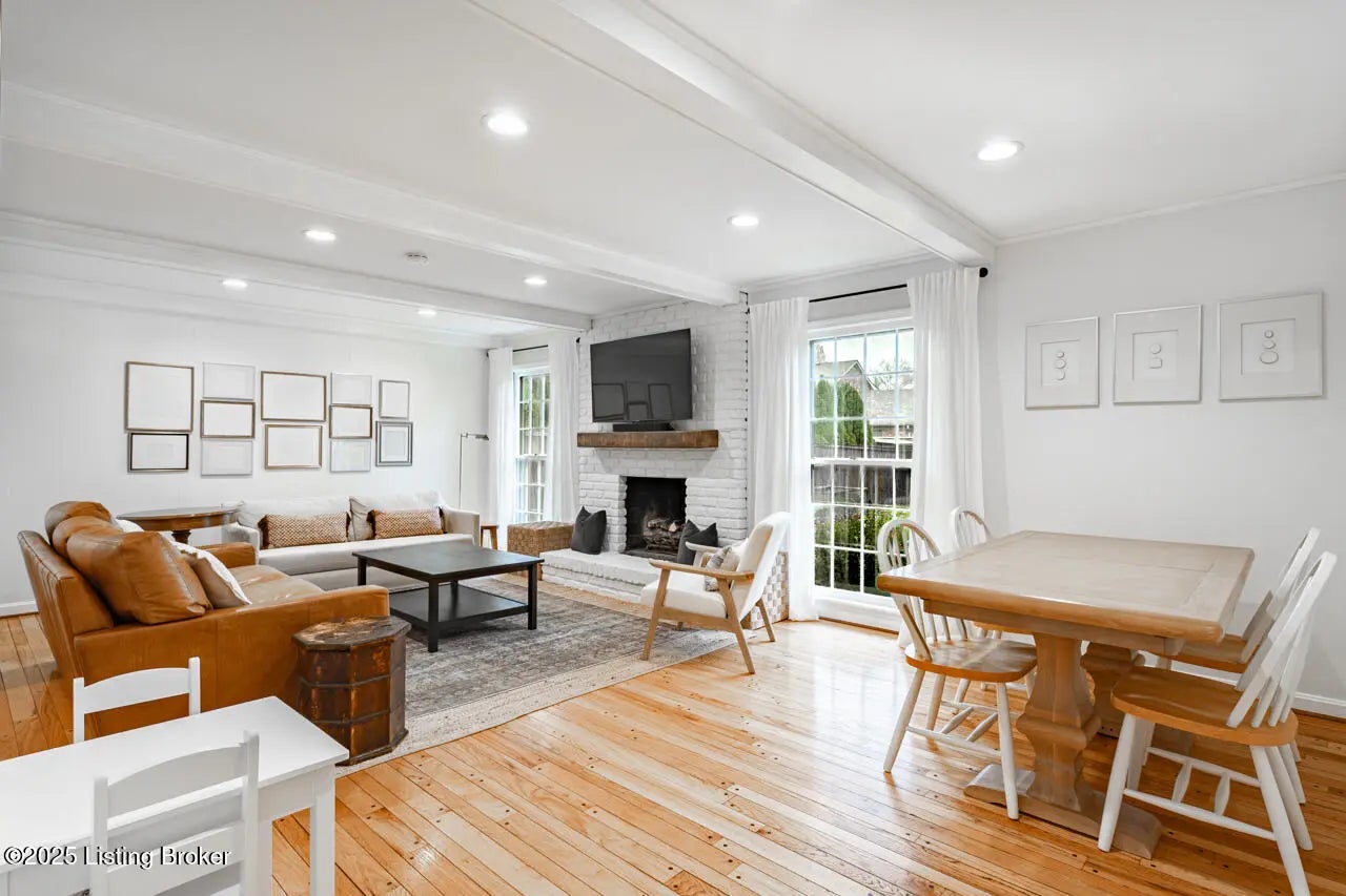 Brimming with classic charm, this 3 bedroom, 2.5 bath home with a welcoming front porch sits on a beautifully maintained lot just minutes from favorite shopping and dining destinations. Make your way inside to find gorgeous hardwood floors creating a warm and cohesive main level. The floorplan allows for flexibility giving you many options to use the rooms as you see fit. The formal living room (currently functioning as a dining room) offers generous space for entertaining and flows seamlessly into the cozy family room, where a gas fireplace and exposed ceiling beams add inviting character. Just off the kitchen, a separate dining room - currently used as an office - provides wonderful flexibility for work, meals, or creative use of the space. The updated eat-in kitchen features fresh granite countertops, crisp white cabinetry, stainless steel appliances, and direct access to the back patio and expansive, fully fenced yard - perfect for gatherings or quiet evenings outdoors. Upstairs, the impressive primary suite delivers true retreat-like comfort with its wood-burning fireplace, two walk-in closets, and a renovated en-suite bath complete with a double granite vanity. Two additional bedrooms share an updated bath, and one offers access to a charming bonus room. While it lacks a closet, the room's size and versatility make it ideal for a game room, home office, or sitting room. The unfinished basement allows plenty of storage space as well as the opportunity to expand the finished living space. You will have a rear entry 2 car attached garage for secured, off-street parking and the driveway allows plenty of room for guest parking. This home is located near Hurstbourne Country Club, shopping malls, and all of the dining and entertainment the Hurstbourne neighborhood has to offer. The sellers have completed many updates along the way - please see the updates list in the documents section. Don't miss this opportunity to make this amazing house your new dream home - schedule a showing today!