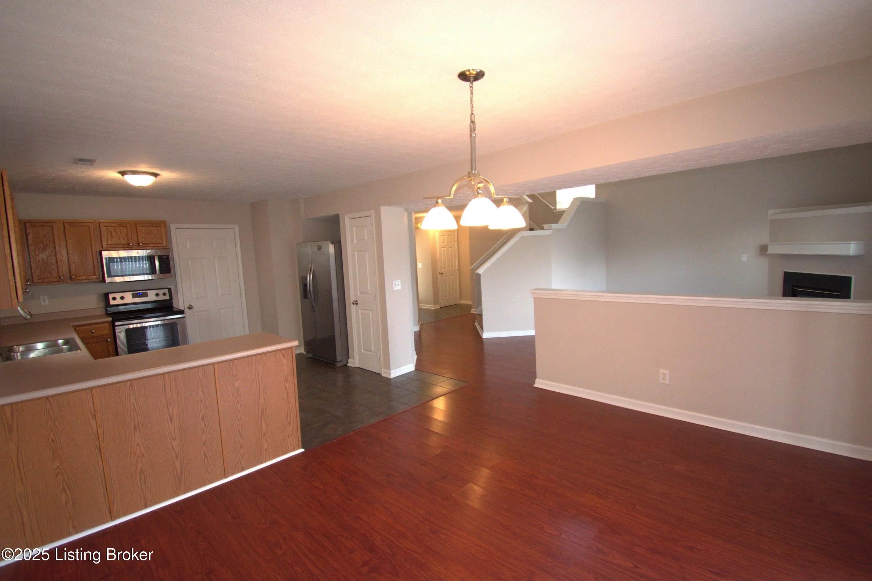 This spectacular one and half story home is nestled and located in great location near beautiful local parks, and the vibrant J-Town Square, this home offers the perfect blend of comfort, convenience, and community. First floor welcomes you to the beautiful 18 feet vaulted Great room with fireplace, LVP flooring and ceiling fan which is open to nice size eat-in kitchen with tile flooring and LVP flooring with stainless appliances one year old. Bathroom with tile flooring, medicine cabinet, and light fixture. Upstairs has a spacious master bedroom with vaulted ceiling, ceiling fan, and new carpet in December 2025. Master bathroom with double sink, LVP flooring one year old and medicine cabinet. There are two additional bedrooms with ceiling fans and double closets and new carpet in December 2025. Laundry room with LVP flooring one year old. Sliding door with new blind open to nice deck 12.5 by 27 feet and privacy fenced back yards for all your entertainment. Two car attached garage. This spacious Must-See home shows great and ready to move in today. The monthly rent is $2,150.00, deposit is $2,150.00, and the application fee is $95.00 for each applicant. Tenant pays all the utilities and garbage. Only one small pet is allowed in the property with the pet fee and monthly pet fee. Owner/Agent.