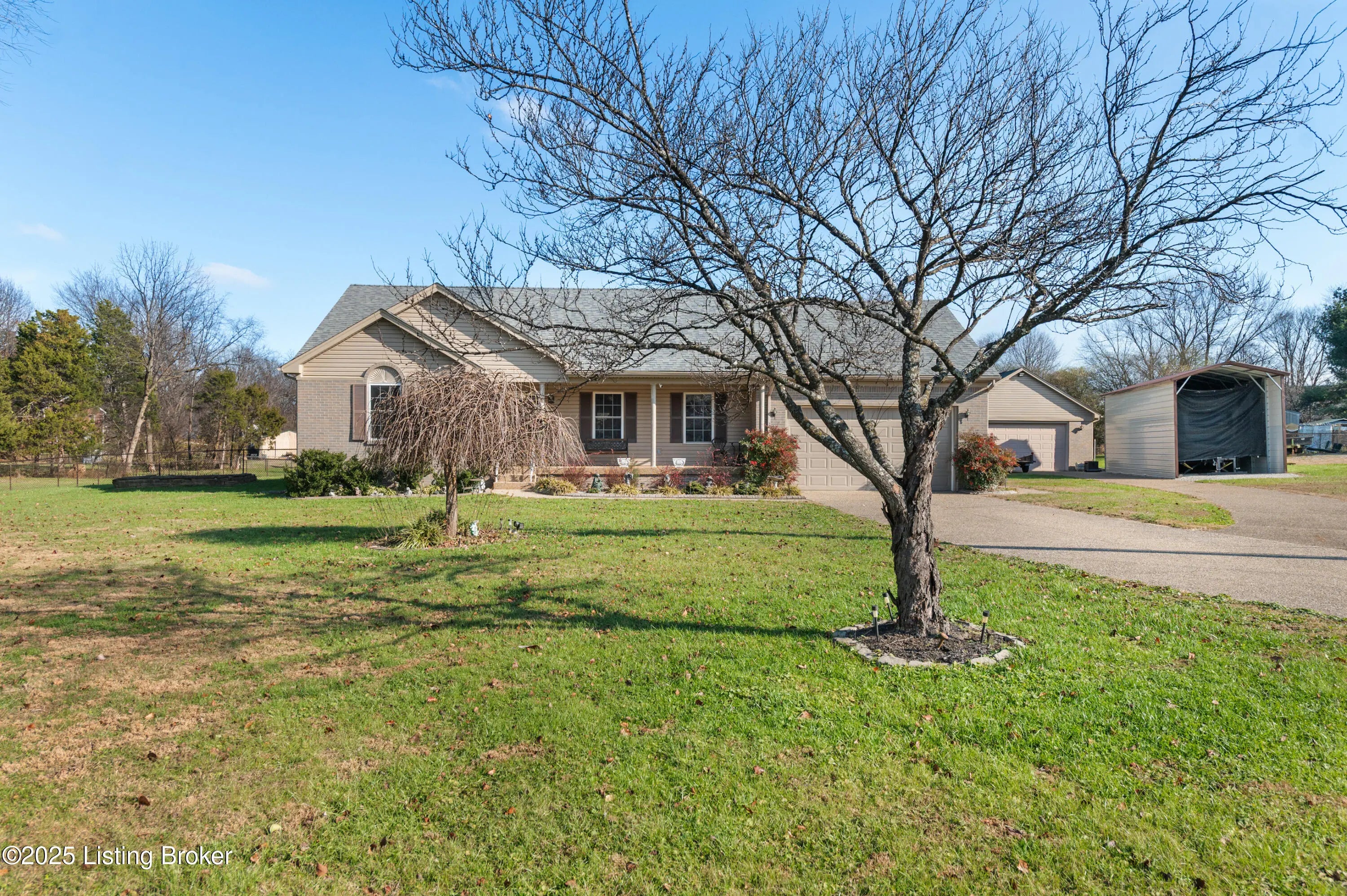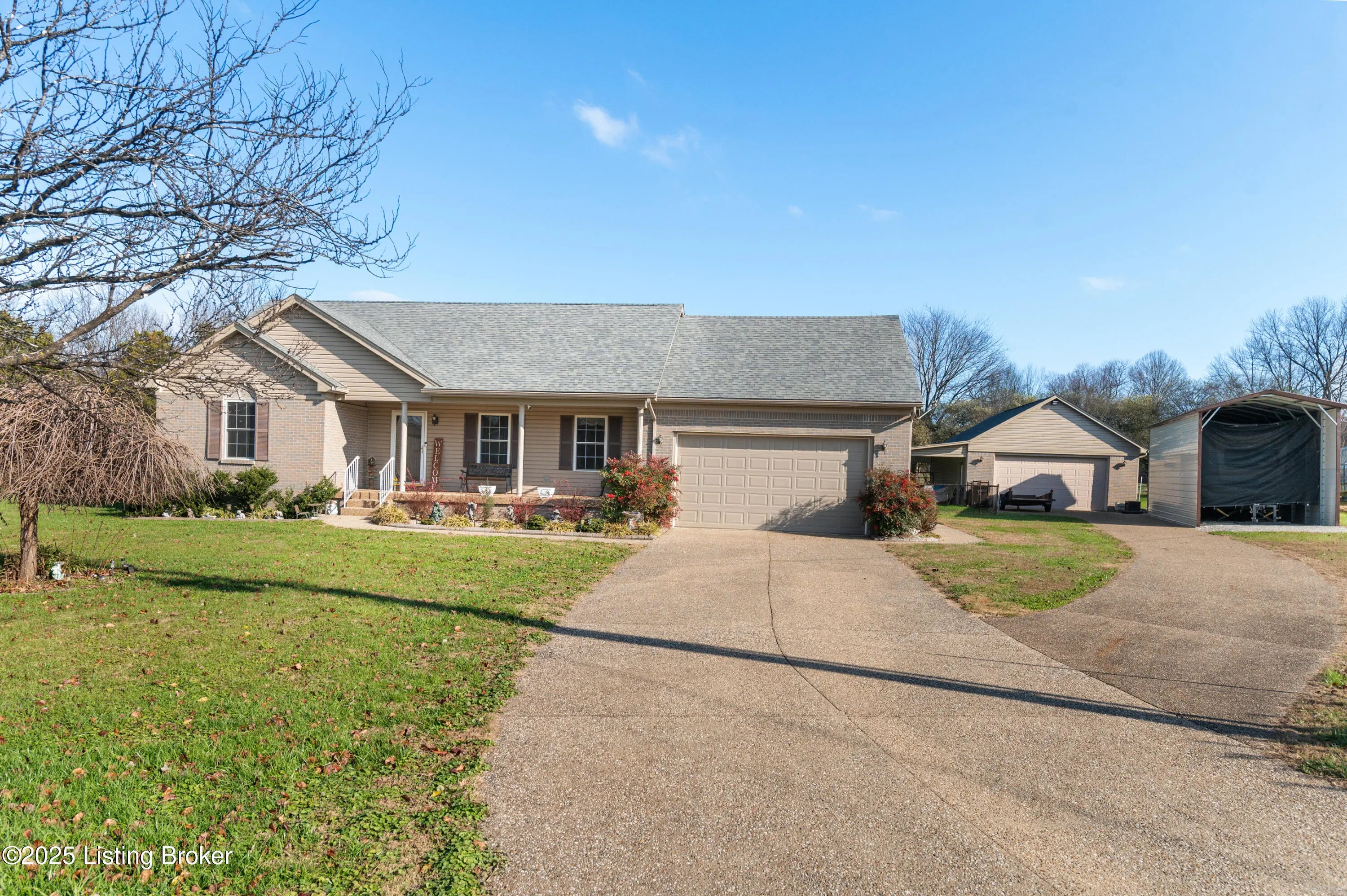 Well-kept 3 bedroom, 2 bath ranch with beautiful landscaping and fantastic outdoor features. This home includes an attached 2-car garage plus a heated and cooled detached garage, along with a 12x35 RV-ready canopy—perfect for extra parking or storage. Major recent mechanical updates include water heaters, furnace, A/C, insulation and roof for added peace of mind. Enjoy low-maintenance Trex decking on the rear deck and a welcoming covered front porch. Inside, the living room offers a cozy gas fireplace and flows seamlessly into the eat-in kitchen with a convenient breakfast bar. The primary suite features a private bath with a separate shower, jetted tub, walk-in closet, and direct access to the deck and fenced back yard. Move-in ready and thoughtfully updated—this property has it all!
