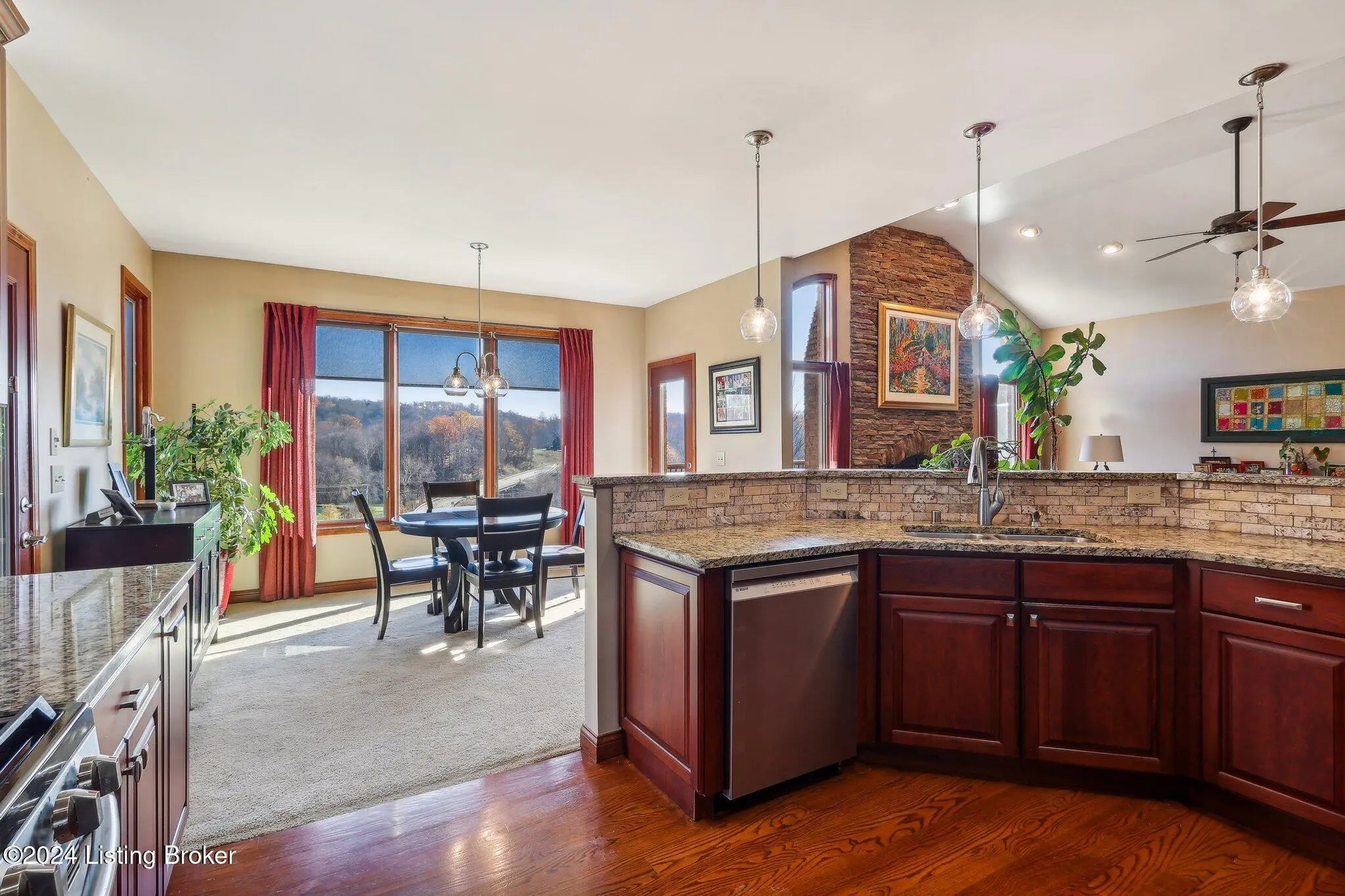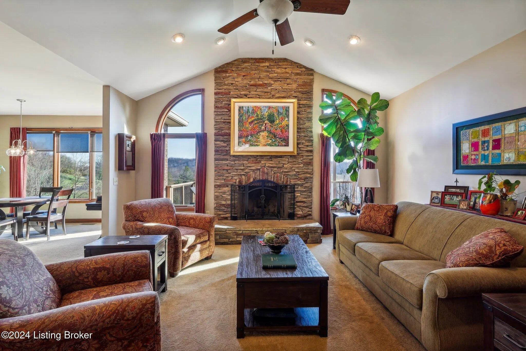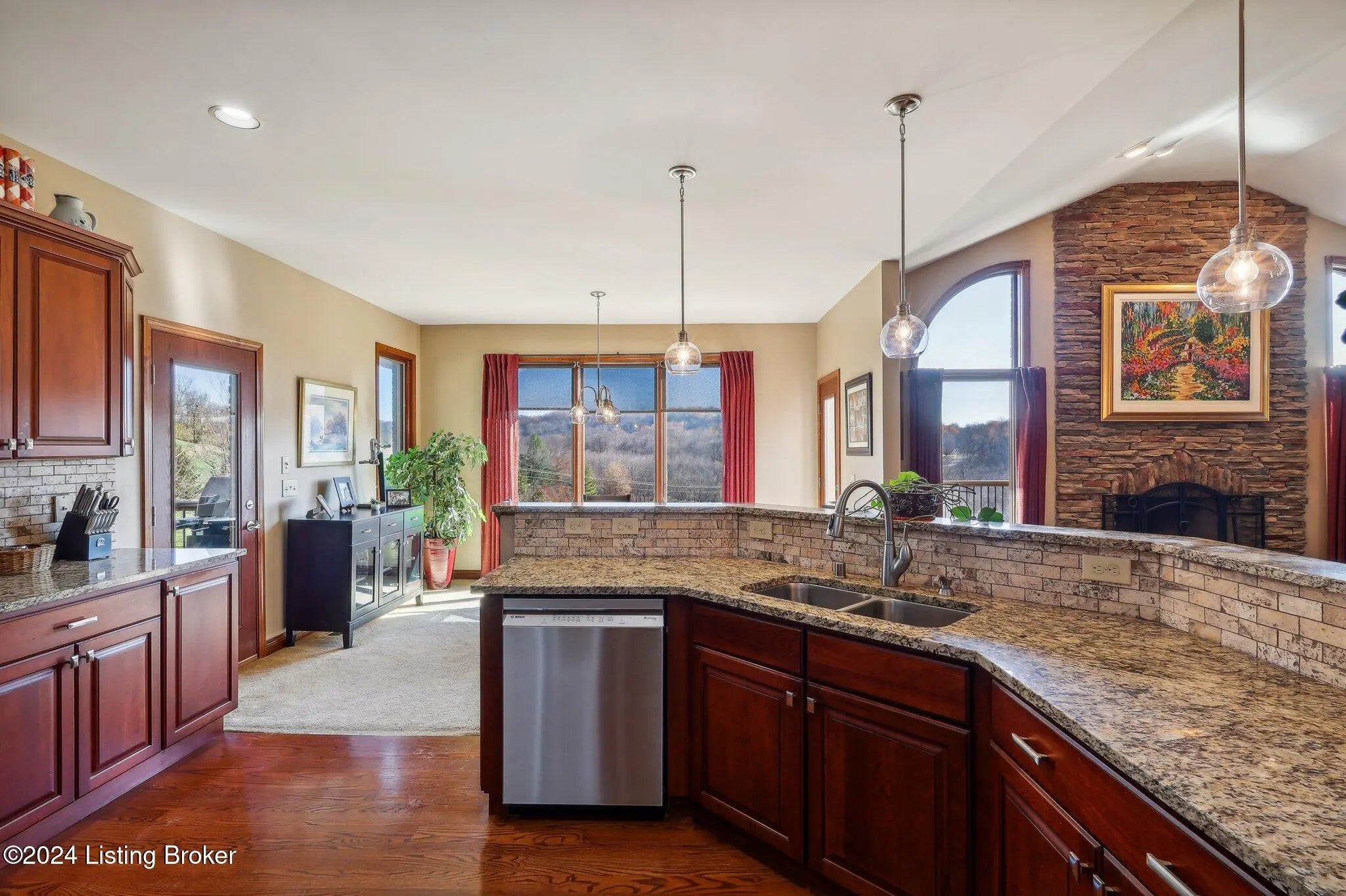 Stunning ranch on 5.47 ac*Offers three bedrooms & three bathrooms*Upon entering, you'll find an open floor plan that seamlessly connects the living, dining & kitchen areas*The living room features lg windows, filling the space with natural light & a stone WBFP with a gas starter*The well-equipped kitchen boasts stainless steel appliances, rich cabinetry, & granite countertops*The adjoining dining area offers spectacular views with dbl walkouts to two covered decks*The primary suite includes a generous walk-in closet & an ultra-bath with a jetted tub, separate shower & dual vanities*The finished lower level adds extra living space with a walk-out to a spacious patio*Outside, a private oasis with a 30x24 pole barn, 2 relaxing ponds, multiple seating areas & a firepit.