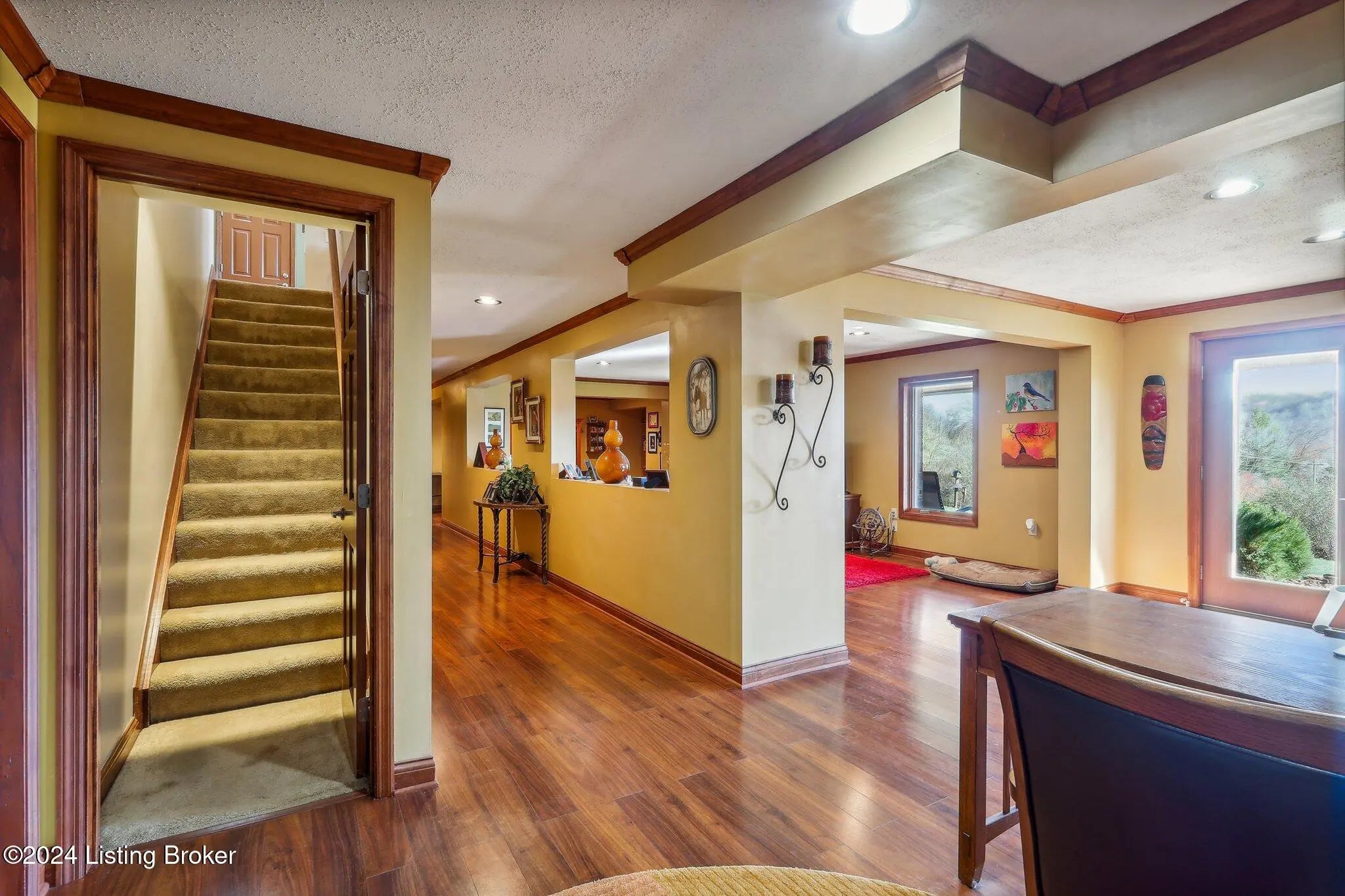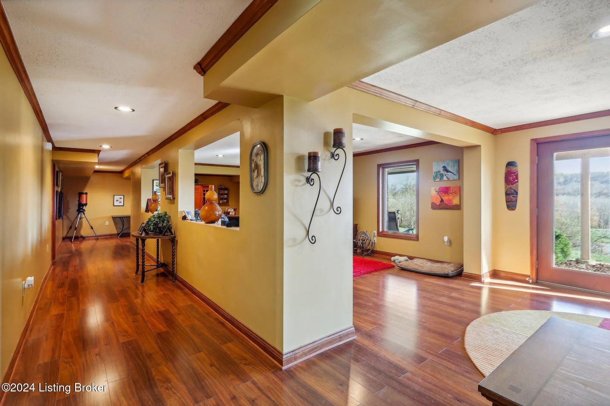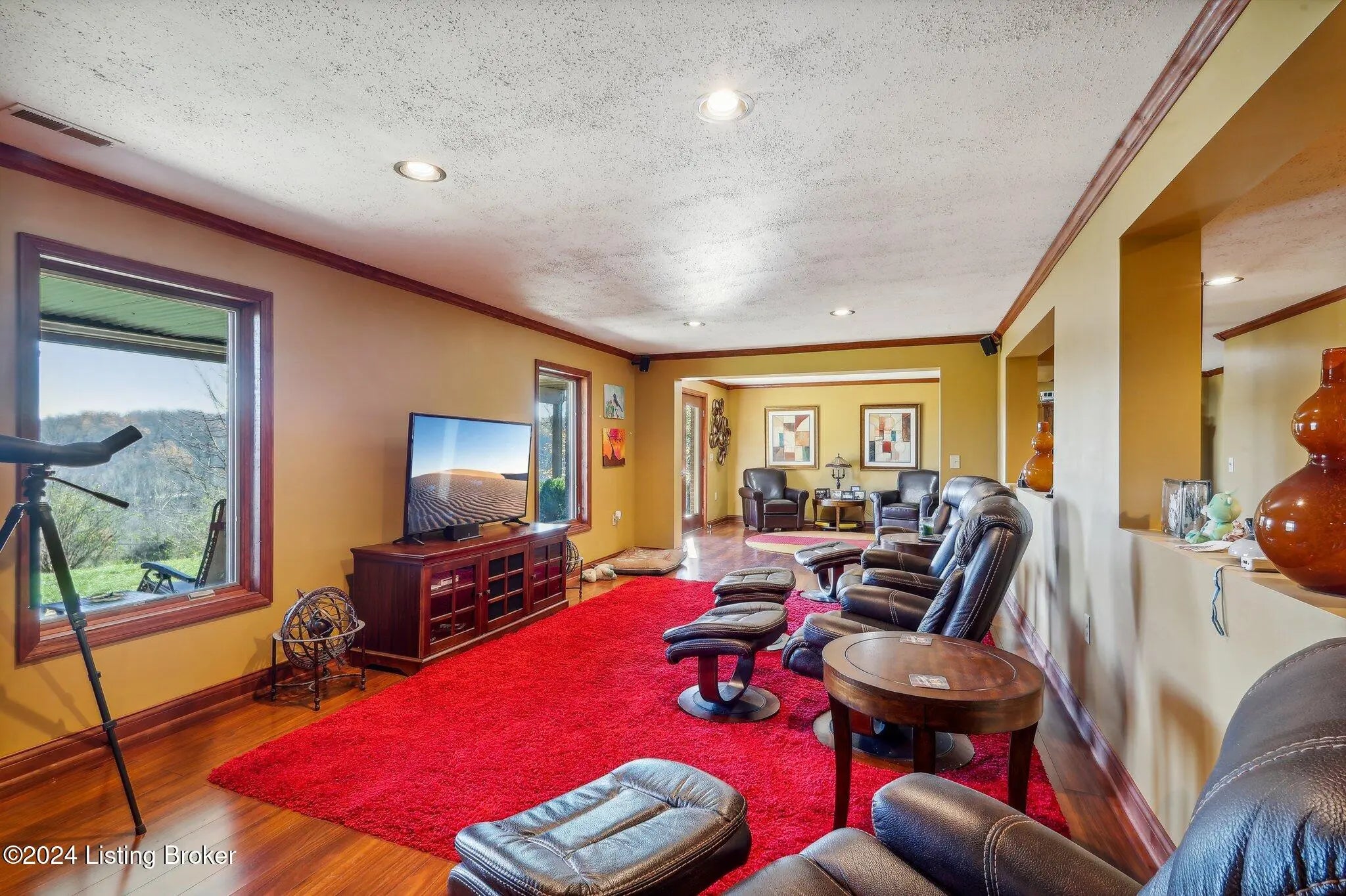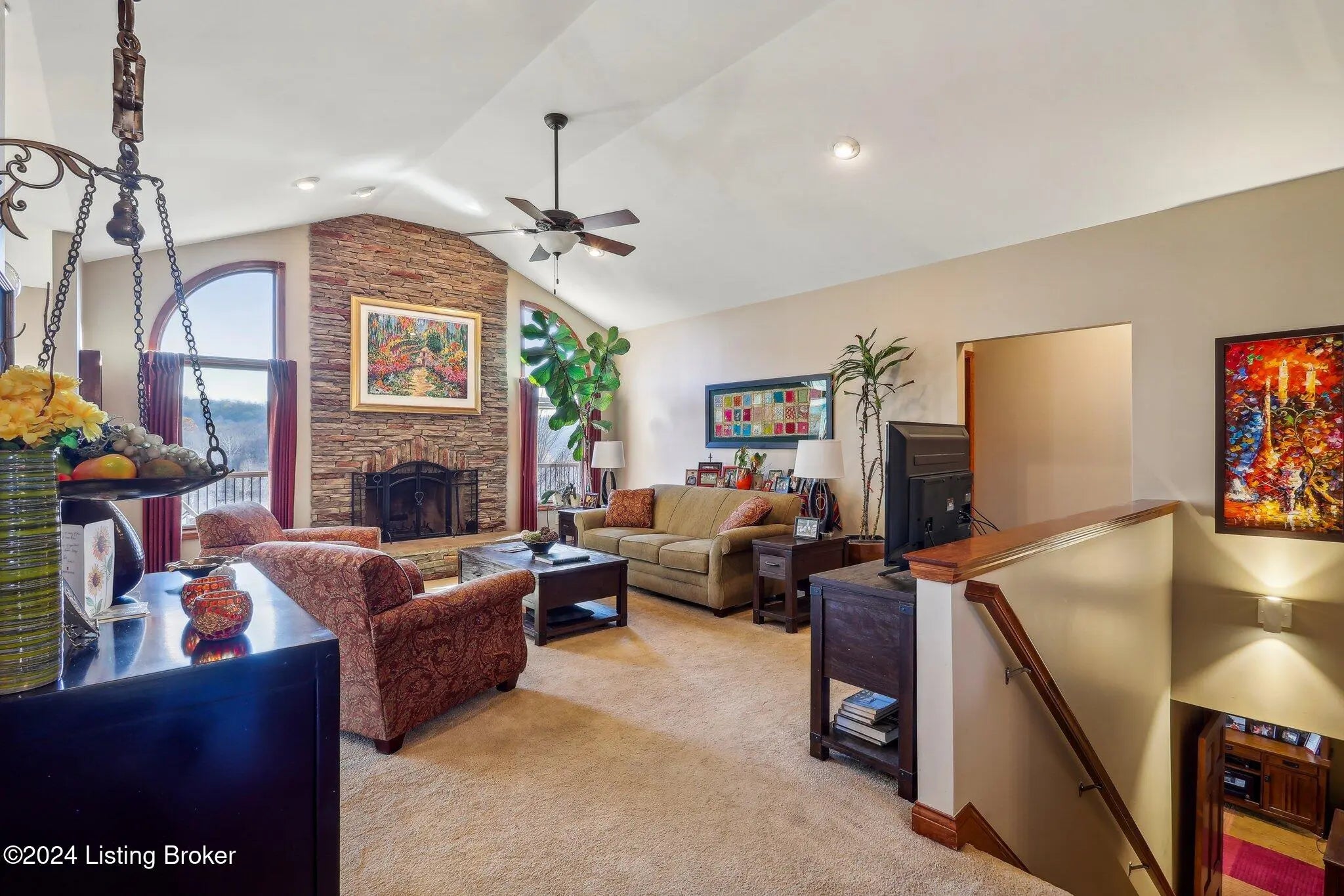 Stunning ranch on 5.47 ac*Offers three bedrooms & three bathrooms*Upon entering, you'll find an open floor plan that seamlessly connects the living, dining & kitchen areas*The living room features lg windows, filling the space with natural light & a stone WBFP with a gas starter*The well-equipped kitchen boasts stainless steel appliances, rich cabinetry, & granite countertops*The adjoining dining area offers spectacular views with dbl walkouts to two covered decks*The primary suite includes a generous walk-in closet & an ultra-bath with a jetted tub, separate shower & dual vanities*The finished lower level adds extra living space with a walk-out to a spacious patio*Outside, a private oasis with a 30x24 pole barn, 2 relaxing ponds, multiple seating areas & a firepit.