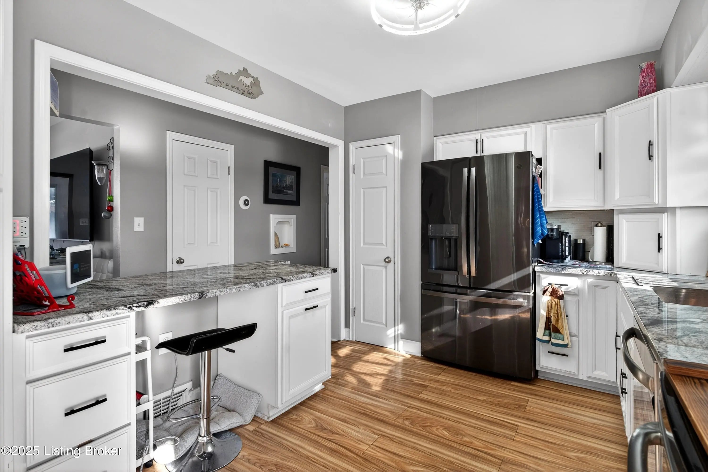 Welcome to 2705 Alice Avenue, a classic Bedford stone ranch nestled in the desirable Bon Air Estates neighborhood of Louisville, KY. As you step inside, you'll be greeted by an inviting living room featuring a decorative fireplace, large windows that bathe the space in natural light, trendy paint colors, and stunning hardwood floors that flow seamlessly into the formal dining room. The updated eat-in kitchen boasts a new peninsula, sleek granite countertops, and appliances that will remain with the home. Additional living spaces include a versatile office/sunroom, a primary bedroom with an en-suite half bath, two more bedrooms, and a recently updated main bathroom. The home features modern upgrades such as a newer electrical panel, energy-efficient Gilkey windows, and updated mechanicals.