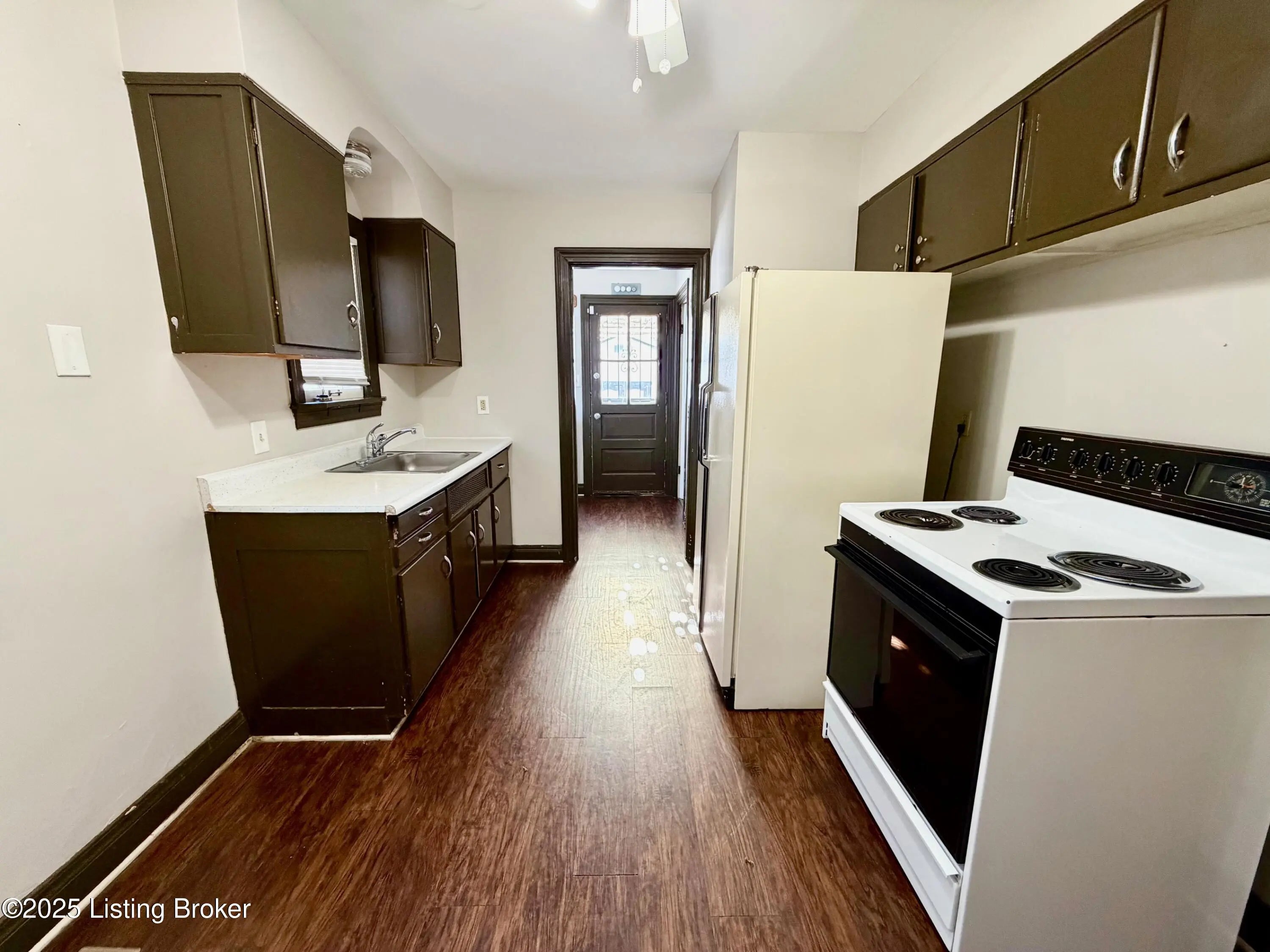 This 2-bedroom, 1-bath single-family home—just one block from Churchill Downs—features original hardwood flooring throughout, a large 2-car garage with front and back access, and fully fenced front and back yards. Additional amenities include washer and dryer hookups with a washer and dryer included, central A/C, a backyard storage shed, and a kitchen equipped with an oven and refrigerator.