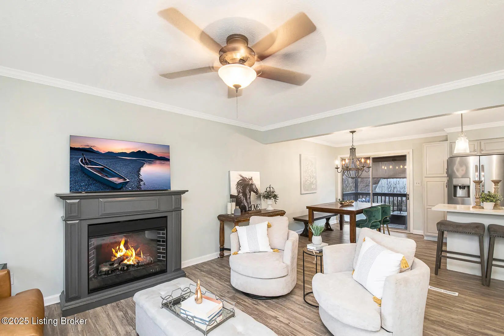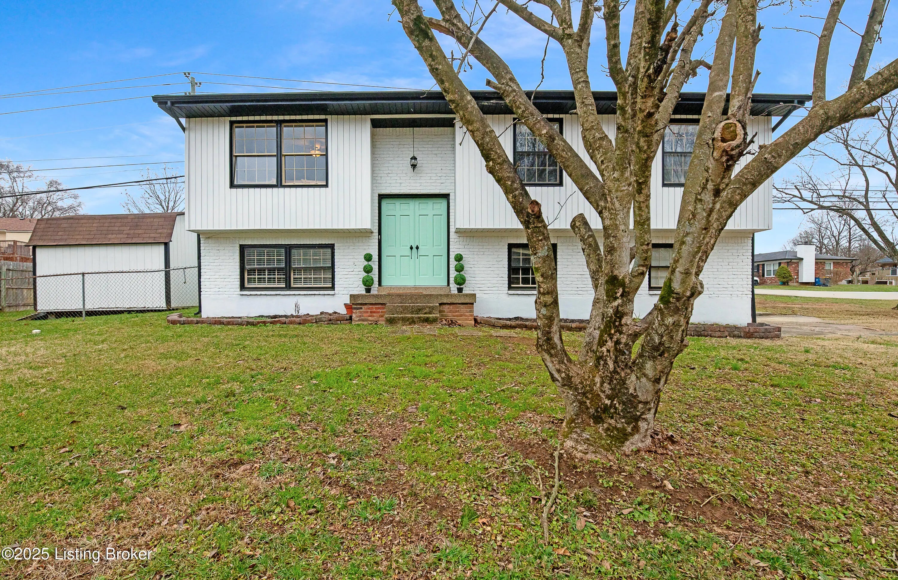 This beautifully updated home in Ashbrooke area of Pewee Valley is ready to welcome you home. Situated on a desirable corner lot in a peaceful neighborhood, the home features fresh exterior and interior paint, all new lighting, and stylish luxury vinyl flooring throughout the main living areas. The upper level offers a bright, open layout with an inviting living room flowing into the dining area and designer kitchen, complete with abundant white cabinetry, a center island, stainless steel appliances, quartz countertops, and an eye-catching arabesque backsplash. Step outside to the covered deck overlooking the fully fenced backyard—perfect for entertaining or relaxing. Three nicely sized bedrooms with new carpeting and ample natural light, along with a full bath featuring dual vanities, complete the upper level. The lower level provides a cozy den with a fireplace and a flexible bonus room ideal for an office or additional family room. The current owners use it as private primary suite, complete with its own full bathroom! This level also includes a laundry area and walk-out to the backyard. Additional features include a new water heater, freshly painted deck and fence, an attached one-car garage, and a storage utility shed. Located in the highly sought-after Oldham County School District, this home offers a peaceful setting just minutes from shopping, dining, expressways, and outdoor destinations like Central Park and Floyds Fork. Schedule your showing today!