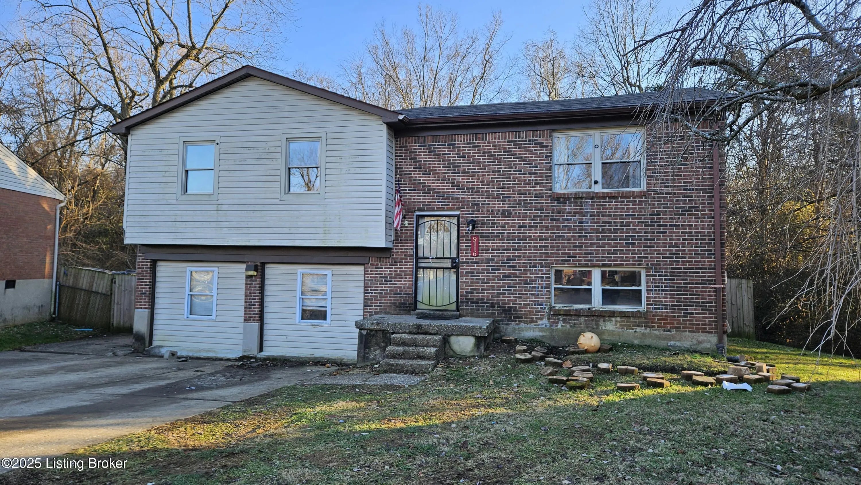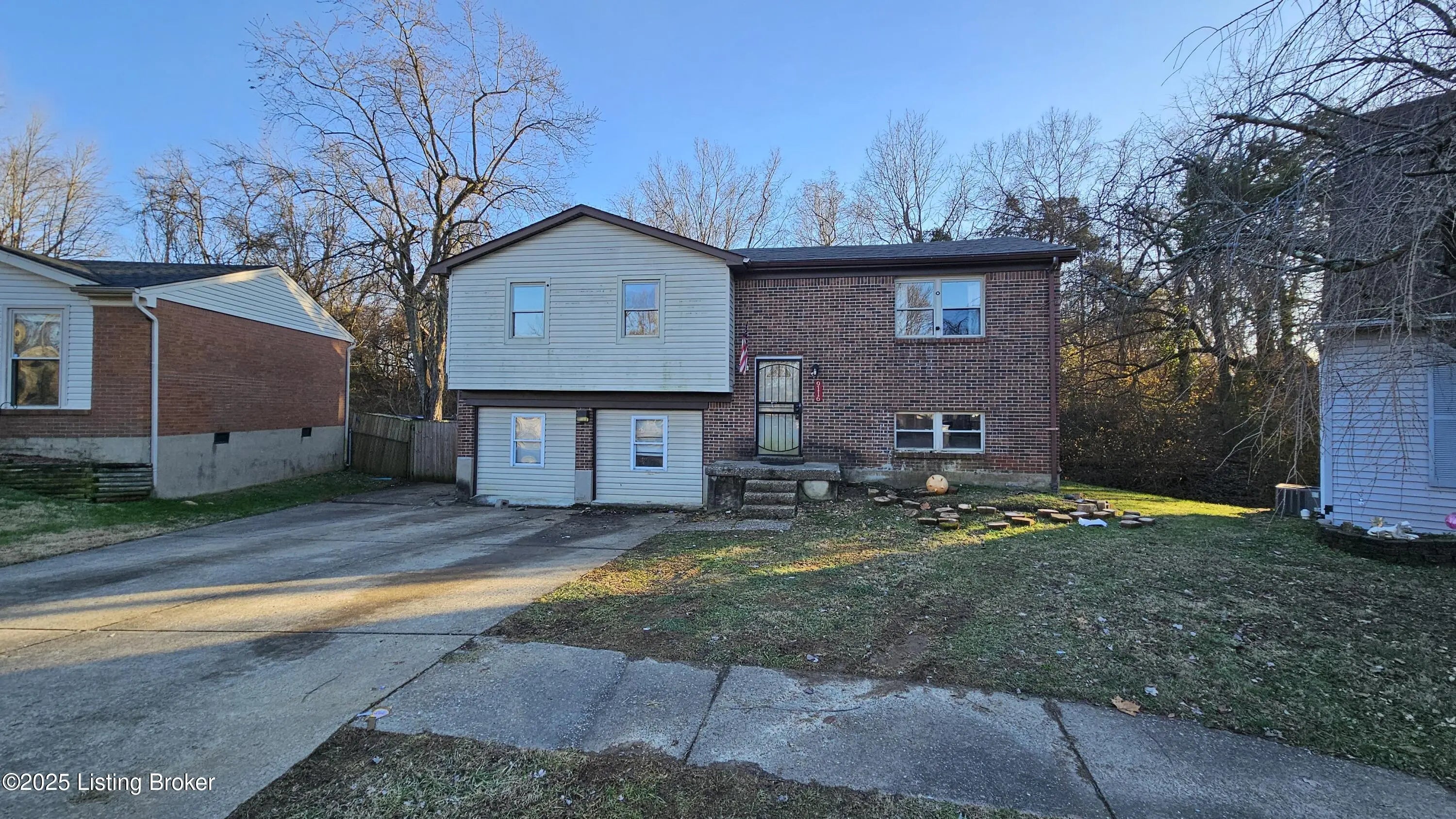 Welcome to 9116 Maiden Court. Investor special! Situated on a quiet cul-de-sac in the Cinderella Estates neighborhood, just south of Highview and Okolona, this bi-level presents an excellent opportunity for your next rental or flip. This home has great potential but does need a cosmetic refresh inside. Come put your finishing touches on this one. Heading inside, and up the stairs to the upper level, brings you into a lovely open living room, dining area, and kitchen. This main living space offers ample natural light and laminate flooring. The kitchen has plenty of cabinet space and stainless steel appliances. Down the hallway are three generously sized bedrooms and a full bath. The bath offers a newer vanity and lighting, tiled walls, and whirlpool tub. Heading downstairs to the lower level brings you into a 4th nice sized bedroom with large closet. This bedroom then connects to a cozy family room with brick fireplace. The bedroom and family room could easily be turned back into one large living space. Off the family room is a convenient half bath. A newer laundry room has been added to back side of the half bath and is accessed from the hallway. The half bath and laundry room can easily be converted back into a full bath. Lastly the lower level offers a huge storage and utility room. This room does comes with the original laundry are hookups. Heading out back, through the dining area door, leads you onto a great 10.5' x 29' deck. The deck overlooks a 22' diameter above ground pool and fully privacy fenced yard. The pool has a surrounding deck that connects to the covered patio. This home also comes with a detached 2 ½ car garage. Don't miss out on this one and schedule a showing today! This property is being sold "as-is" and will not currently qualify for FHA financing due to the 90 day rule.