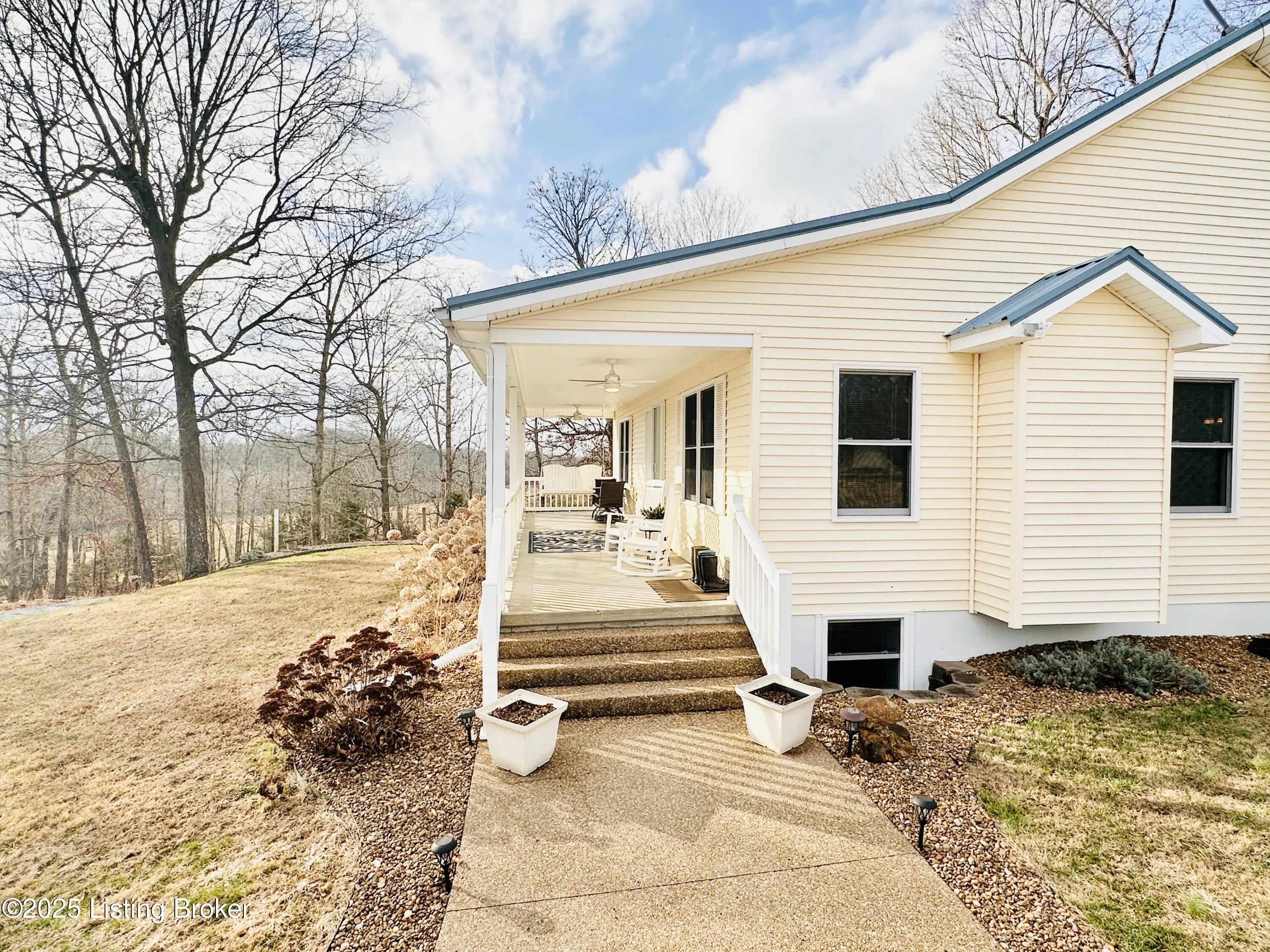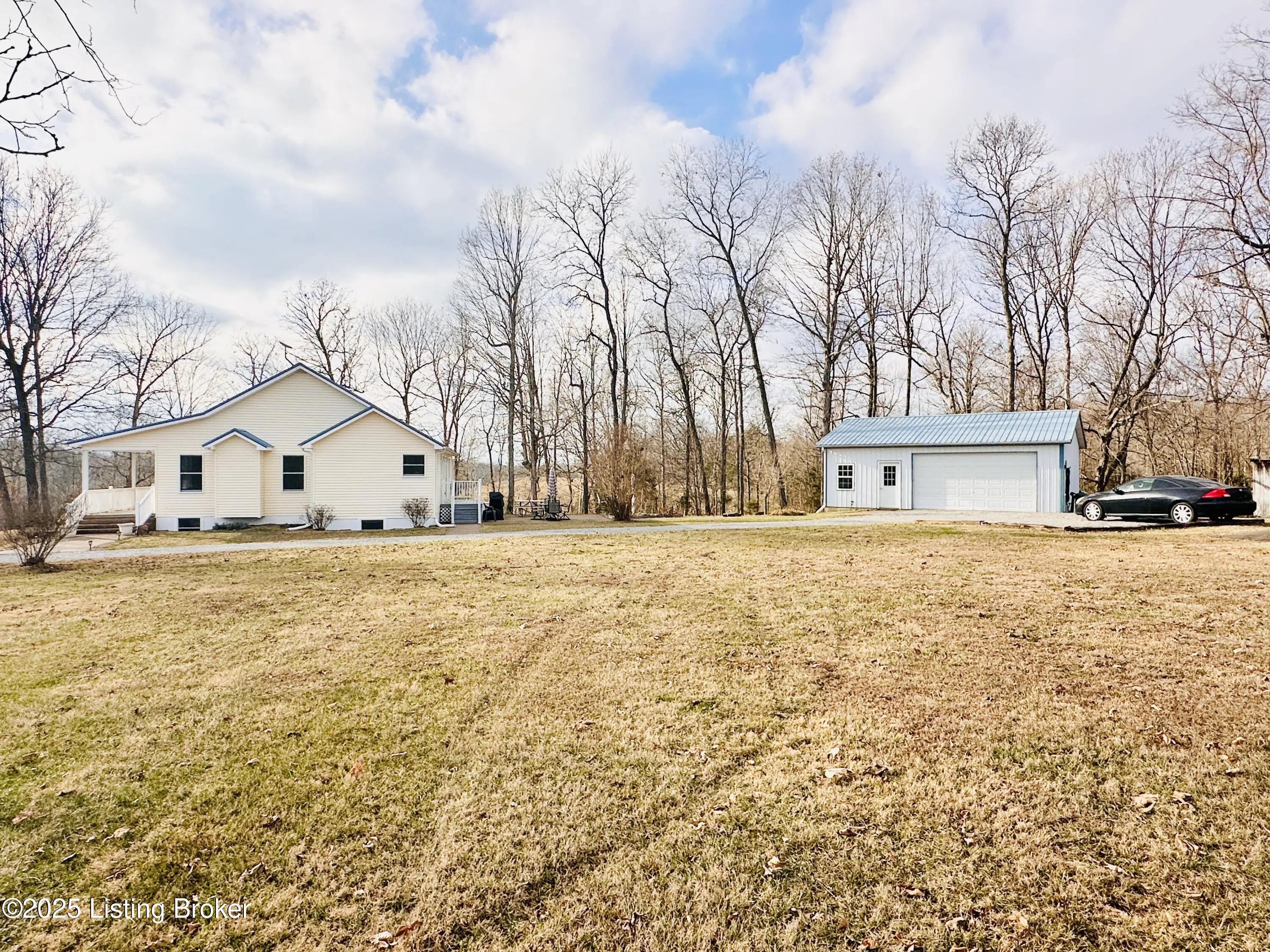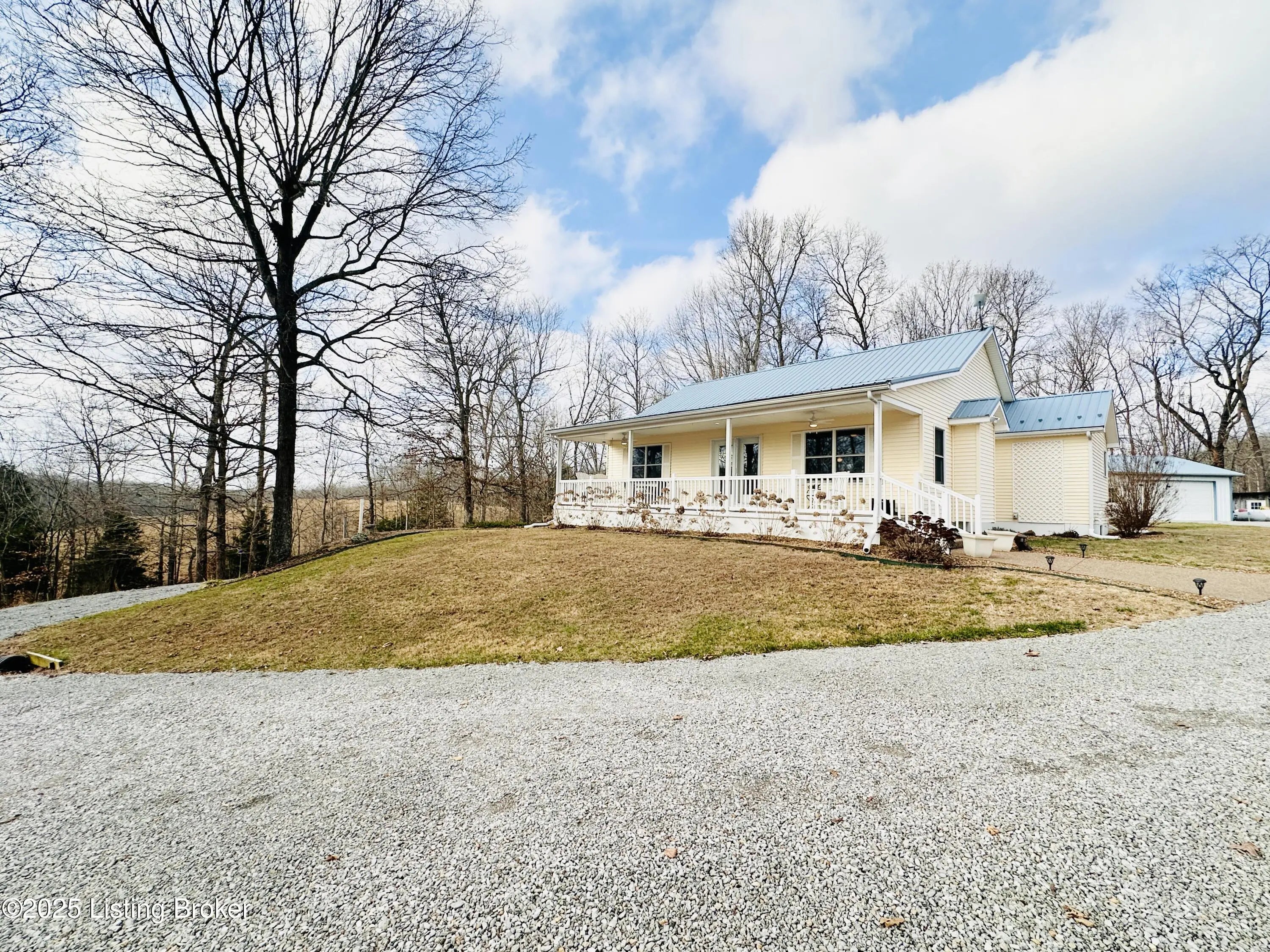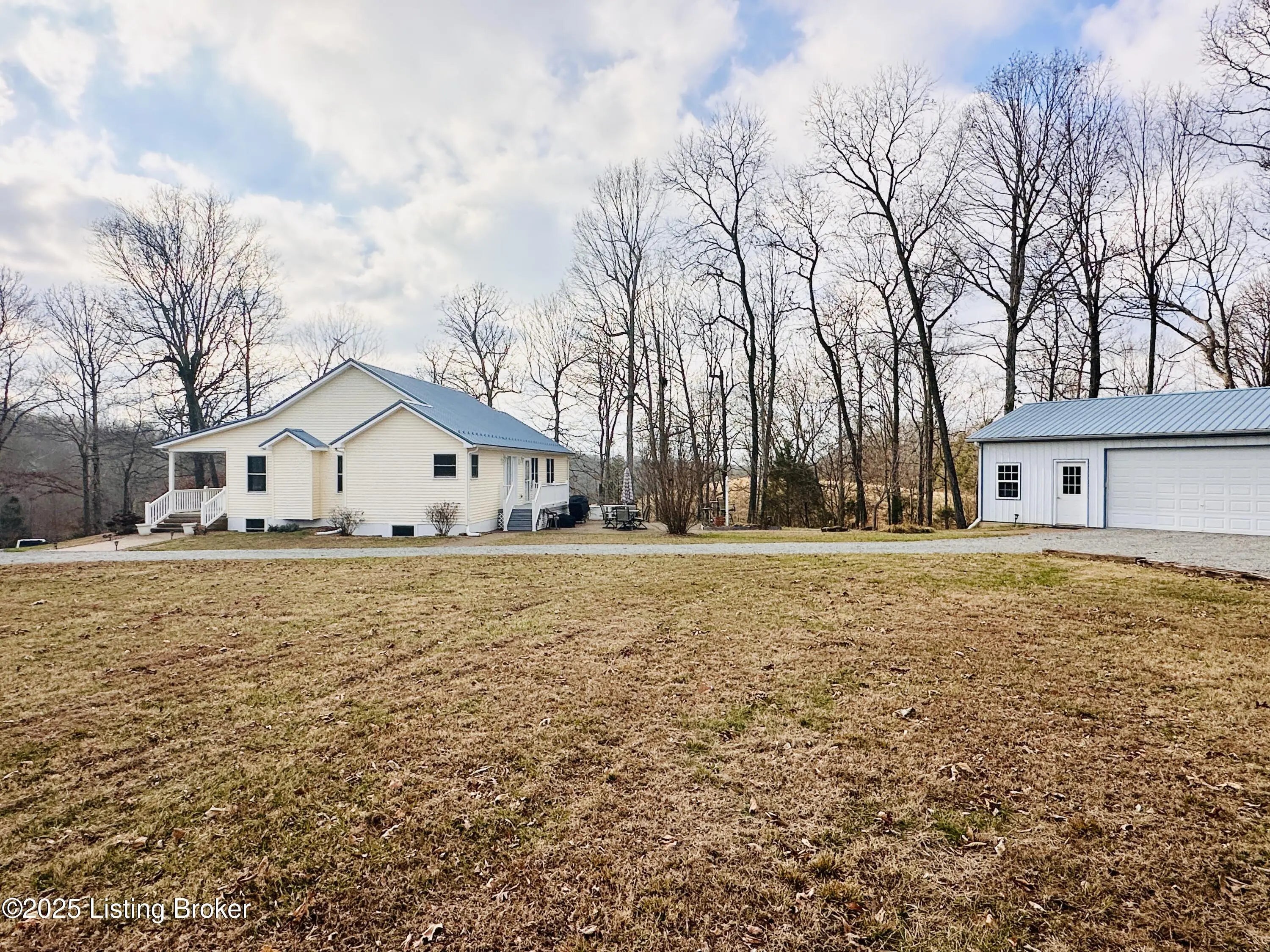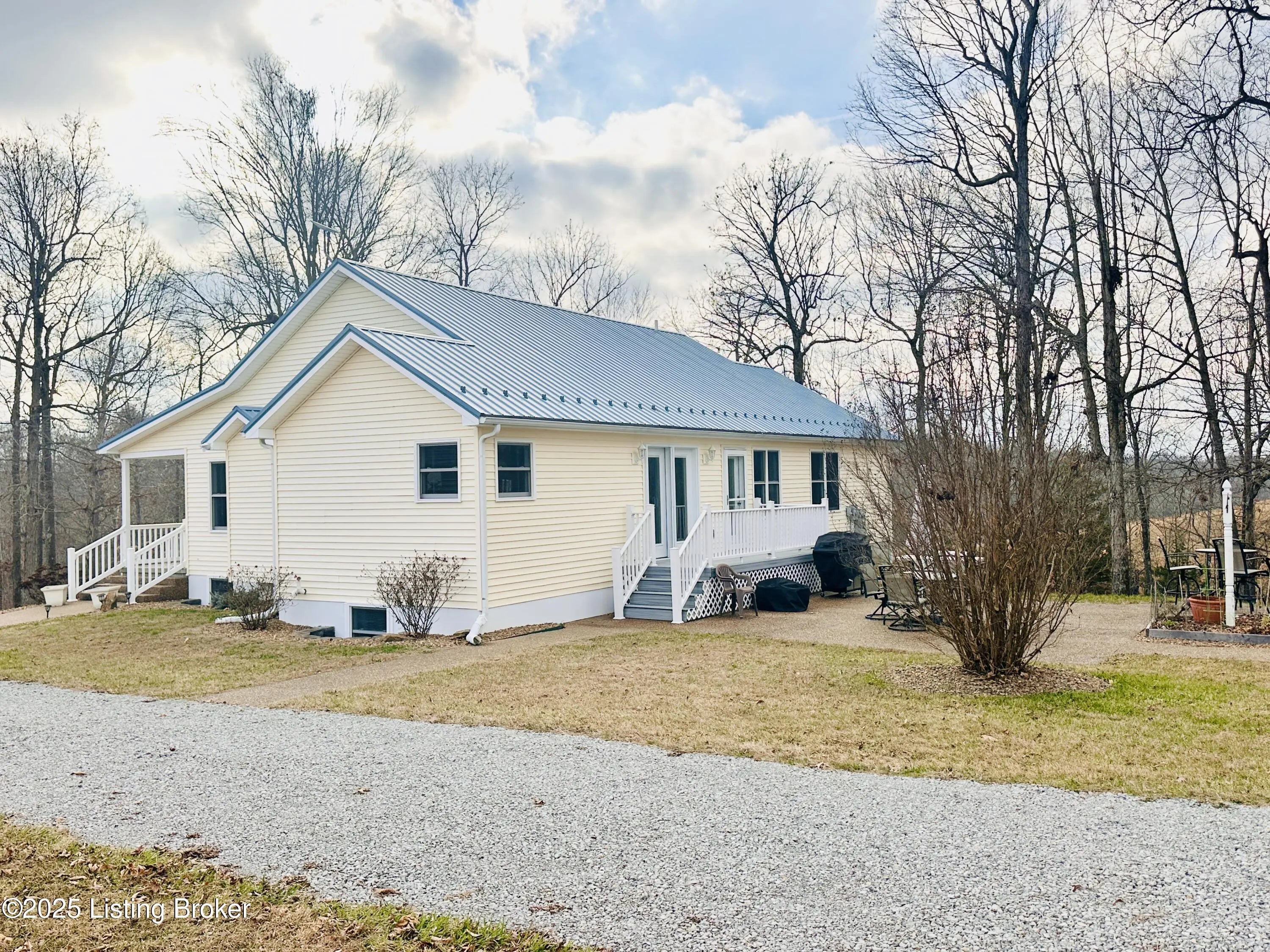 Country Living at Its Best! 6.5 +/- Acres! Welcome to this beautifully maintained home offering space, comfort, and serene countryside views in every direction. With 3,234± total finished square feet, this impressive property features 1,617 sq ft on the main level and a 1,617 sq ft finished walkout basement, providing endless possibilities for living and entertaining. The main floor boasts a spacious living room that flows seamlessly into the large, open kitchen and dining area—an ideal layout for hosting gatherings. French doors lead to a Trex back deck, perfect for enjoying peaceful outdoor moments. The kitchen offers ample space for the chef of the house, while the open-concept design makes entertaining a breeze. A generously sized laundry/mudroom with extra cabinetry and its own entrance to the deck adds everyday convenience. Down the hall, you'll find an oversized primary suite complete with a well-appointed bath featuring dual sinks, a soaking tub, walk-in shower, and abundant storage. The main level also includes a guest bedroom and an additional full bath. The finished walkout basement offers incredible flexibility and would make an excellent mother-in-law suite or separate living quarters. The expansive den area is open and inviting, with plumbing already in place for a kitchen sink with a gas cookstove already installedready for the next owner to complete to their taste. Three additional rooms with closets and windows provide the potential for up to three more bedrooms, along with a third full bath. A large storage area doubles as a storm shelter, adding peace of mind. This home is equipped with a Rinnai tankless water heater, a whole house generac system in case of a power outage and a water softener system, ensuring comfort and efficiency. Step outside the basement French doors to a large patio area and take in the beautiful views surrounding the home. The property itself is truly something to beholdfeaturing expansive flat, manicured grounds, lovely landscaping, and a mix of open and wooded areas. A detached 32' x 26' two-car garage sits just behind the home, along with four additional outbuildings for storage, including a large chicken coop with a 20' x 30' run. A pond is also located on the property (not currently holding water). Perched on a hill, this home offers breathtaking views, privacy, and a sense of peace and seclusion from the moment you pull into the drive. Lovingly cared for and it showsthis is a rare opportunity to enjoy country living without sacrificing space or comfort.