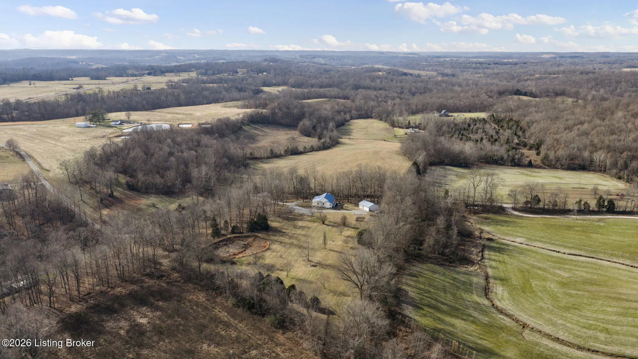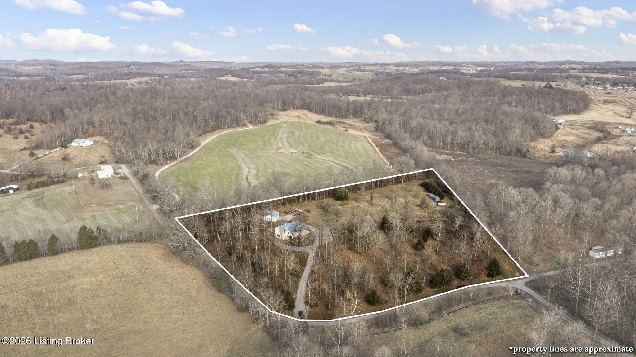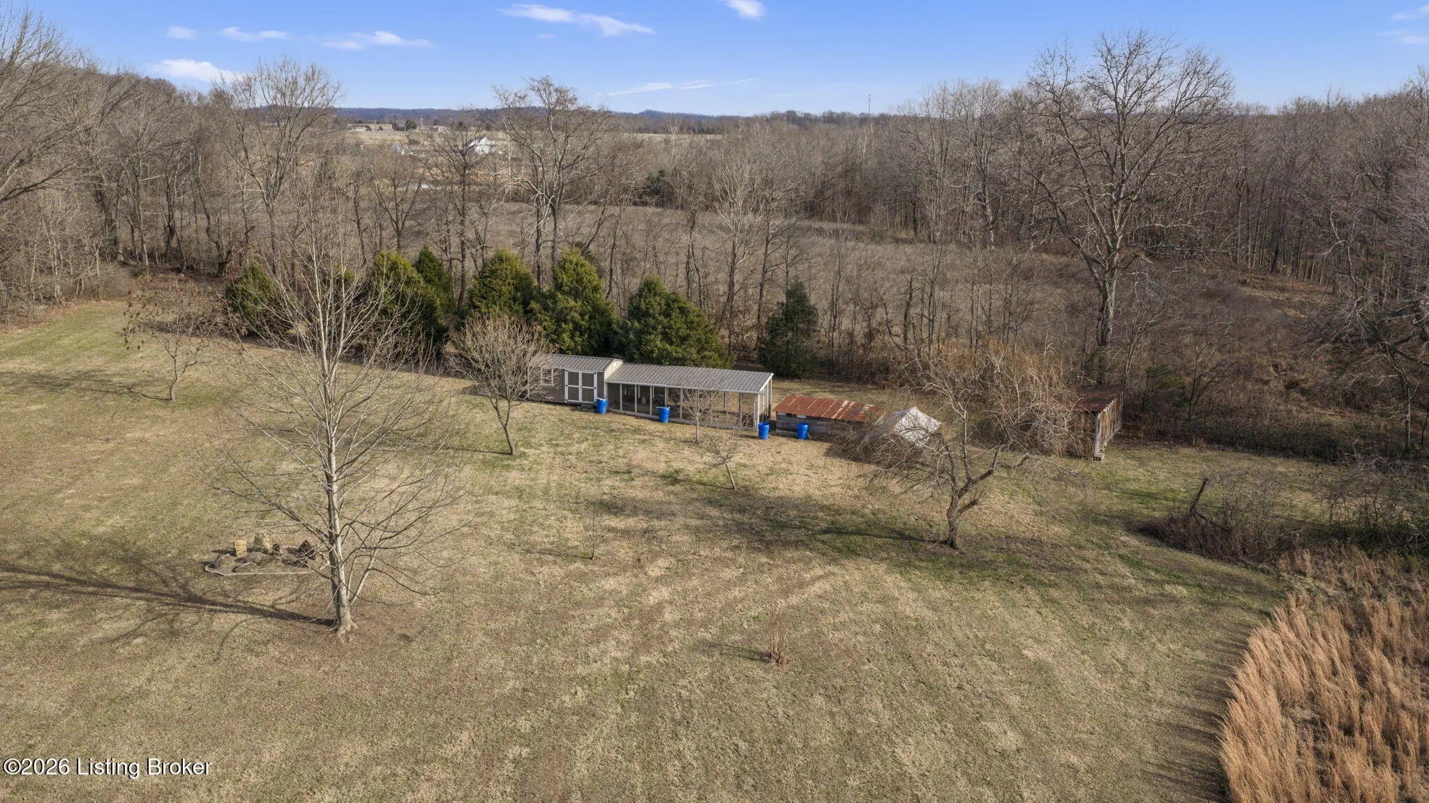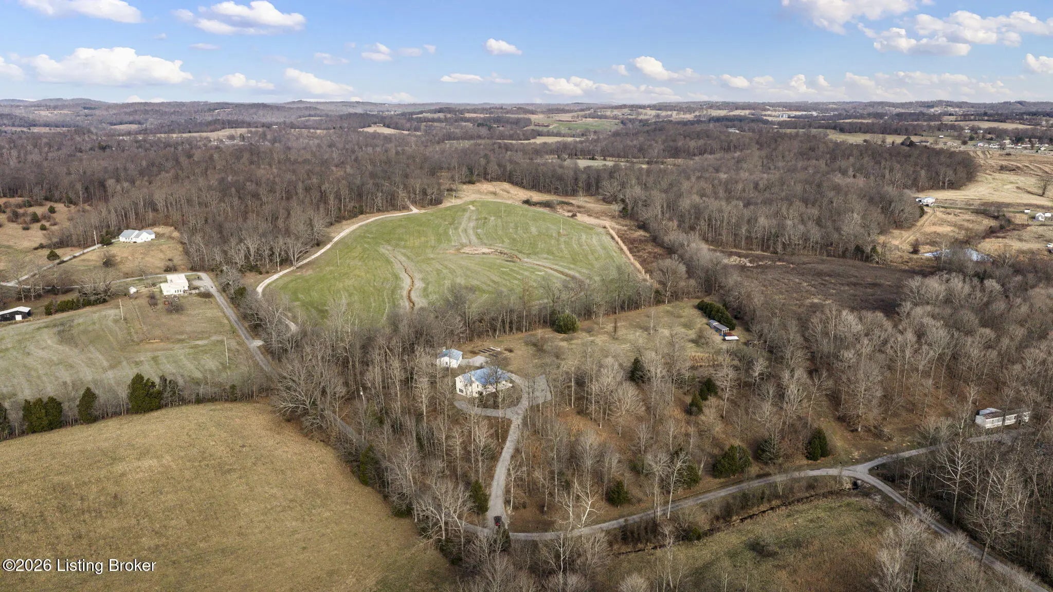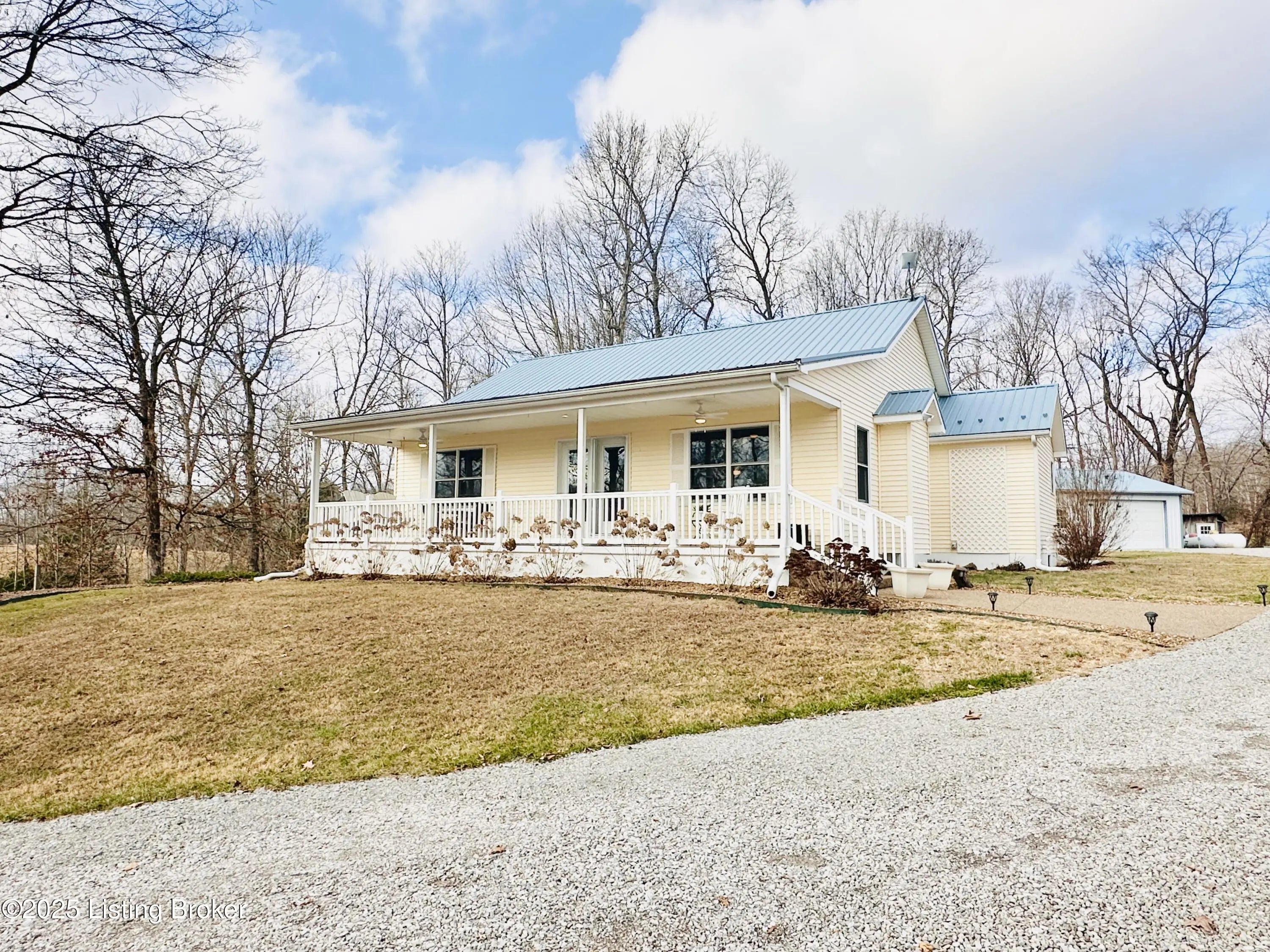 Country Living at Its Best! 6.5 +/- Acres! Welcome to this beautifully maintained home offering space, comfort, and serene countryside views in every direction. With 3,234± total finished square feet, this impressive property features 1,617 sq ft on the main level and a 1,617 sq ft finished walkout basement, providing endless possibilities for living and entertaining. The main floor boasts a spacious living room that flows seamlessly into the large, open kitchen and dining area—an ideal layout for hosting gatherings. French doors lead to a Trex back deck, perfect for enjoying peaceful outdoor moments. The kitchen offers ample space for the chef of the house, while the open-concept design makes entertaining a breeze. A generously sized laundry/mudroom with extra cabinetry and its own entrance to the deck adds everyday convenience. Down the hall, you'll find an oversized primary suite complete with a well-appointed bath featuring dual sinks, a soaking tub, walk-in shower, and abundant storage. The main level also includes a guest bedroom and an additional full bath. The finished walkout basement offers incredible flexibility and would make an excellent mother-in-law suite or separate living quarters. The expansive den area is open and inviting, with plumbing already in place for a kitchen sink with a gas cookstove already installedready for the next owner to complete to their taste. Three additional rooms with closets and windows provide the potential for up to three more bedrooms, along with a third full bath. A large storage area doubles as a storm shelter, adding peace of mind. This home is equipped with a Rinnai tankless water heater, a whole house generac system in case of a power outage and a water softener system, ensuring comfort and efficiency. Step outside the basement French doors to a large patio area and take in the beautiful views surrounding the home. The property itself is truly something to beholdfeaturing expansive flat, manicured grounds, lovely landscaping, and a mix of open and wooded areas. A detached 32' x 26' two-car garage sits just behind the home, along with four additional outbuildings for storage, including a large chicken coop with a 20' x 30' run. A pond is also located on the property (not currently holding water). Perched on a hill, this home offers breathtaking views, privacy, and a sense of peace and seclusion from the moment you pull into the drive. Lovingly cared for and it showsthis is a rare opportunity to enjoy country living without sacrificing space or comfort.
