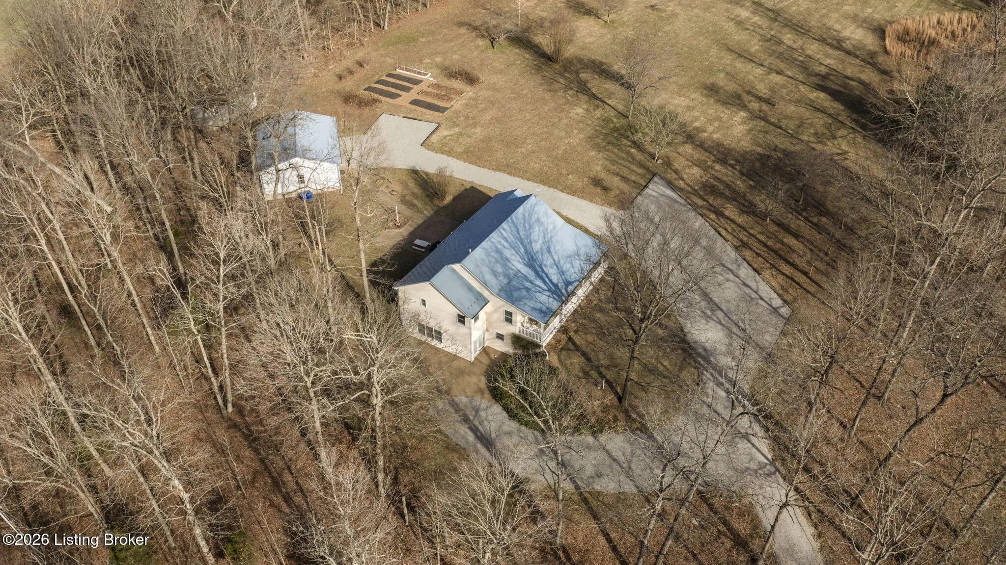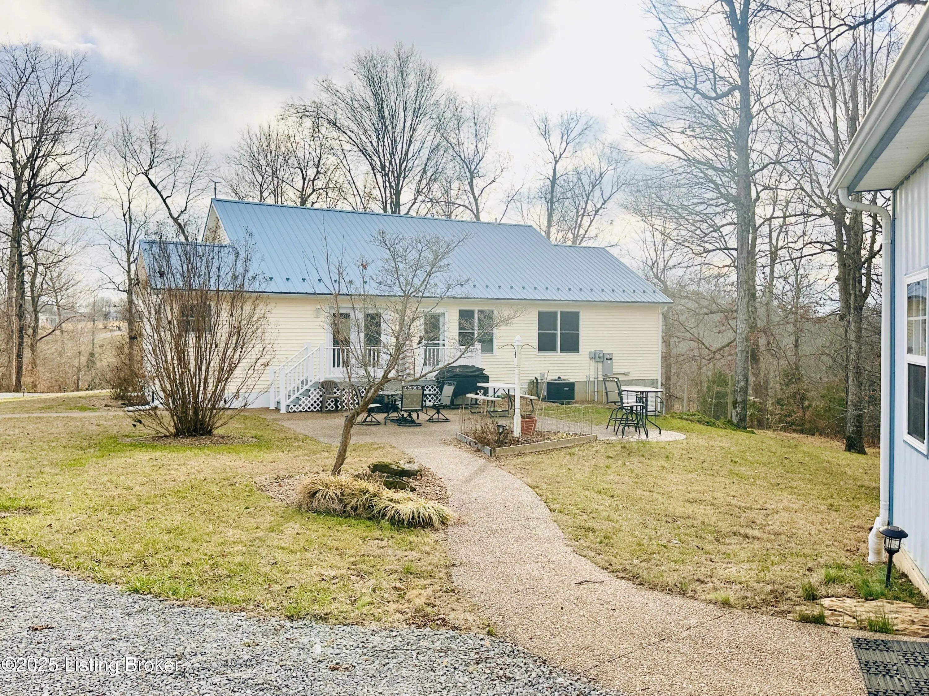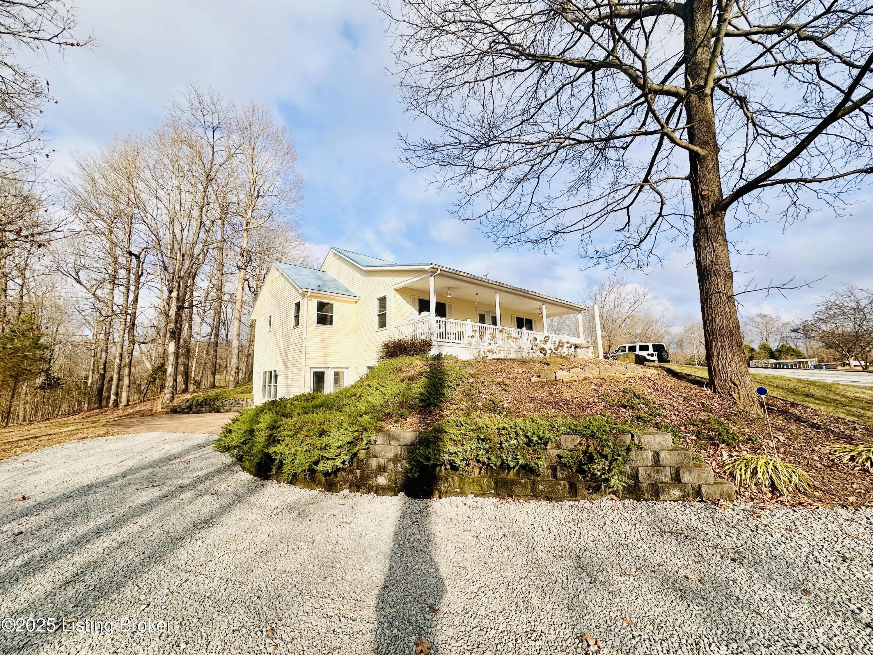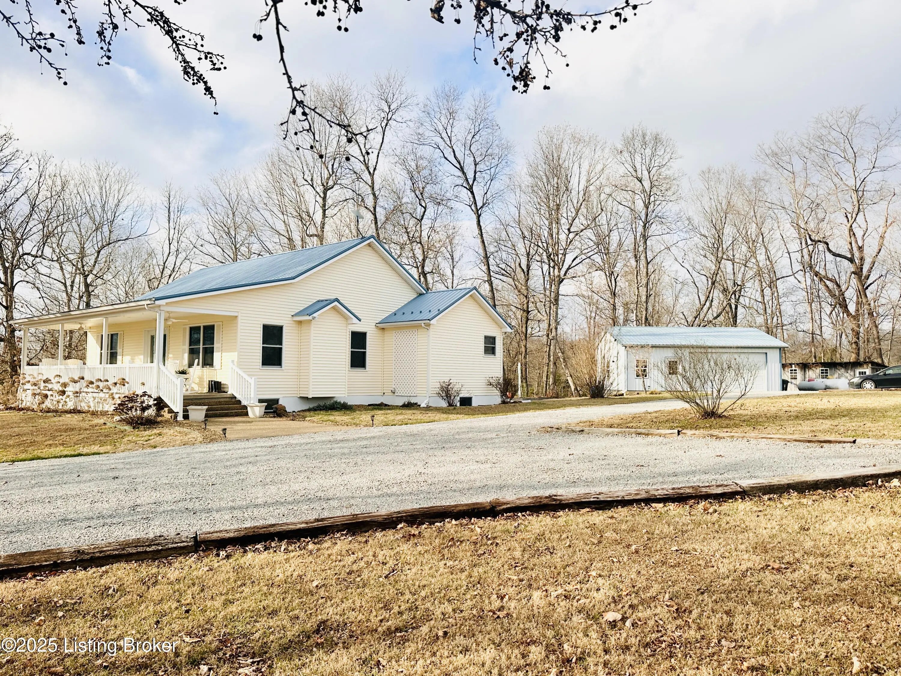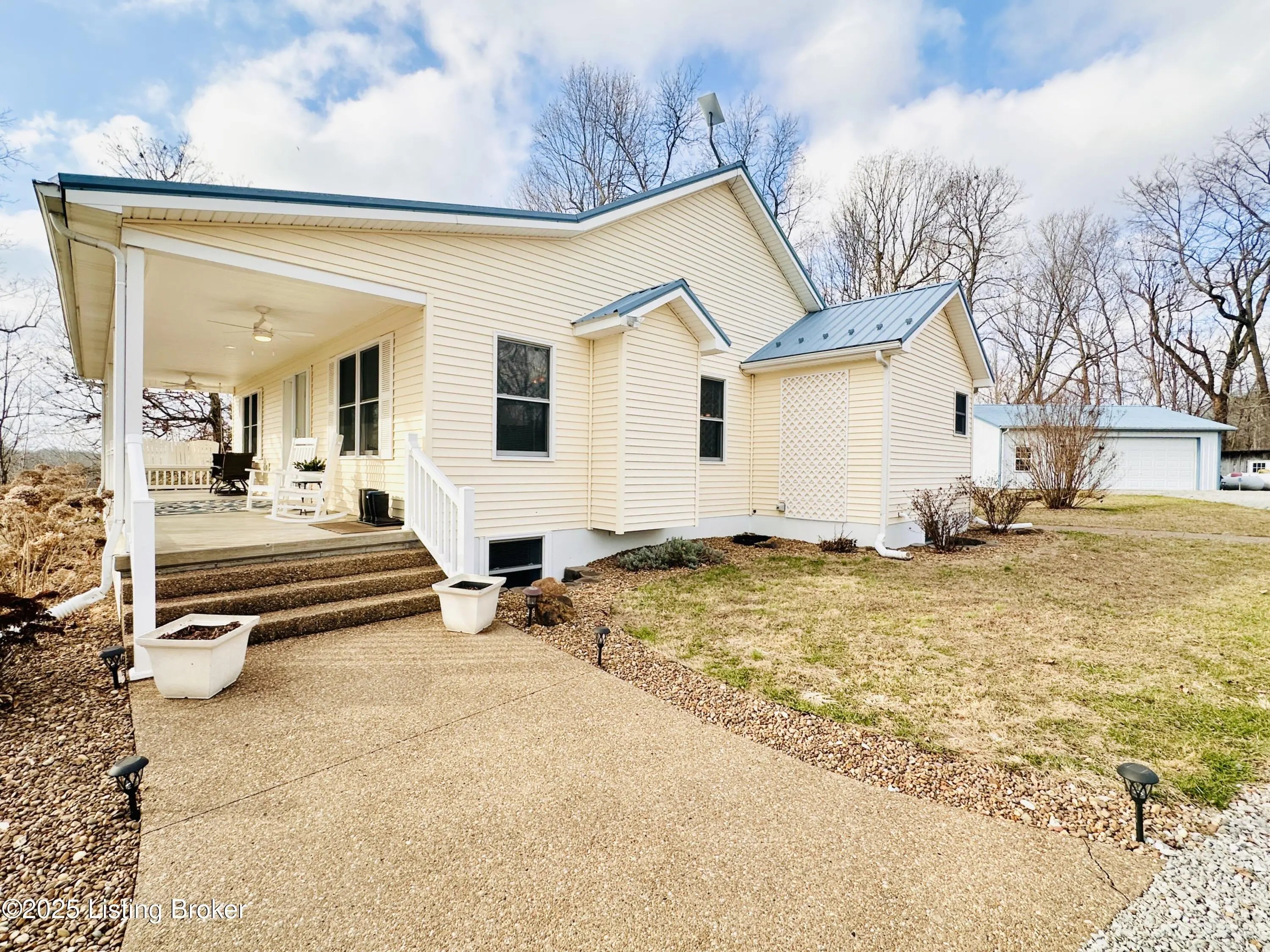 Country Living at Its Best! 6.5 +/- Acres! Welcome to this beautifully maintained home offering space, comfort, and serene countryside views in every direction. With 3,234± total finished square feet, this impressive property features 1,617 sq ft on the main level and a 1,617 sq ft finished walkout basement, providing endless possibilities for living and entertaining. The main floor boasts a spacious living room that flows seamlessly into the large, open kitchen and dining area—an ideal layout for hosting gatherings. French doors lead to a Trex back deck, perfect for enjoying peaceful outdoor moments. The kitchen offers ample space for the chef of the house, while the open-concept design makes entertaining a breeze. A generously sized laundry/mudroom with extra cabinetry and its own entrance to the deck adds everyday convenience. Down the hall, you'll find an oversized primary suite complete with a well-appointed bath featuring dual sinks, a soaking tub, walk-in shower, and abundant storage. The main level also includes a guest bedroom and an additional full bath. The finished walkout basement offers incredible flexibility and would make an excellent mother-in-law suite or separate living quarters. The expansive den area is open and inviting, with plumbing already in place for a kitchen sink with a gas cookstove already installedready for the next owner to complete to their taste. Three additional rooms with closets and windows provide the potential for up to three more bedrooms, along with a third full bath. A large storage area doubles as a storm shelter, adding peace of mind. This home is equipped with a Rinnai tankless water heater, a whole house generac system in case of a power outage and a water softener system, ensuring comfort and efficiency. Step outside the basement French doors to a large patio area and take in the beautiful views surrounding the home. The property itself is truly something to beholdfeaturing expansive flat, manicured grounds, lovely landscaping, and a mix of open and wooded areas. A detached 32' x 26' two-car garage sits just behind the home, along with four additional outbuildings for storage, including a large chicken coop with a 20' x 30' run. A pond is also located on the property (not currently holding water). Perched on a hill, this home offers breathtaking views, privacy, and a sense of peace and seclusion from the moment you pull into the drive. Lovingly cared for and it showsthis is a rare opportunity to enjoy country living without sacrificing space or comfort.