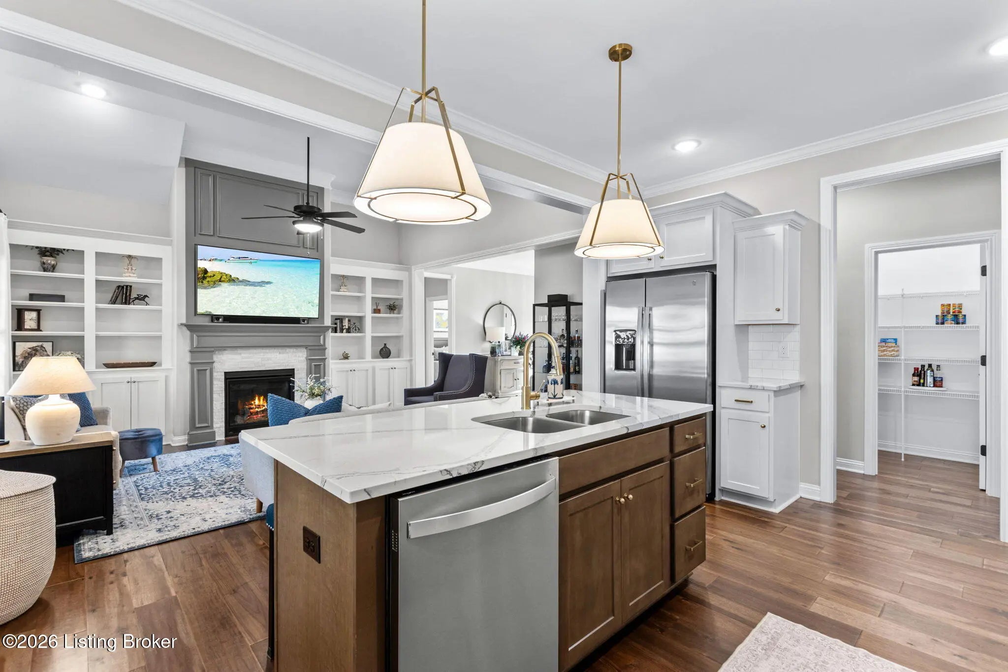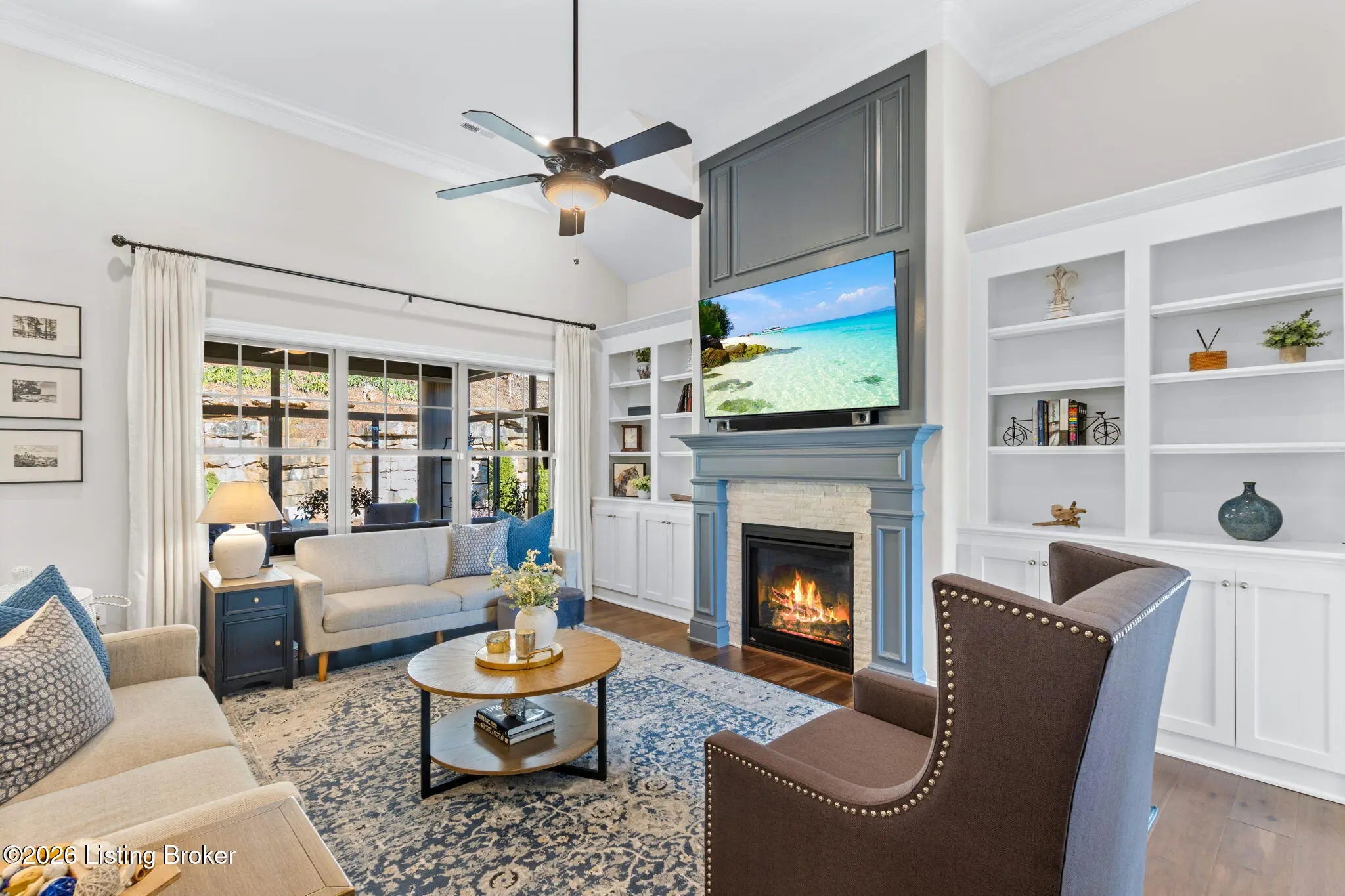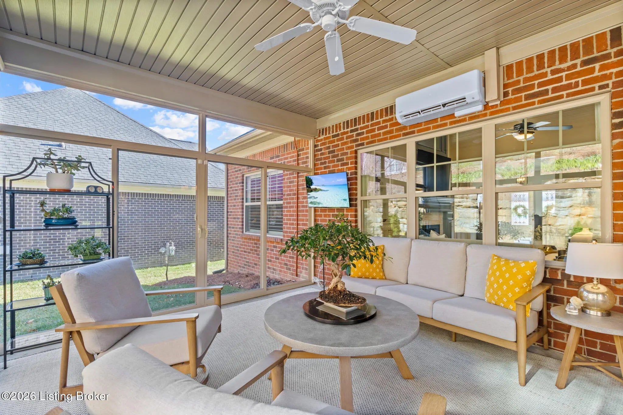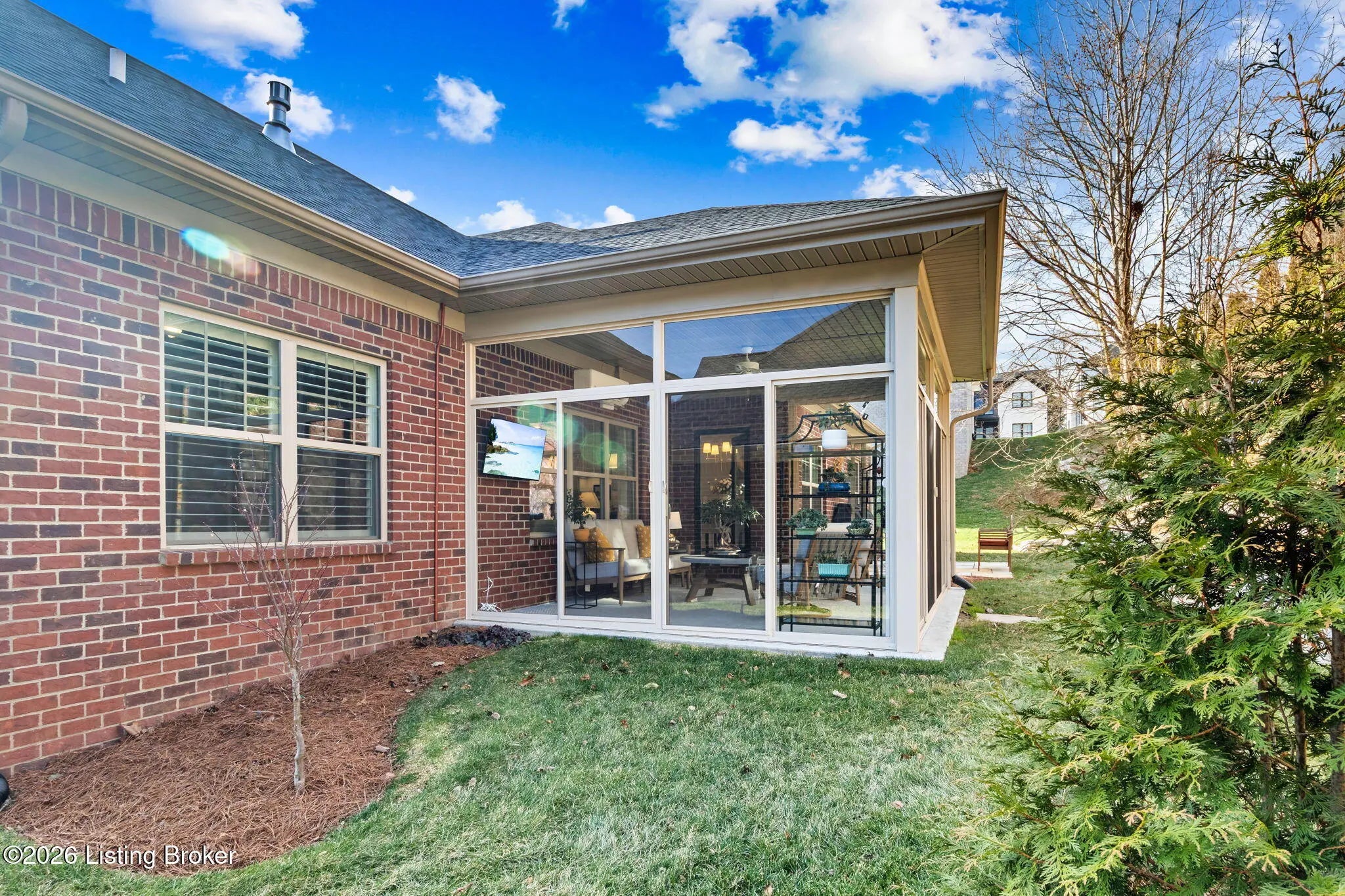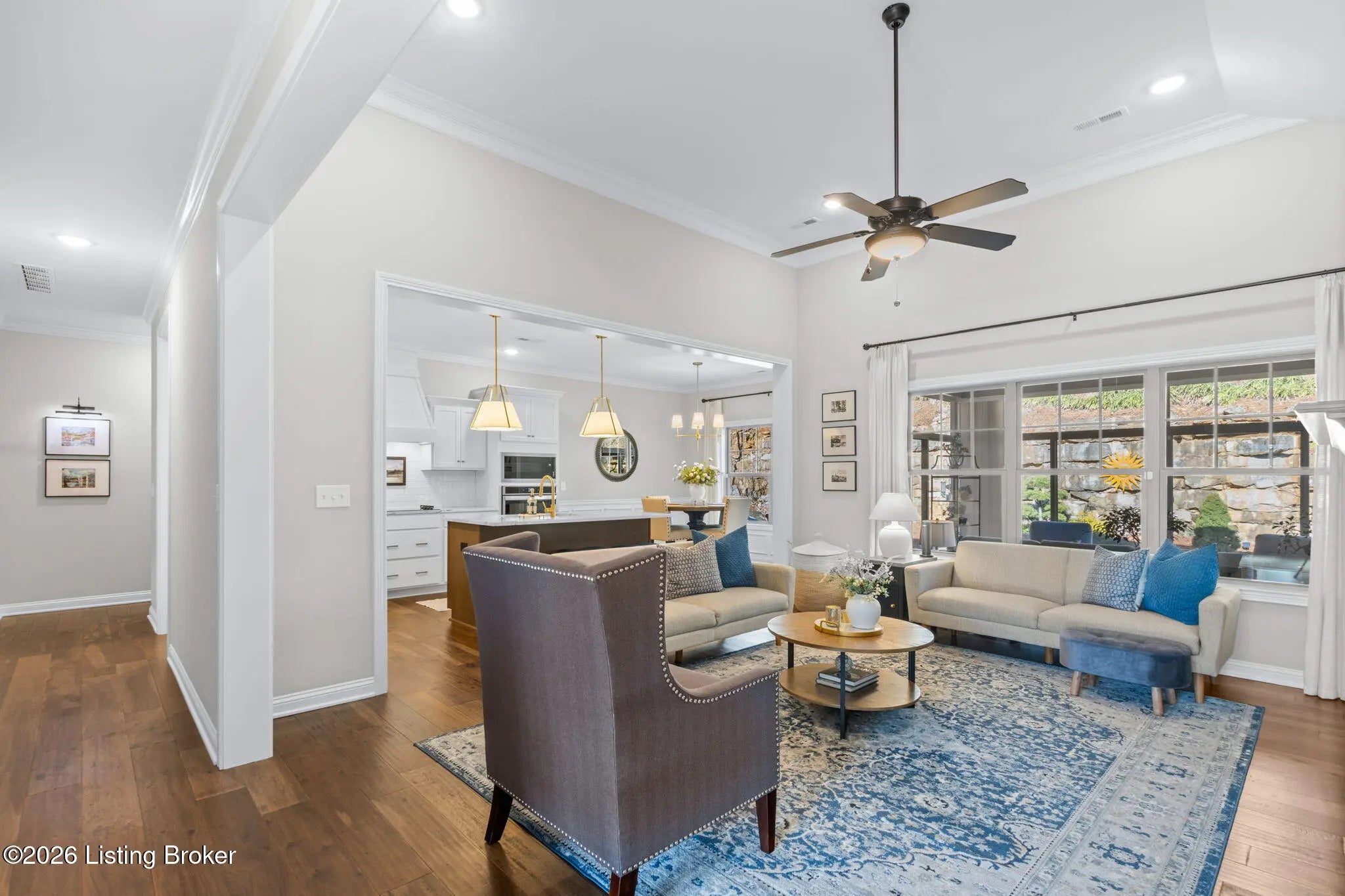 Tucked away on a quiet cul-de-sac in the highly sought-after Sanctuary Bluff subdivision off US-42 just seconds from Prospect, this exceptional one-story ranch offers the perfect blend of luxury, comfort, and low-maintenance living. With over 2,100 square feet of beautifully designed space, this like-new home features three spacious bedrooms, two full bathrooms, and a private office, all thoughtfully laid out in an open and inviting floor plan ideal for both everyday living and entertaining. The heart of the home is the stunning great room, highlighted by a switch to light gas fireplace with a custom feature wall, upgraded trim package, abundant recessed lighting, and immaculate prefinished hardwood floors throughout. The gourmet kitchen is a showstopper, featuring Cambria quartz countertops in the kitchen, bathrooms, and laundry room, Aristokraft soft-close cabinetry and drawers, stainless steel appliances including a GE counter-depth refrigerator, an over the oven hood, subway tile backsplash, and an impressive walk-in pantry. Just off the main living area, the fully enclosed sunroom offers year-round enjoyment and is equipped with a Bryant mini-split system. The primary suite is a true retreat, complete with a feature wall, lighted tray ceiling, and a spa-like primary bathroom showcasing all-tile finishes, a freestanding soaking tub, tiled walk-in shower, dual vanity sinks, elegant quartz countertops and large walk in closet. A generously sized laundry room offers added cabinetry and quartz counters, while the office features beautiful 15-light French doors, perfect for working from home. Additional highlights include plantation shutters throughout, tilt-in double-hung windows, upgraded lighting and ceiling fans in the bedrooms, great room, and sunroom, and a fully insulated three-car garage including doors and attic. The exterior is equally impressive with a covered front porch, irrigation system, professionally landscaped front and backyard, added stone skirt along the front of the home, and a flagstone patio with a rock wall feature that provides both privacy and a touch of elegance, ideal for outdoor entertaining. The HOA handles all front and side landscaping and yard maintenance, offering truly carefree living. Immaculately maintained and practically brand new, this open-concept home is a rare opportunity in one of the areas most desirable communities. A must-see, move-in-ready property that delivers luxury, convenience, and exceptional attention to detail throughout.