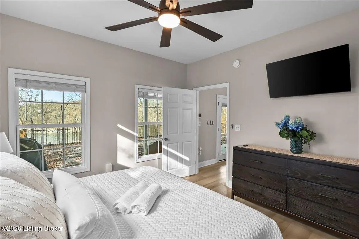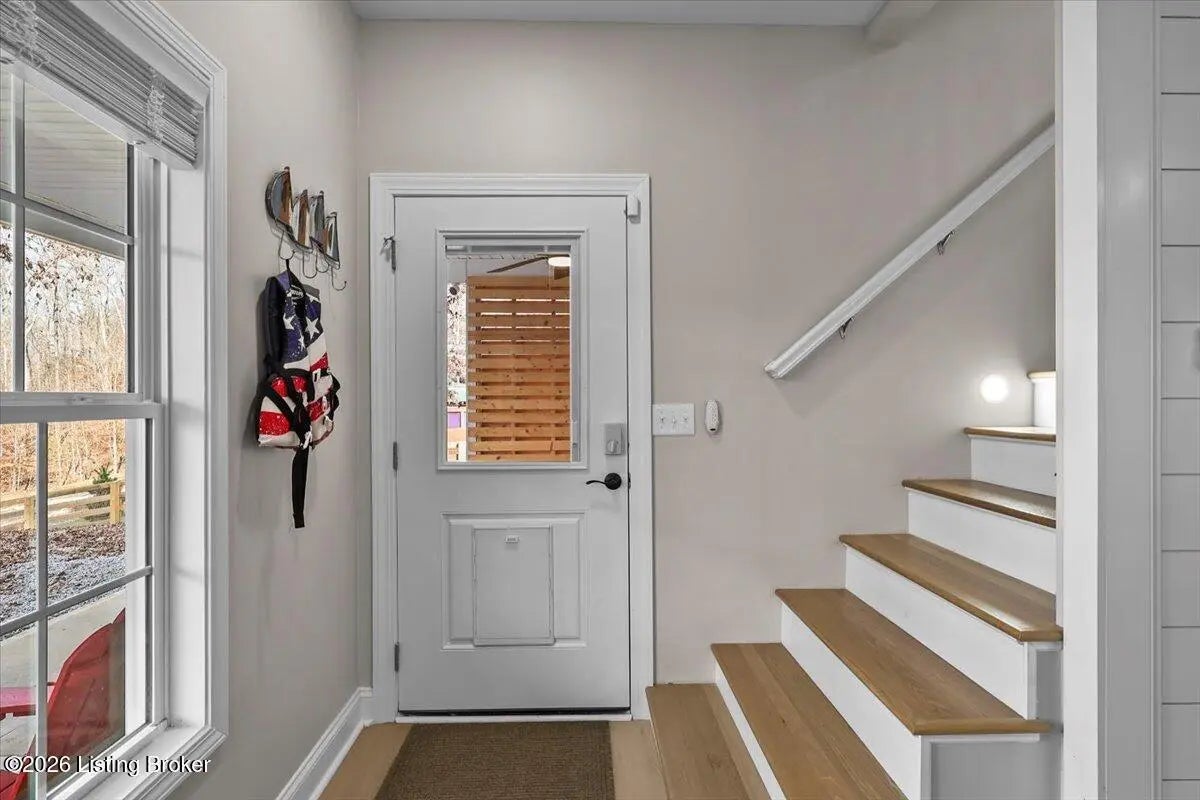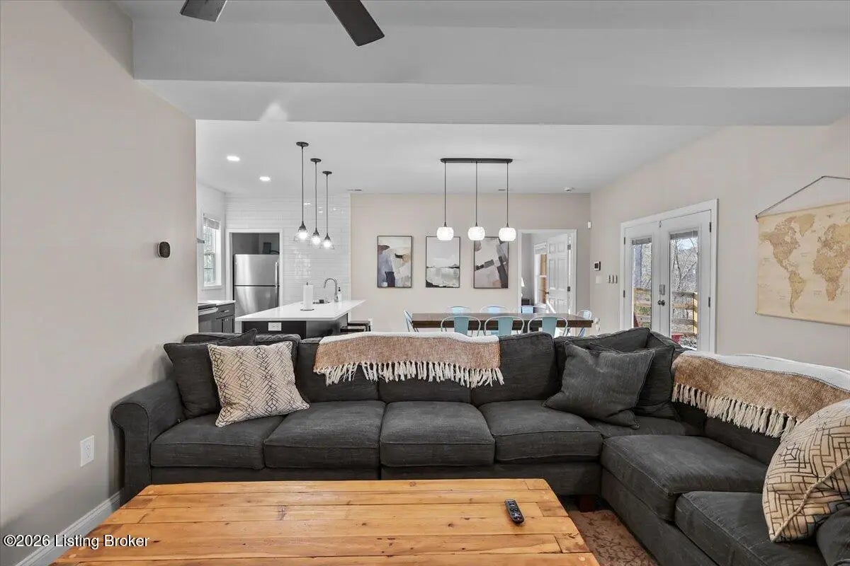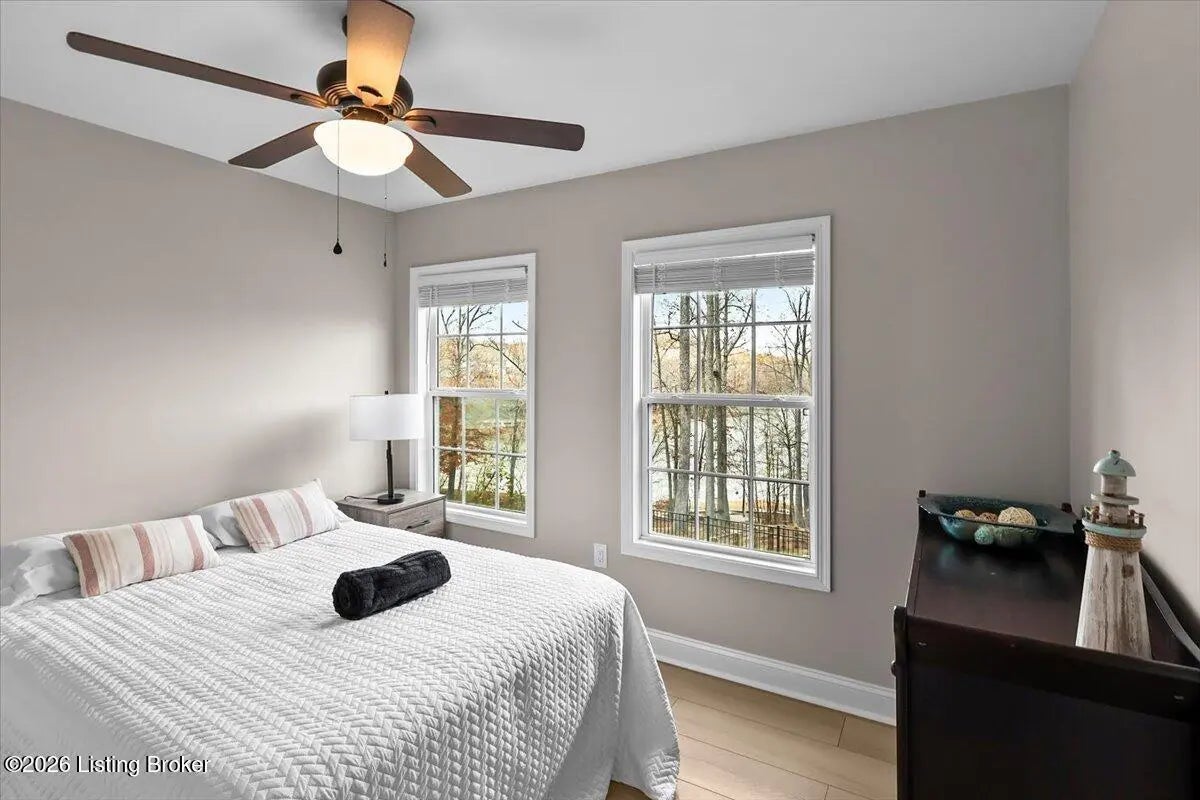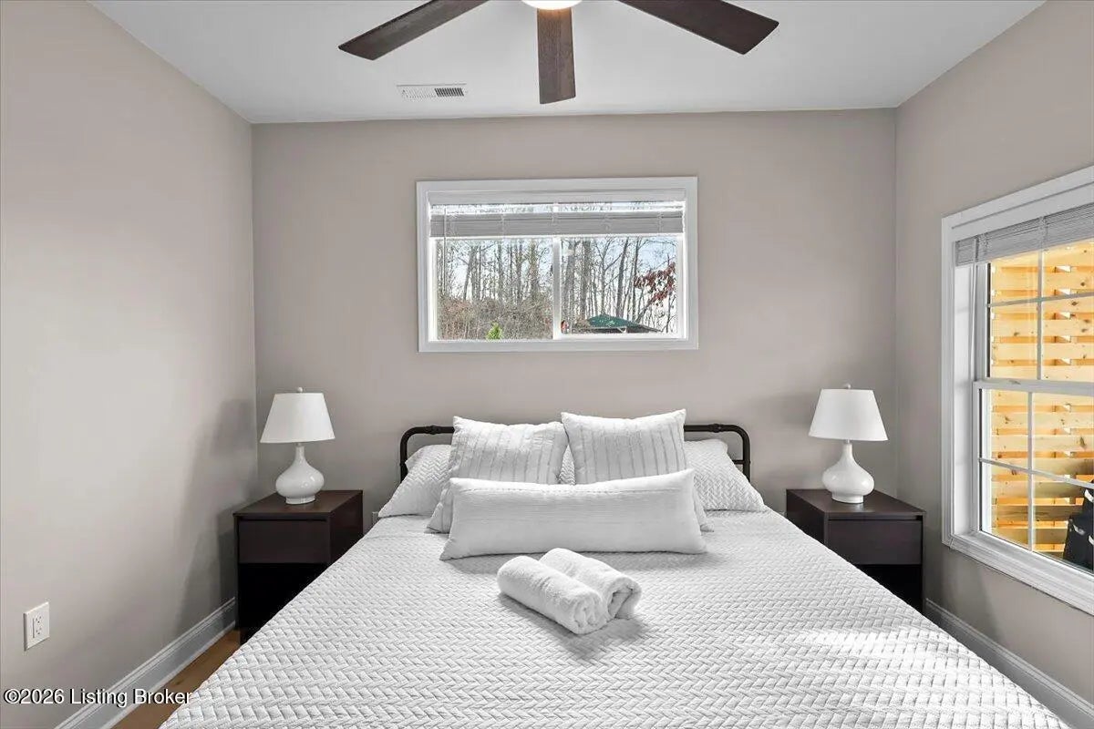 True Waterfront Living on Nolin Lake! This rare double lakefront lot offers direct water access and breathtaking lake views, making it an exceptional find. This 4-bedroom, 2.5-bath home is designed for effortless lake living. The main level features an open-concept living and kitchen area with major appliances, plus a private primary suite with its own bath. Upstairs includes three additional bedrooms, a full bathroom, and a second living area with a desk—perfect for hosting guests or remote work. Outdoors, enjoy a fenced backyard, a relaxing fire pit area, and your own private dock just steps from the home (dock transfer available with COE approval). Wake up to the water, spend your days on the lake, and unwind by the fire. This is Nolin Lake at its best.