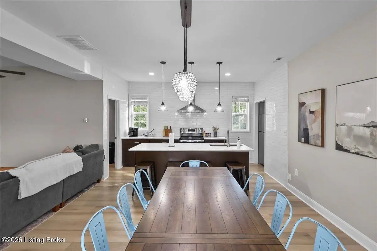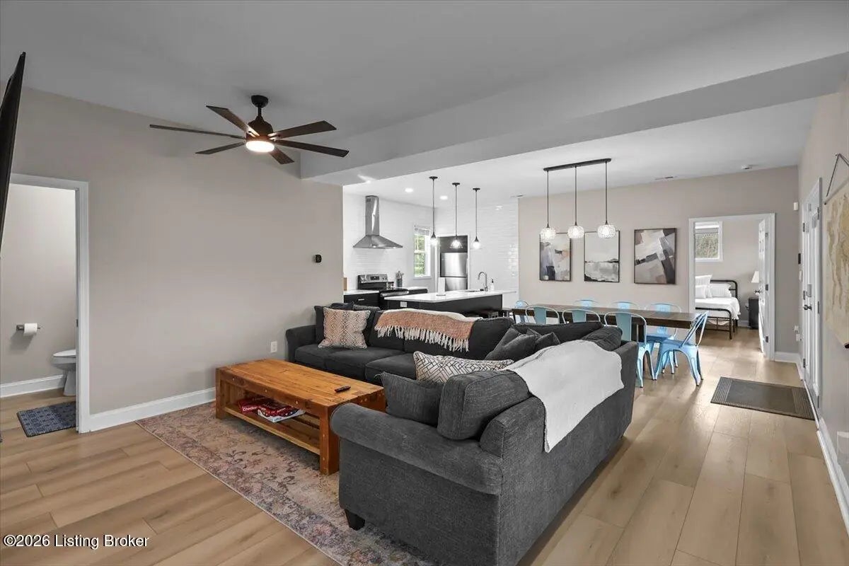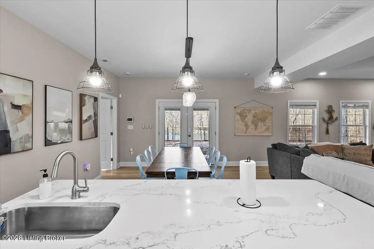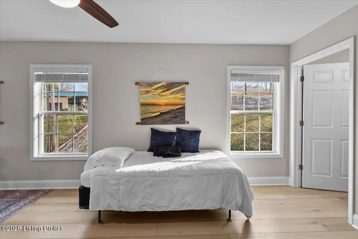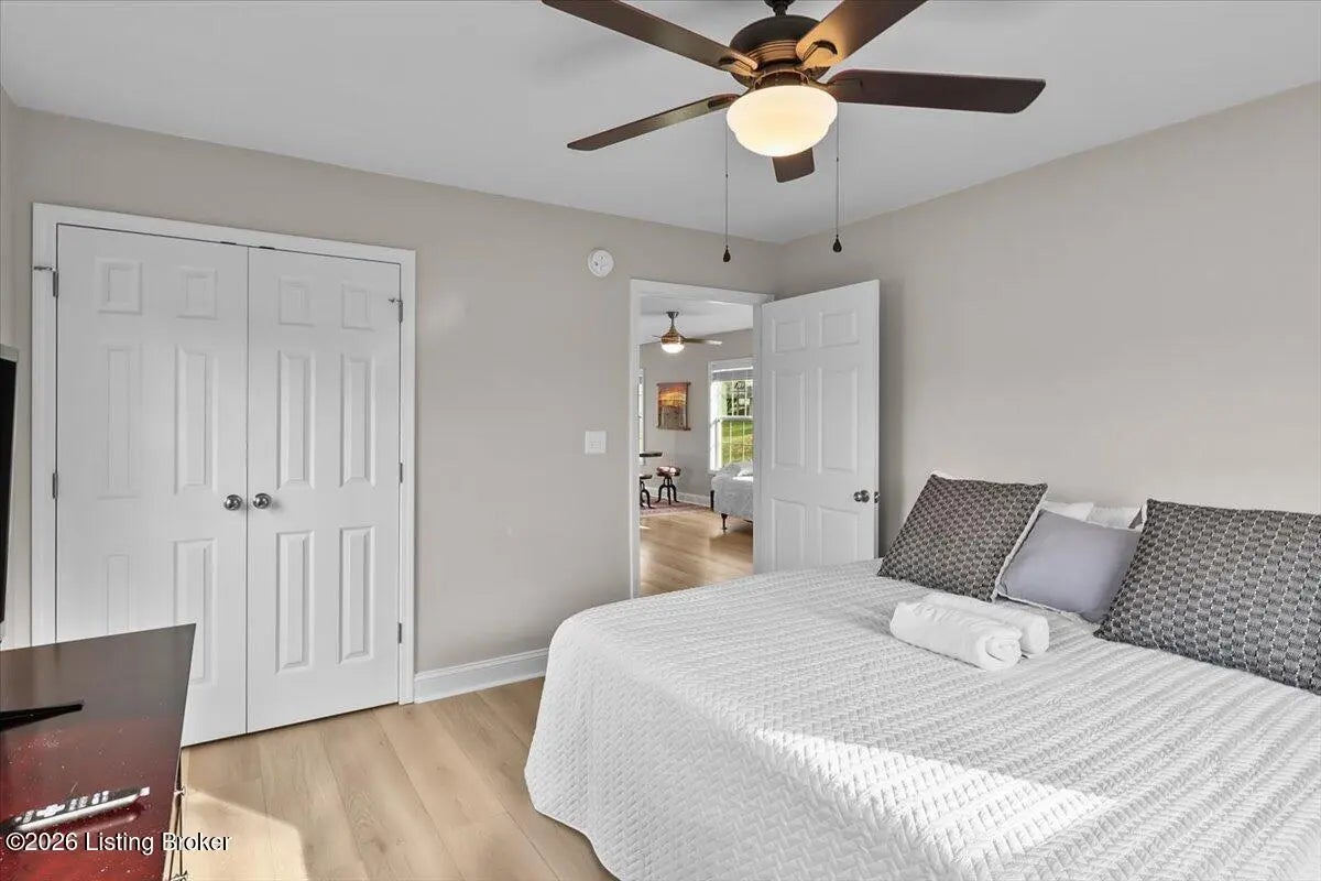 True Waterfront Living on Nolin Lake! This rare double lakefront lot offers direct water access and breathtaking lake views, making it an exceptional find. This 4-bedroom, 2.5-bath home is designed for effortless lake living. The main level features an open-concept living and kitchen area with major appliances, plus a private primary suite with its own bath. Upstairs includes three additional bedrooms, a full bathroom, and a second living area with a desk—perfect for hosting guests or remote work. Outdoors, enjoy a fenced backyard, a relaxing fire pit area, and your own private dock just steps from the home (dock transfer available with COE approval). Wake up to the water, spend your days on the lake, and unwind by the fire. This is Nolin Lake at its best.