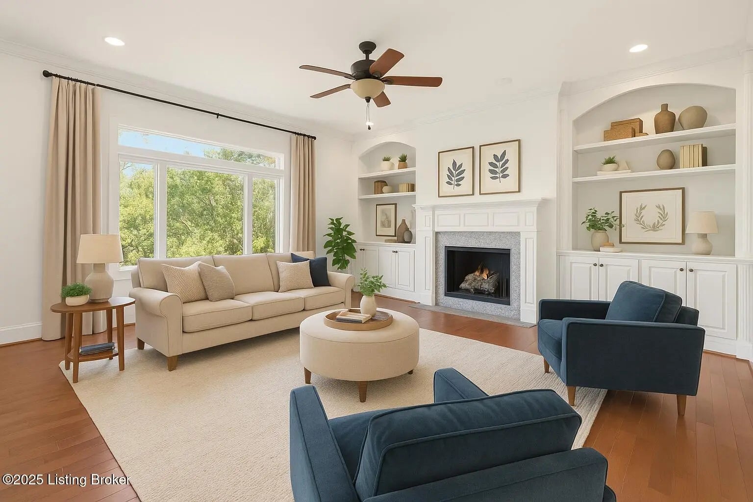Welcome to this stunning ranch-style home in the highly sought-after, maintenance-free Sanctuary Bluff community. Offering over 5,600 square feet of thoughtfully designed living space, this 5-bedroom, 3.5-bath residence blends refined elegance with everyday comfort. The light-filled, open-concept main level features fresh paint, refinished trim, custom accent walls, and new hardwood flooring in the primary suite, creating a warm and inviting atmosphere. The chef's kitchen is a true centerpiece, showcasing GE Profile appliances, an expansive center island, and an adjoining hearth room with a cozy fireplace and access to the covered deck—perfect for entertaining or unwinding at the end of the day. The primary suite serves as a private retreat with a tray ceiling, spa-like bath, and oversized walk-in closet. The walk-out basement, completed in 2021, expands the living space with a generous family room, home gym, bar with kitchenette, and oversized guest accommodations. Outdoor living shines with a private patio featuring a hot tub and fire pit, ideal for year-round relaxation. Additional highlights include a new HVAC system (2023), tankless water heater, epoxy-coated garage floor, irrigation system, Anderson windows, and a generator hookup for added peace of mind. With luxury updates throughout and low-maintenance living at its best, this move-in-ready home is perfectly designed for both entertaining and everyday living.