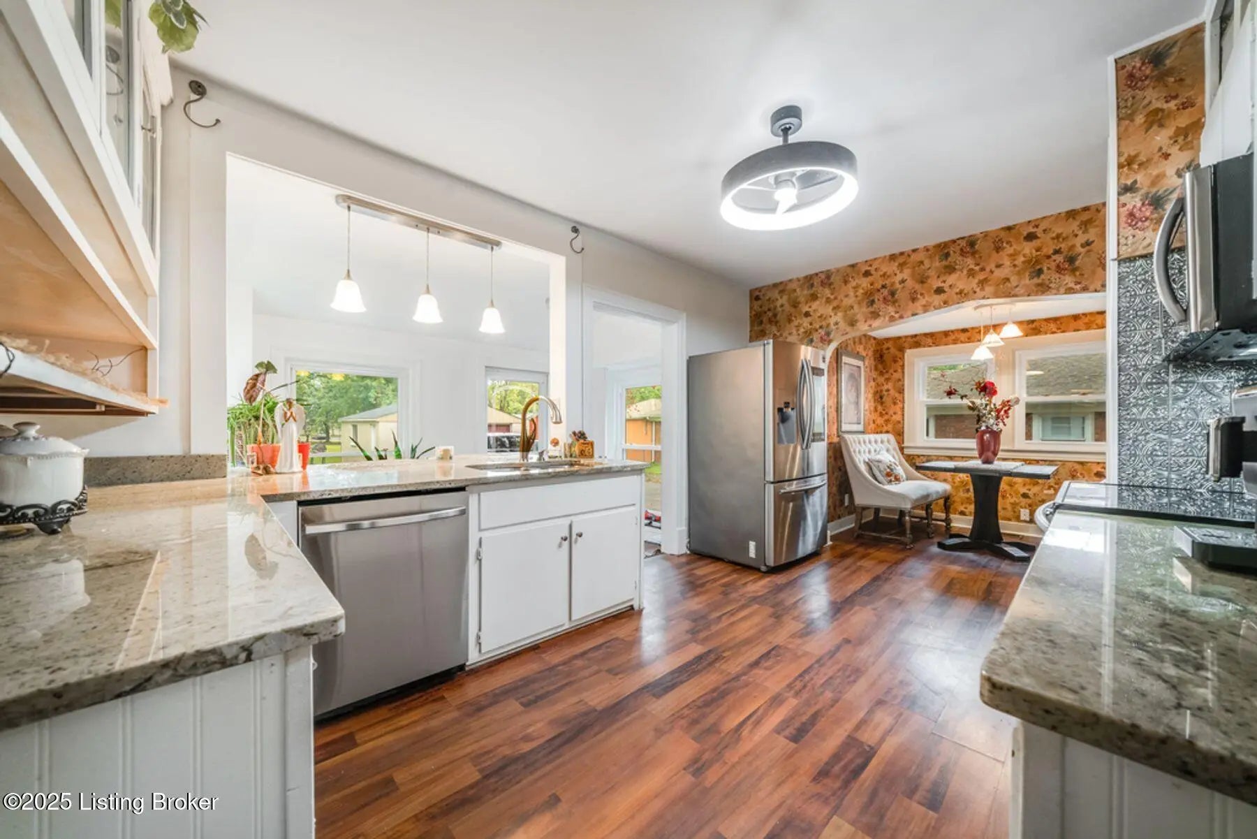 A Rare Gem You Won't Want to Miss! This beautifully updated home blends timeless charm with modern upgrades and sits on over half an acre, offering incredible space, style, and privacy. Thoughtfully renovated throughout, it features new windows, flooring, paint, kitchen, bathrooms, appliances, plumbing, a tankless water heater, and a new driveway, plus a detached two-car garage. Inside, a bright mudroom leads into a stunning kitchen with stainless steel appliances, updated countertops, and a cozy breakfast nook. The grand living room, once host to a wedding, boasts tall ceilings and a charming fireplace, while the adjoining sunroom offers flexibility as an office, playroom, or guest space. The main level includes a bedroom and half bath, and upstairs you'll find three spacious bedrooms, a spa-like full bath, and laundry for added convenience. The walkout basement features a bedroom, full bath, wet bar, and large entertainment space, ideal for a guest suite or income opportunity. Outside, relax under the gazebo surrounded by lush landscaping and enjoy the peace and serenity of this private oasis. This home is truly one of a kind, schedule your showing before it's gone!