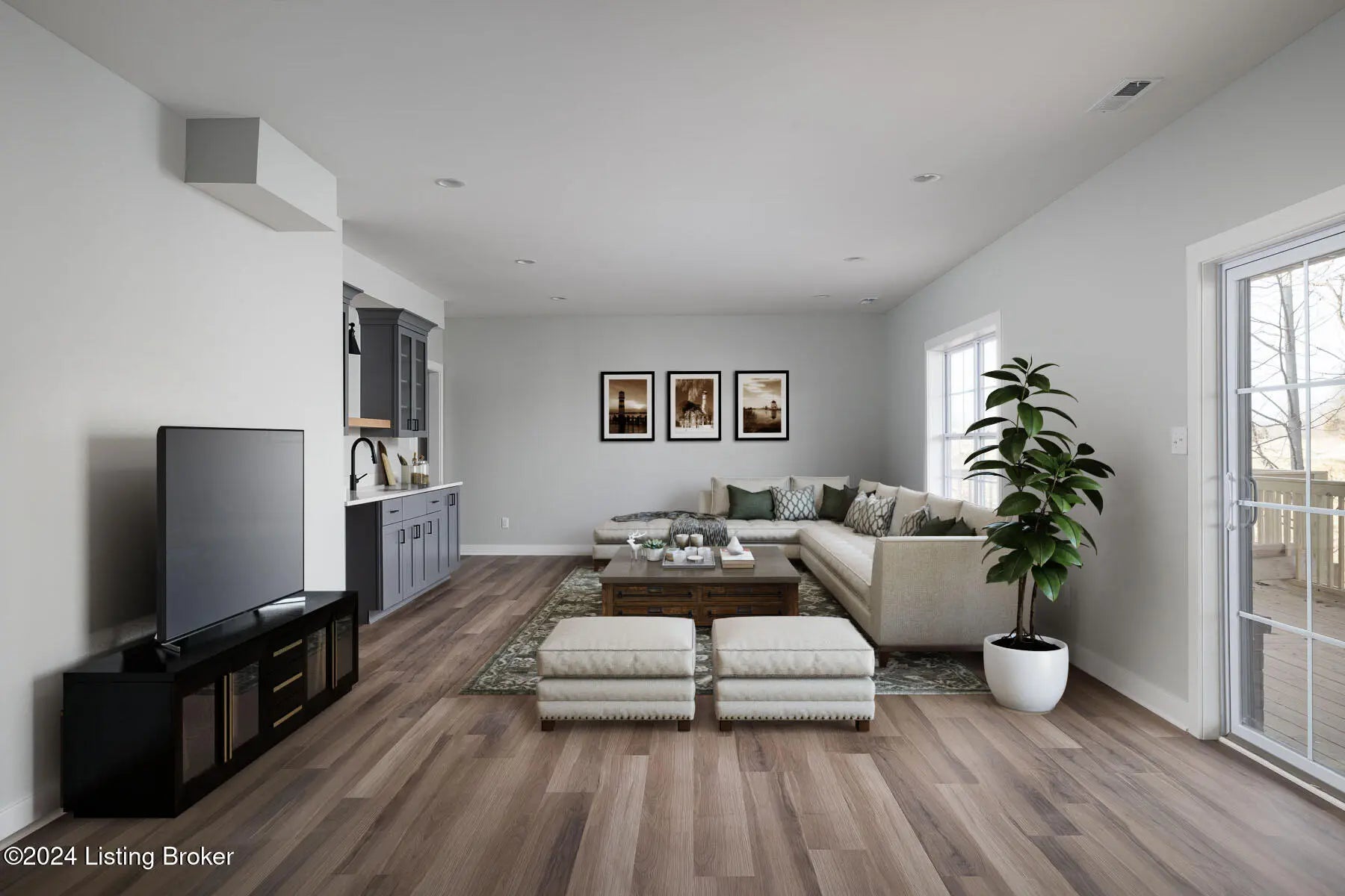 Stunning, MOVE-IN READY, modern farmhouse in Brentwood backing up to 17 acres of private, wooded green space! Beautiful selections! The partial wrap around deck is perfect for relaxing and entertaining! Inside, the open, spacious common area is ideal for entertaining. The living room, kitchen and Primary Bedroom have a large vaulted ceiling. The kitchen includes attractive, elegant custom cabinetry with a HUGE island. The partially finished basement offers additional space for entertaining or relaxation. This is a GREAT buy in desirable Brentwood.