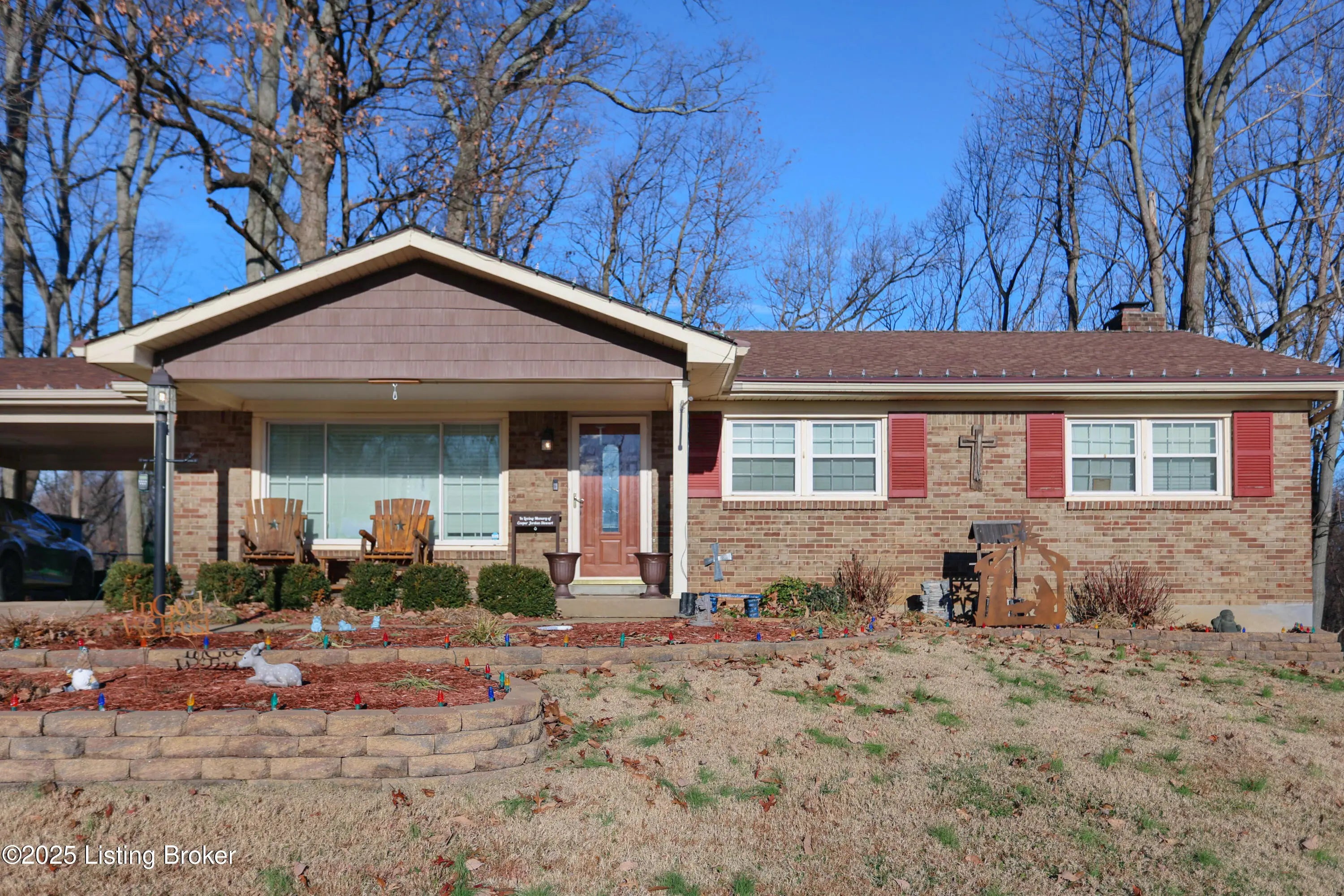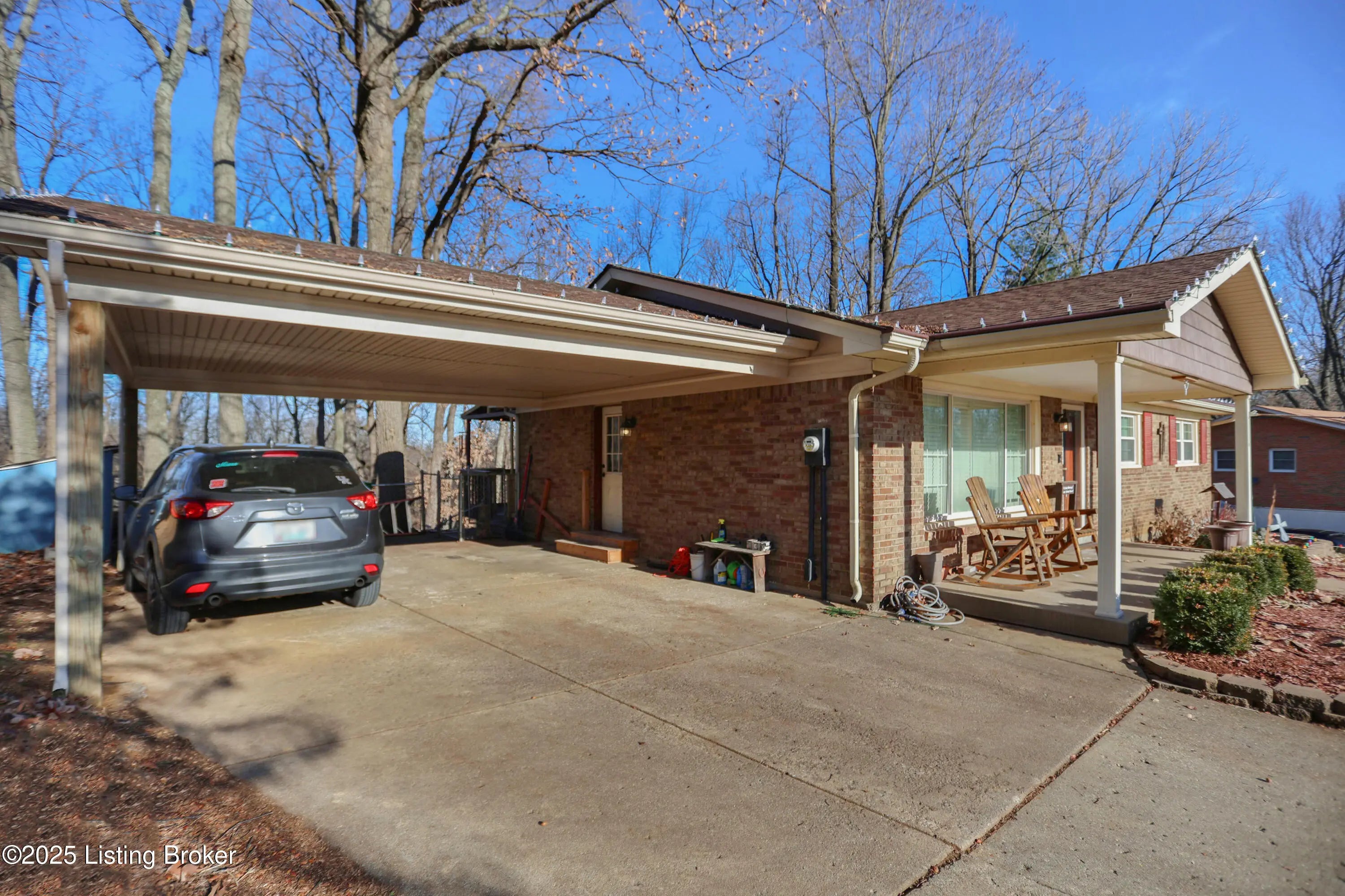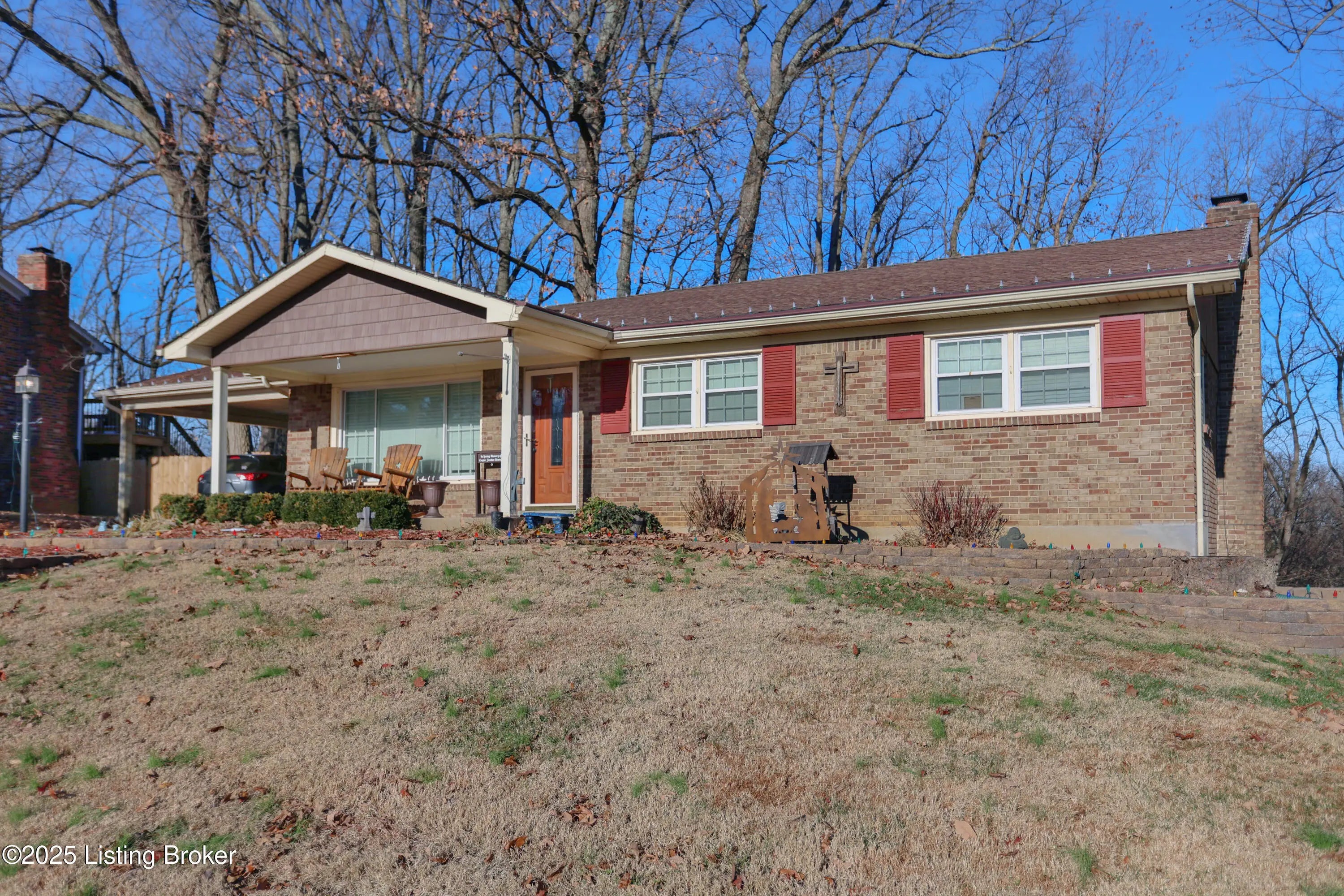 Spacious 3-bedroom, 2.5-bath walkout ranch tucked away on a quiet hilltop cul-de-sac near Iroquois Park. This well-maintained home features hardwood floors throughout the main living areas and generously sized bedrooms. The galley kitchen opens to the dining area, highlighted by French doors that lead to the deck—perfect for indoor-outdoor entertaining. Both full baths have been tastefully updated, and the professionally finished walkout basement provides excellent additional living or recreation space. Outside, enjoy peace and privacy from the deck or relax on the large paver patio while taking in the fantastic, wooded views. Additional highlights include a newer HVAC system (approximately 6 years old) and a 2-car carport added just 1 year ago. A serene setting with convenient access to Iroquois Park, nature, and nearby restaurants.