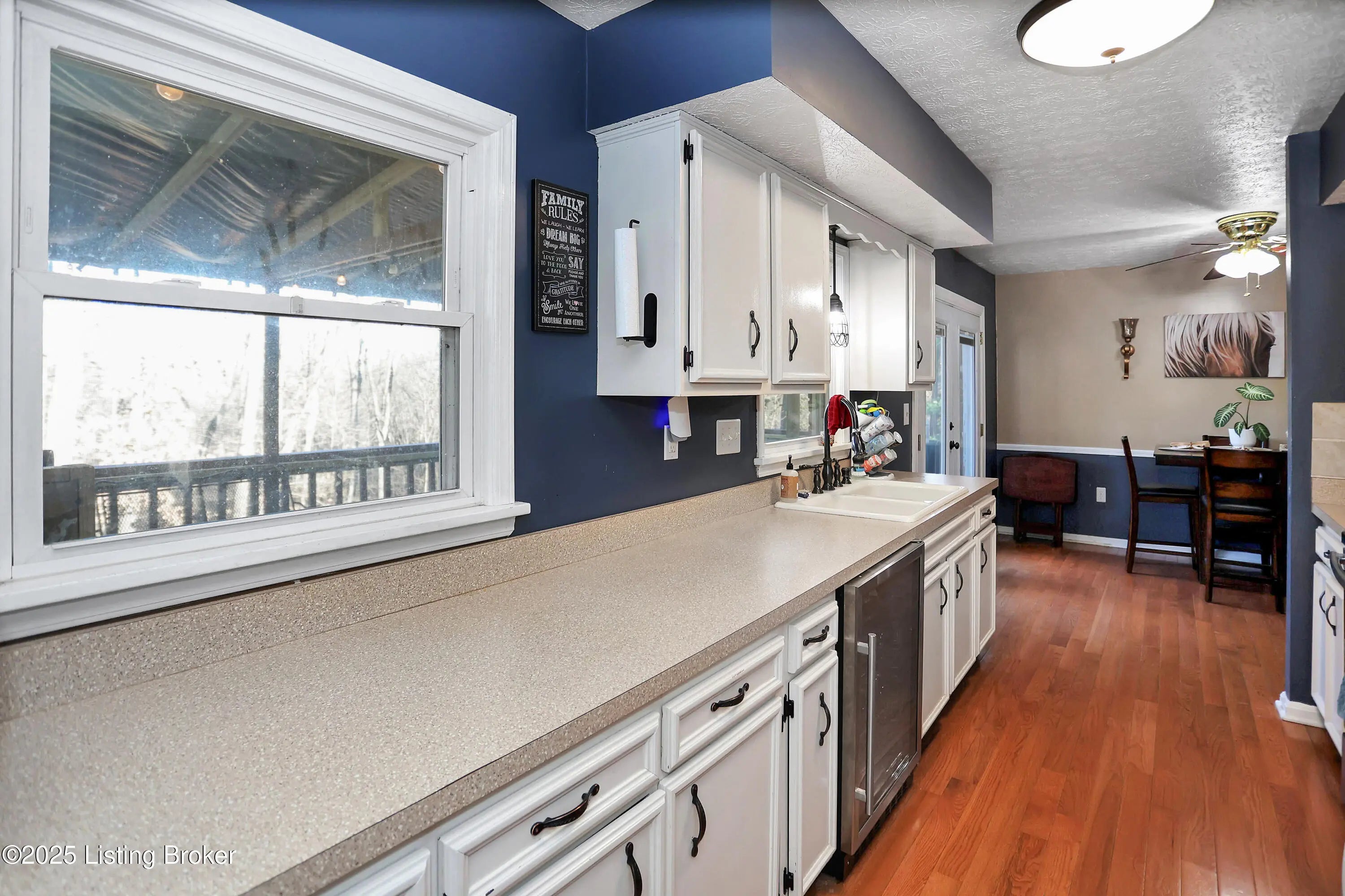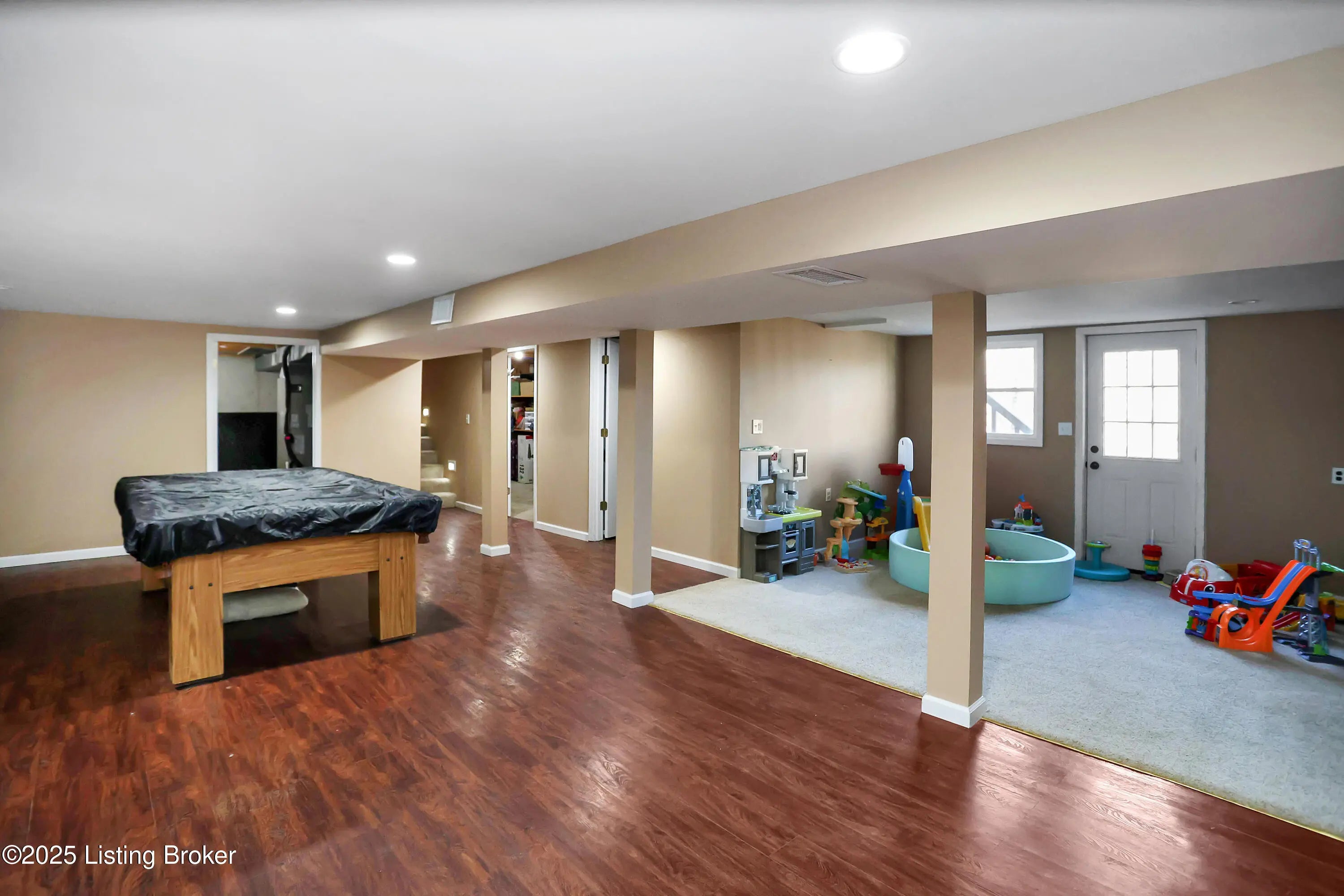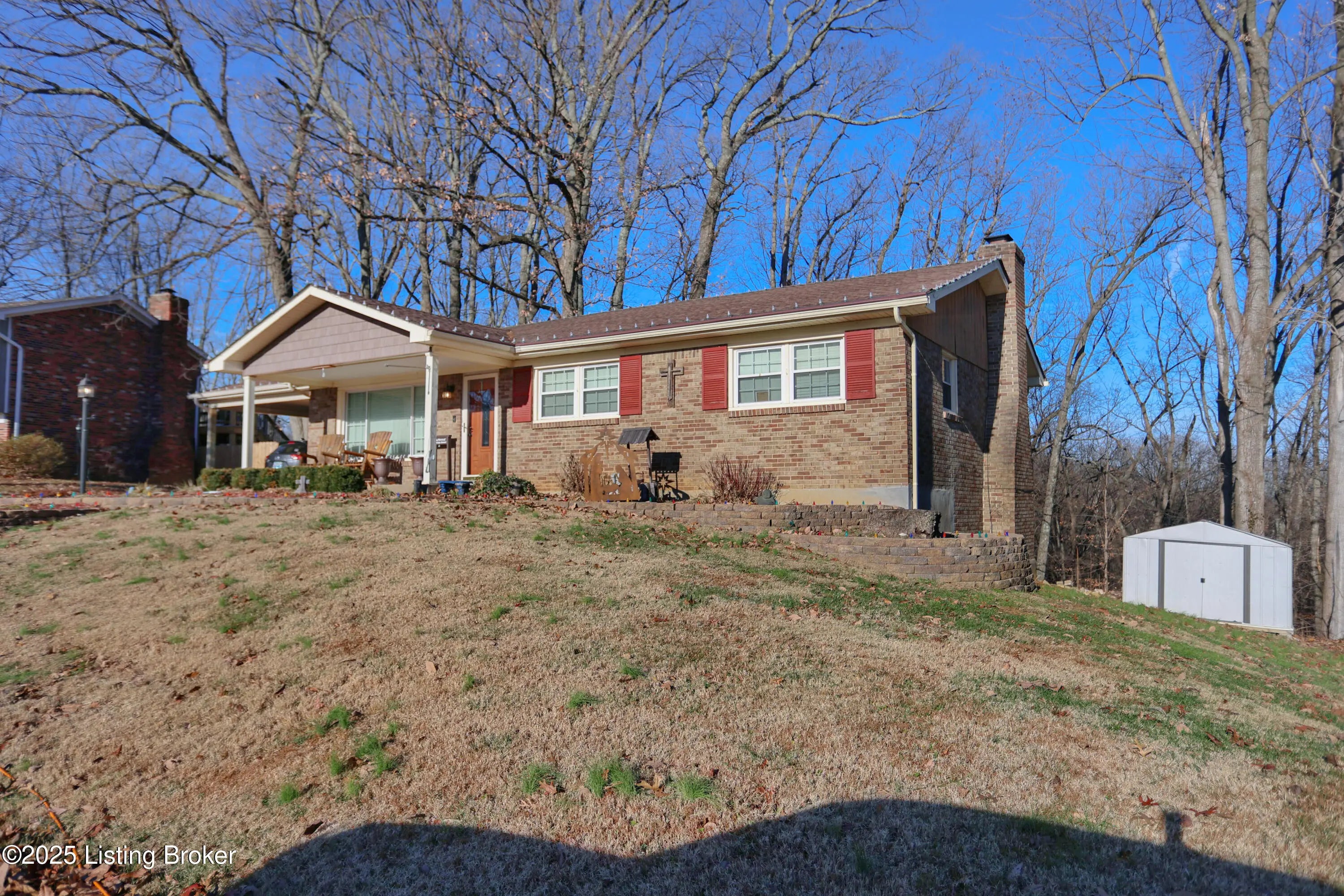 Spacious 3-bedroom, 2.5-bath walkout ranch tucked away on a quiet hilltop cul-de-sac near Iroquois Park. This well-maintained home features hardwood floors throughout the main living areas and generously sized bedrooms. The galley kitchen opens to the dining area, highlighted by French doors that lead to the deck—perfect for indoor-outdoor entertaining. Both full baths have been tastefully updated, and the professionally finished walkout basement provides excellent additional living or recreation space. Outside, enjoy peace and privacy from the deck or relax on the large paver patio while taking in the fantastic, wooded views. Additional highlights include a newer HVAC system (approximately 6 years old) and a 2-car carport added just 1 year ago. A serene setting with convenient access to Iroquois Park, nature, and nearby restaurants.
