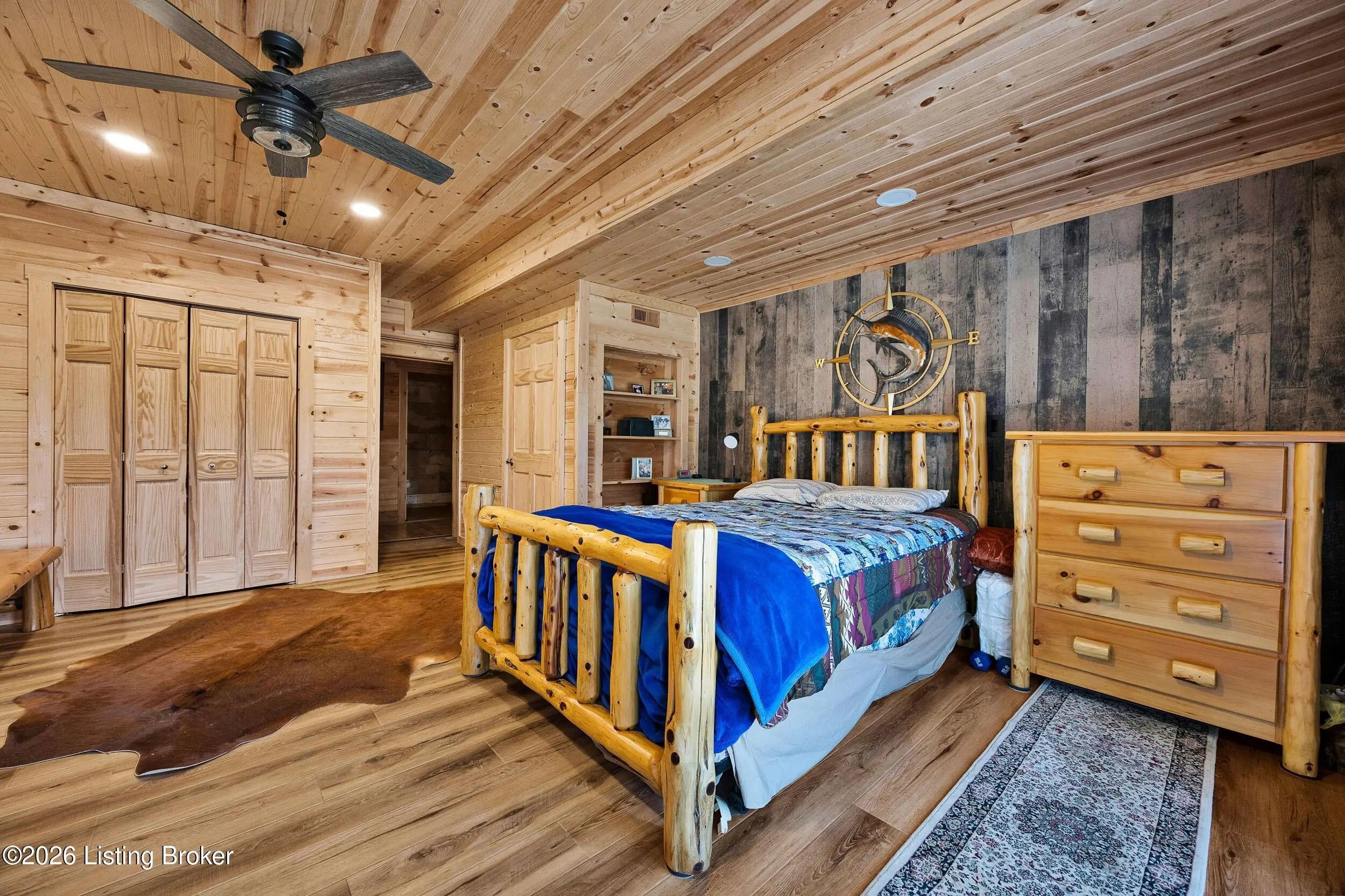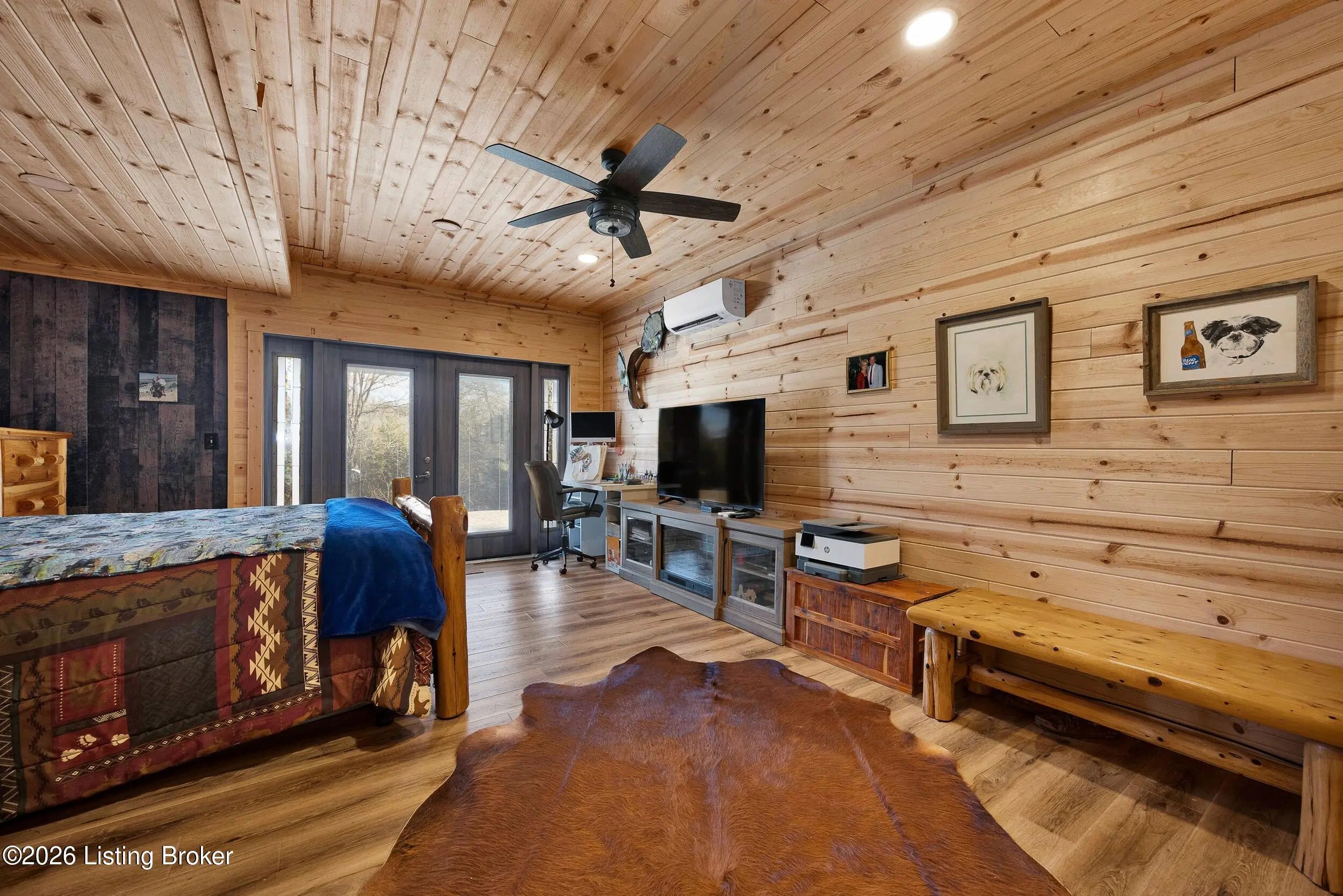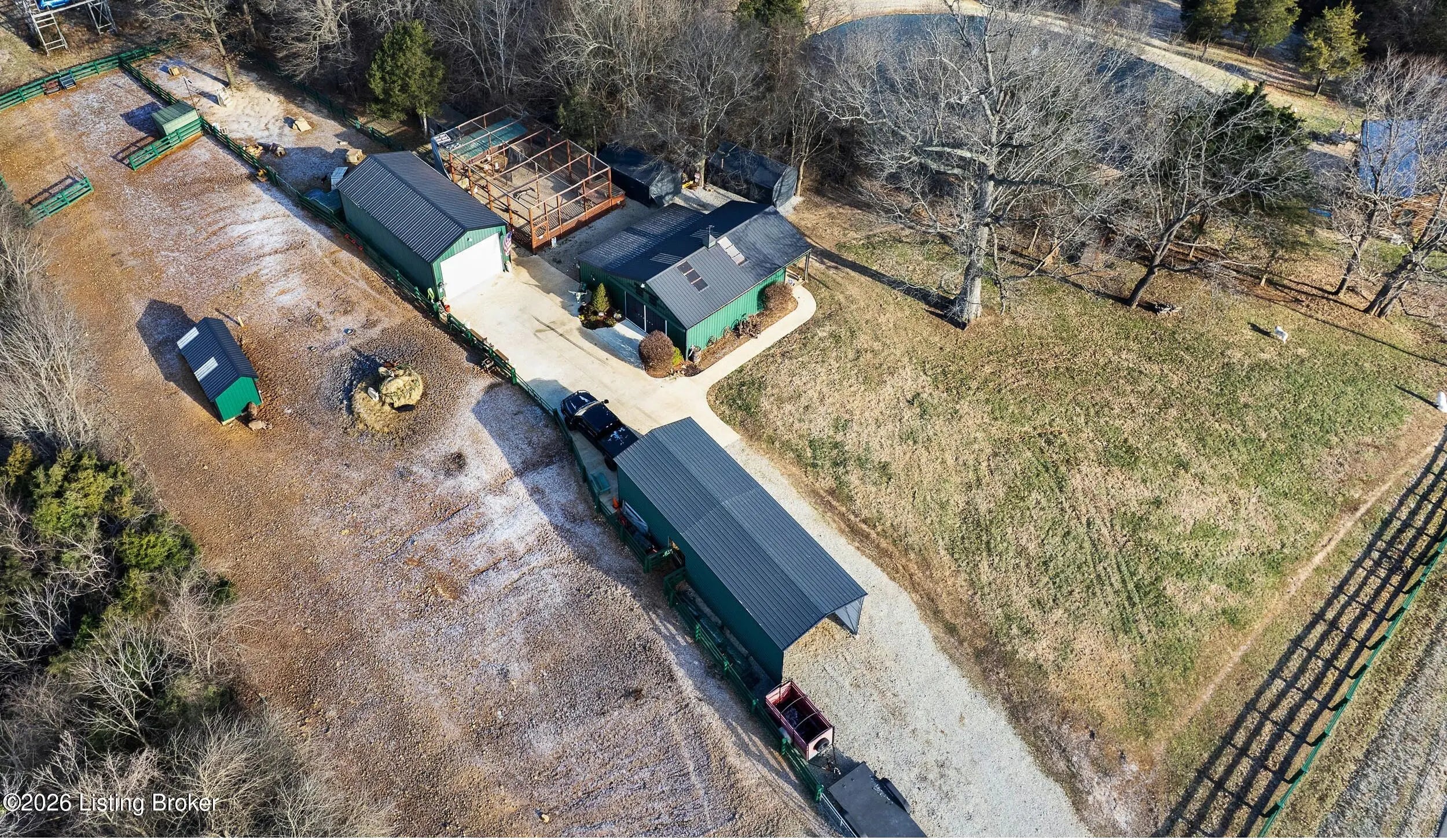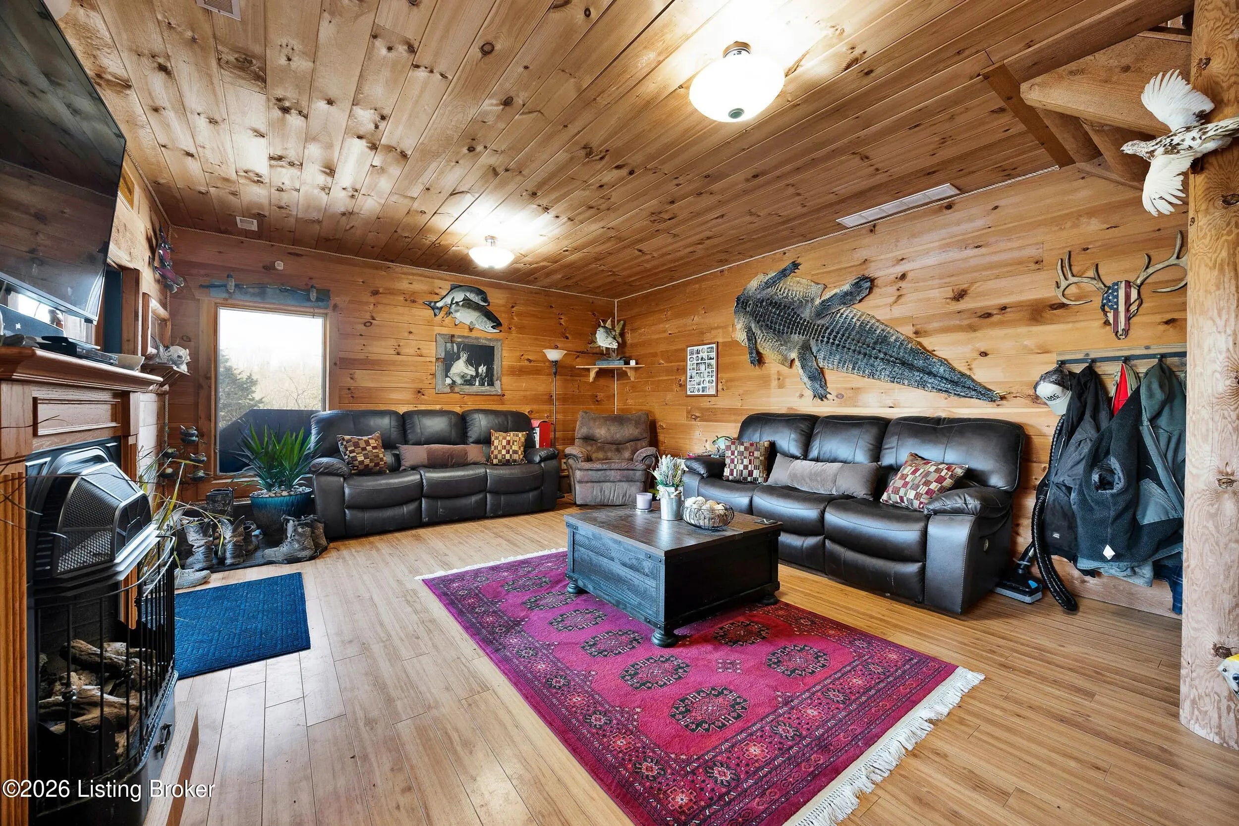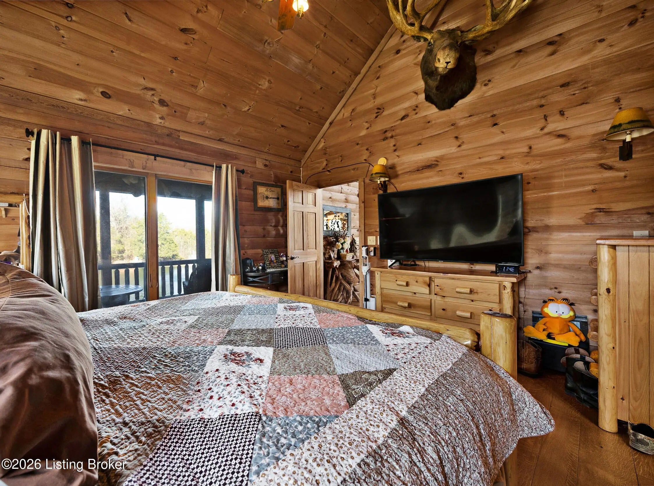 Tucked away on 10.11 acres of sprawling countryside and located just miles from town, this property offers truly one-of-a-kind views and privacy. This beautiful rustic log home offers an open floor plan that boasts a spacious two story living room, vaulted ceilings and a beautiful stone fireplace for those cozy winter days. The kitchen is well-appointed with custom cabinetry and a full suite of stainless-steel appliances. The main level is completed by a primary en suite, a guest powder room, and a convenient laundry room. The walkout basement provides additional living space with a large family room, a second full kitchen, two generously sized bedrooms, and a custom full bath featuring a large tiled walk-in shower. This finished lower level is ideal for accommodating guests, extended family, or holiday gatherings. Outside, the beautifully landscaped grounds include section fencing, perfectly suited for livestock or a hobby farm setup. A scenic fully stocked lake visible from multiple views at the rear of the home. The property also offers two metal shop buildings, a covered canopy, and additional storage buildings-providing ample space for equipment, hobbies, or storage needs. A large outdoor fireplace creates an inviting space for entertaining or relaxing with family and friends. This peaceful and scenic retreat offers a rare combination of privacy, functionality, and natural beauty and must be seen to be fully appreciated.