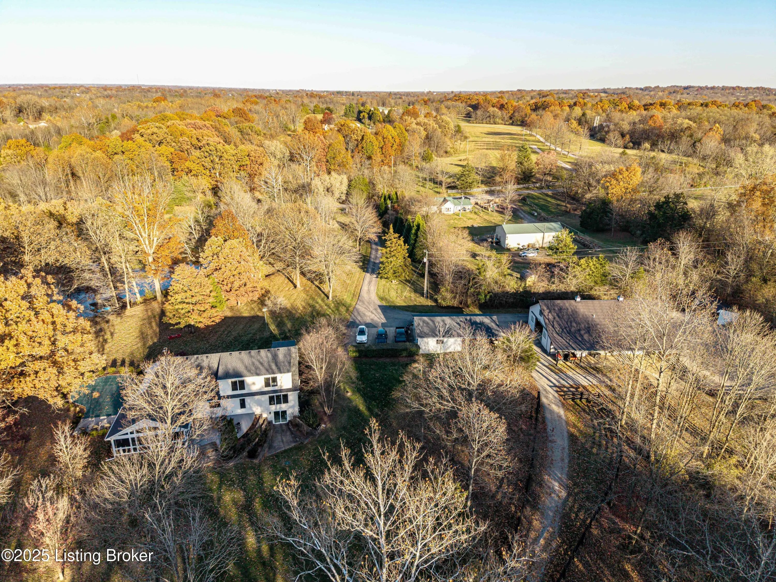 Welcome to 4199 Webb Road! 20 Acre Gated Fully Fenced Equestrian Farm. This very well maintained 3 Bedroom/4 Full Bath Home Features Expansive Porches, Huge Screened Back Porch And A Fabulous In-Ground Heated Pool Overlooking A Beautiful Lake! 7 Stall Barn (Very Functional) With Hay Storage For Approximately 300 Bale Of Hay,, 3 Pastures, 4 Run In Sheds and Outdoor Nelson Waterers. This Property Is Very Private With Lots Of Trees And Also Features A 3 Car Detached Garage. First floor of home has Great Room with stone gas fireplace soaring ceilings and Dining Room with beaufitul views of property. Kitchen with easy access the screened porch (All kitchen Appliances Convey), Full Bathroom, Bedroom and a Primary Suite with tiled shower and large walk in closet. Second Floor Primary Suite Floor with lots of windows providing an abudance of natural light and great views of the property. Huge closet area. Relaxing soaker tub and private bathroom with walk in tiled shower. Walkout basement has bar area, large family room with fireplace, full bathroom with shower, laundry room and large closet for storage. Andersen Windows installed in 2020. New Roof in 2024. This property has riding trails throughout and is located across the street from Shelby Trails. Call today to schedule your appointment to see this unique one of a kind property.