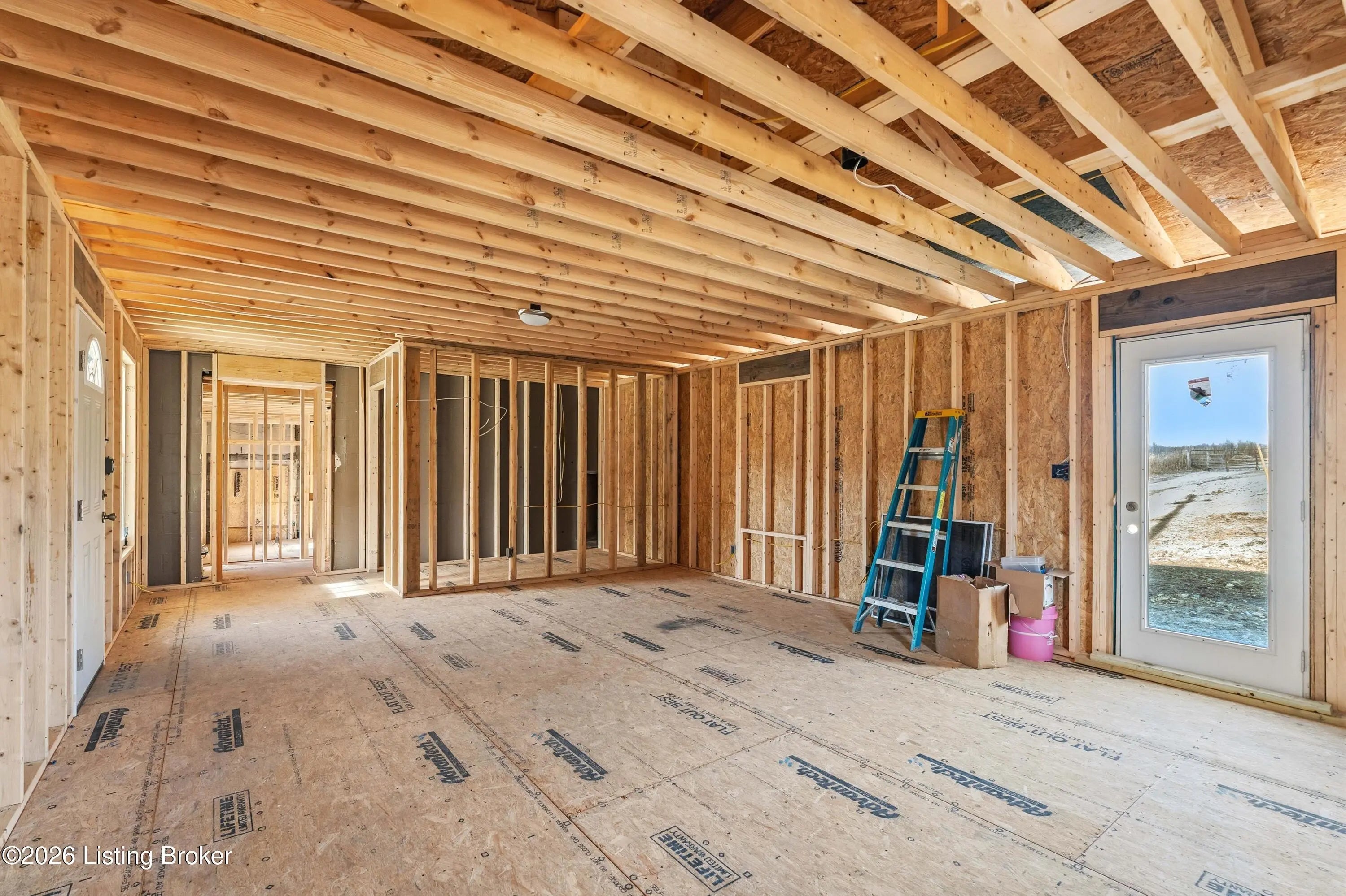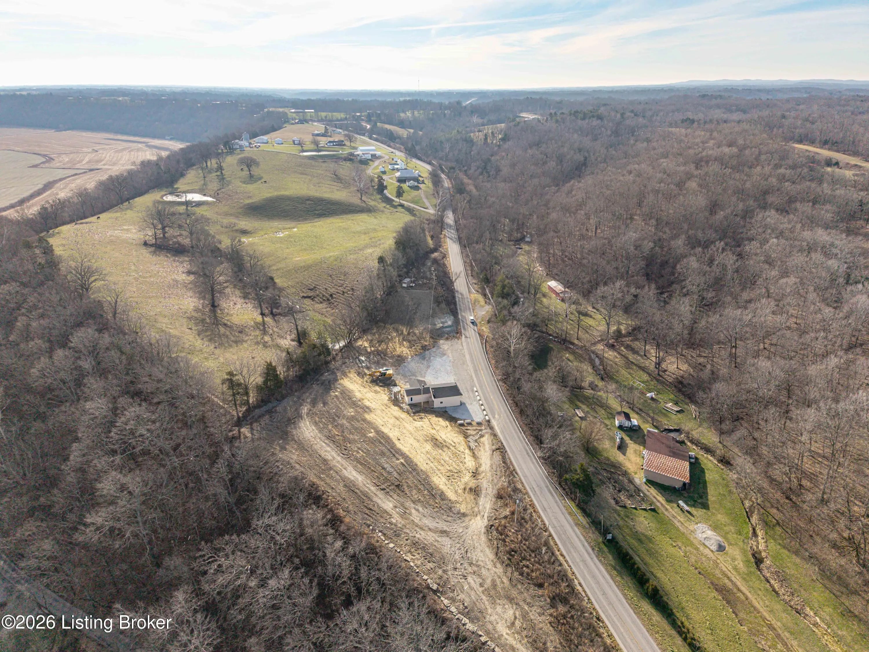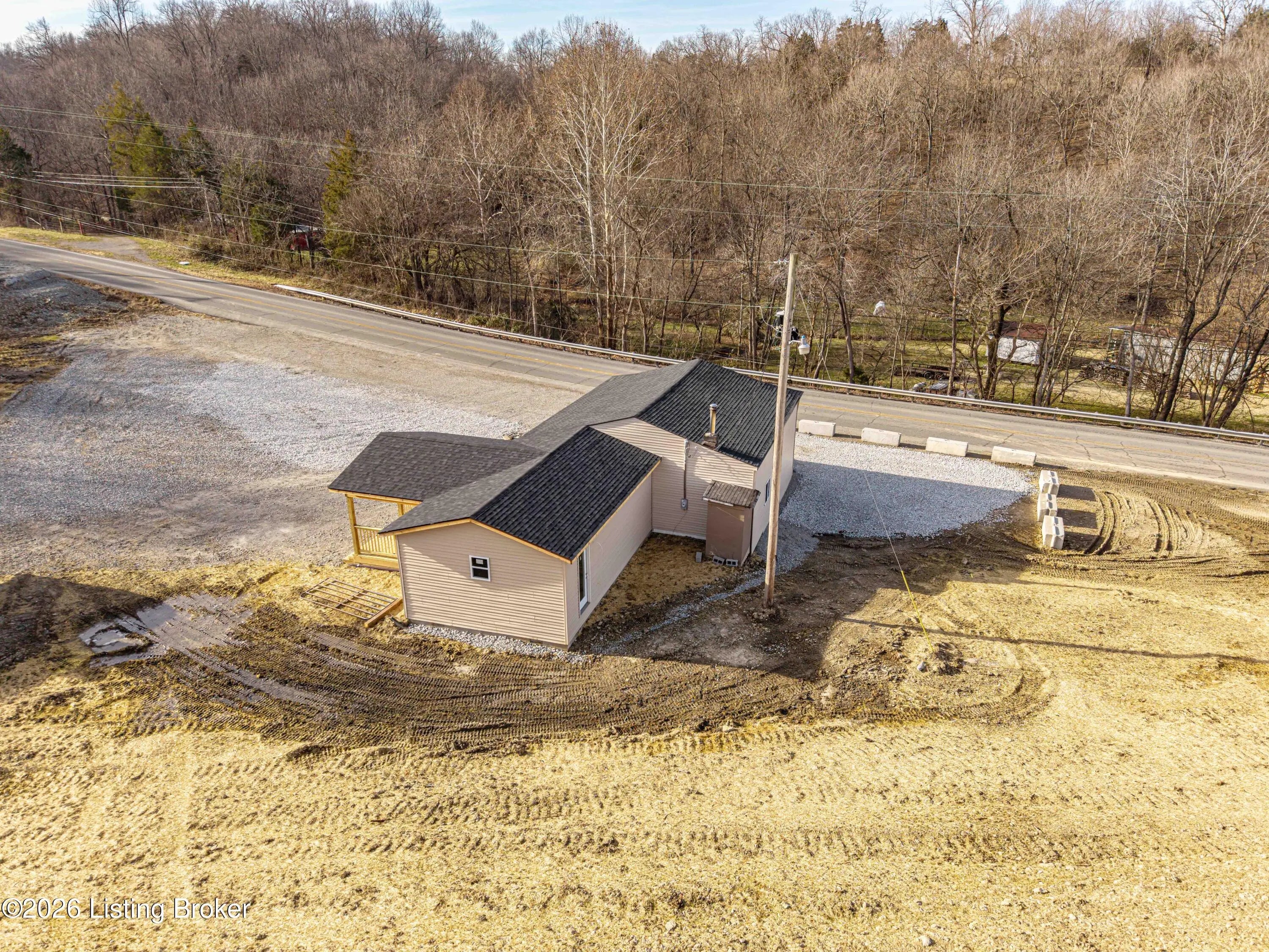 Framed home offering approximately 1232 sq ft, situated on 3.89 acres in a great location. Features include a covered front deck, attached one-car garage, and a new roof already in place. As you can see in pictures, most of the outside is completed. The inside is framed in for 3 bedrooms and 1 1/2 baths. It is unfinished and does not include septic system. A great opportunity for an investor to finish the home. Located on main road, not sure of commercial potential.