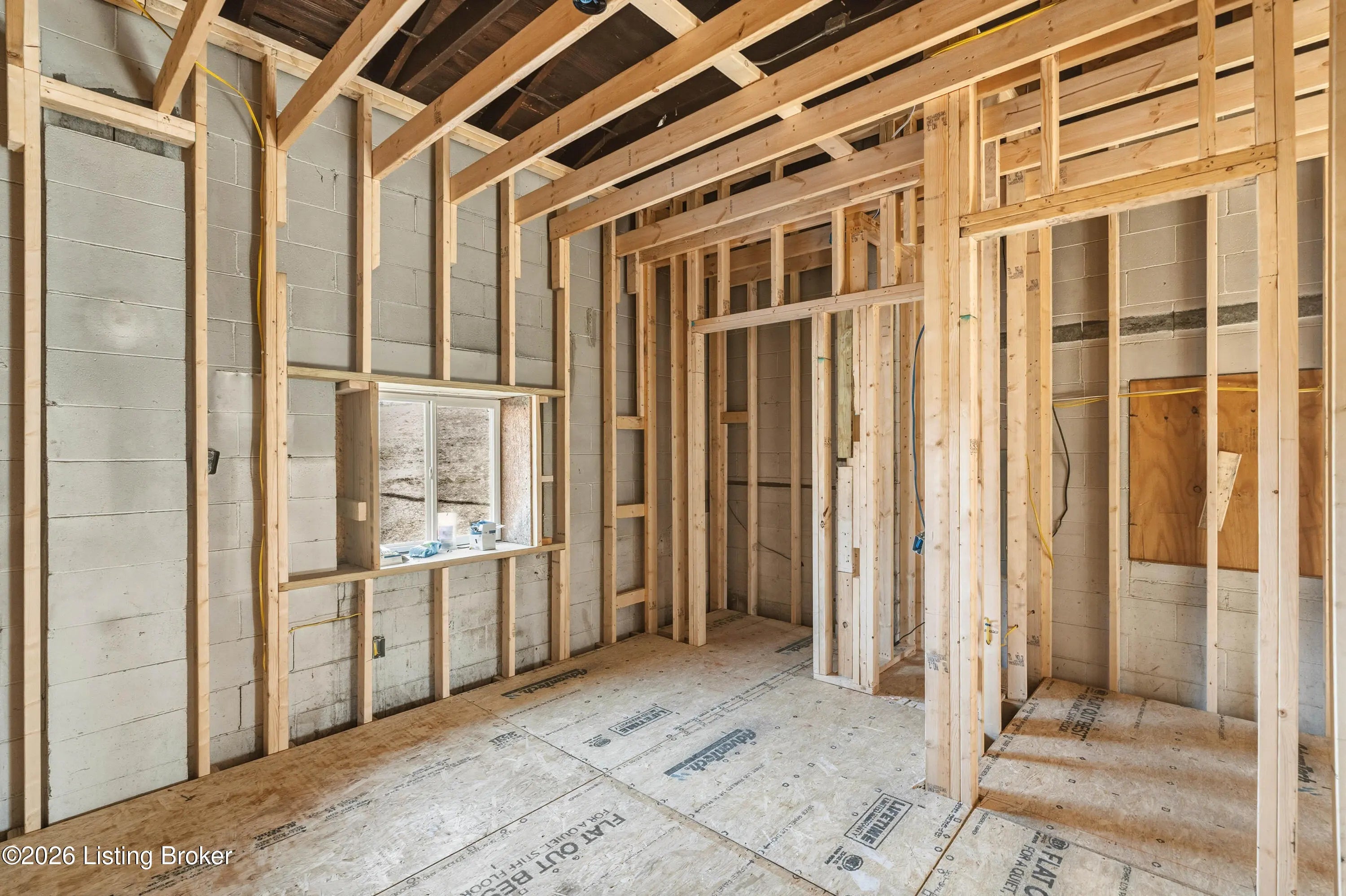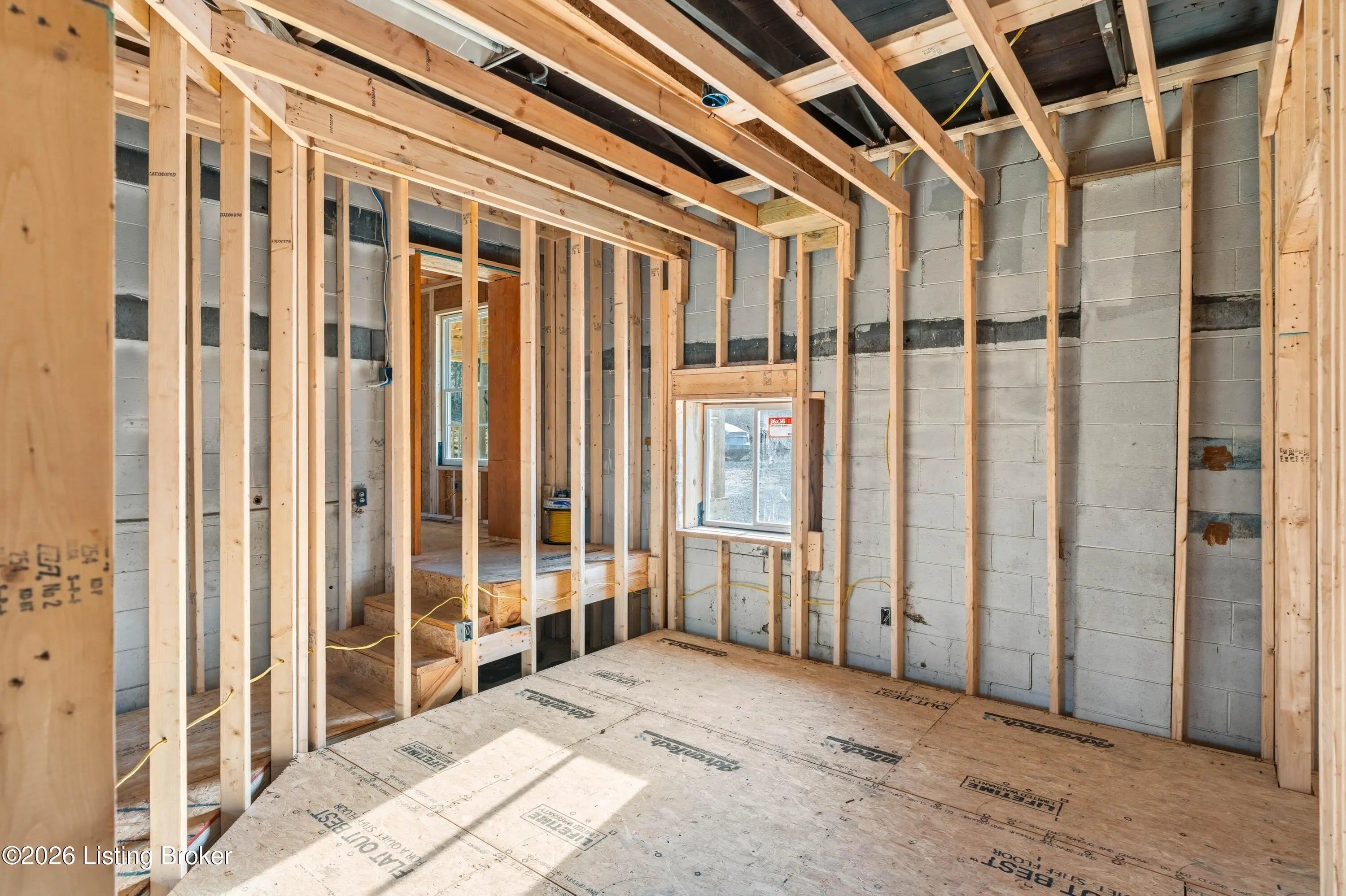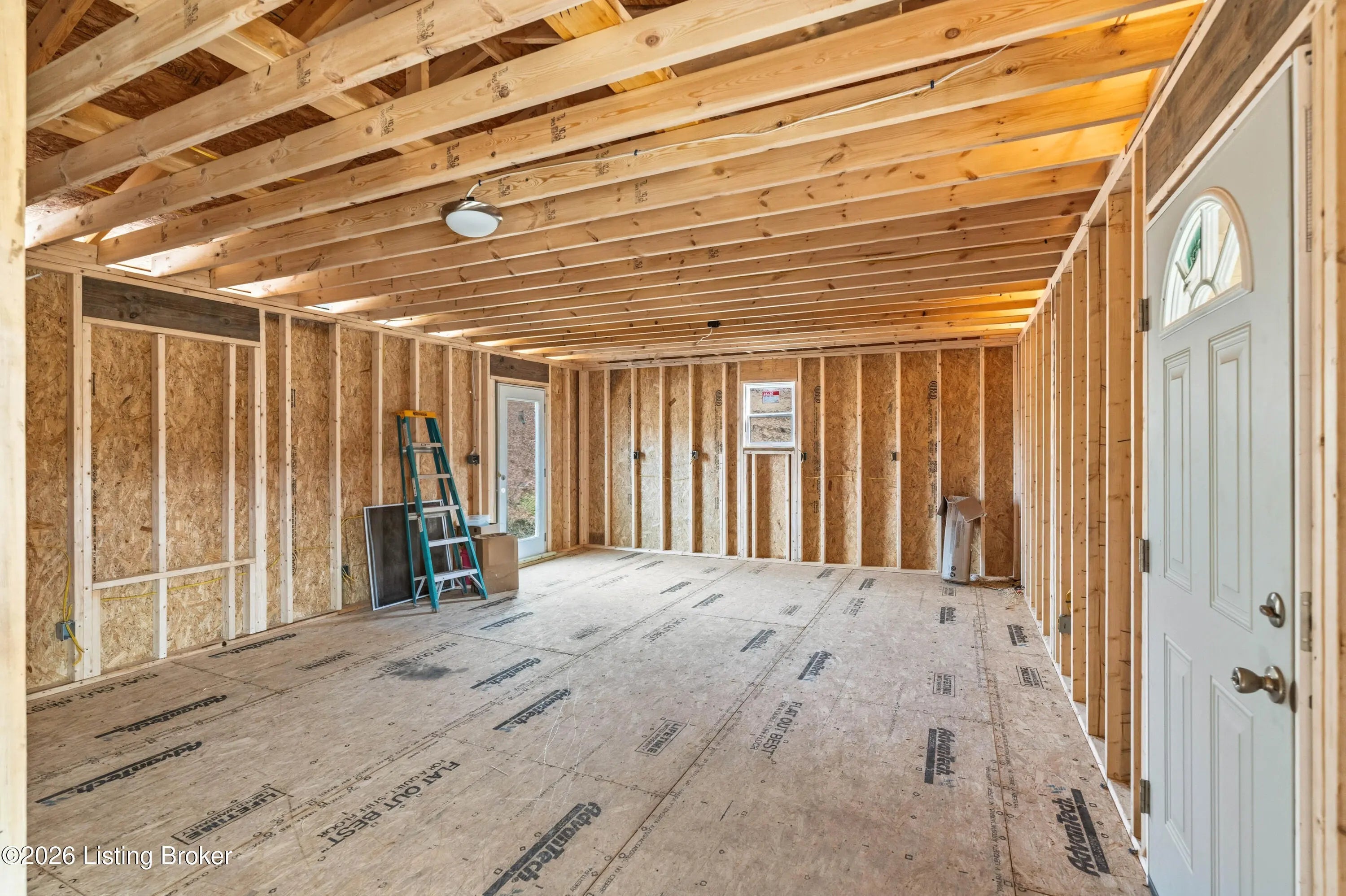 Framed home offering approximately 1232 sq ft, situated on 3.89 acres in a great location. Features include a covered front deck, attached one-car garage, and a new roof already in place. As you can see in pictures, most of the outside is completed. The inside is framed in for 3 bedrooms and 1 1/2 baths. It is unfinished and does not include septic system. A great opportunity for an investor to finish the home. Located on main road, not sure of commercial potential.