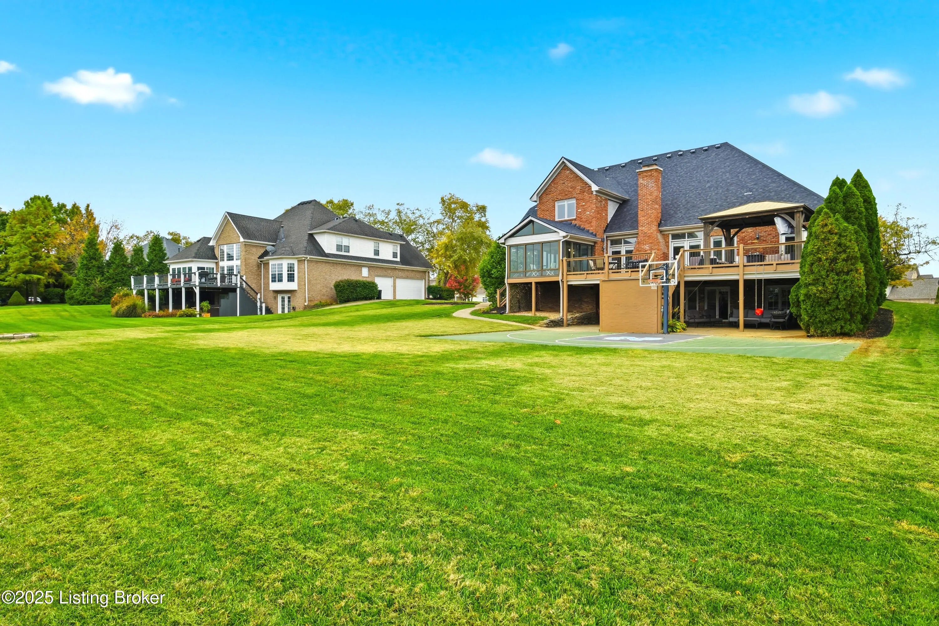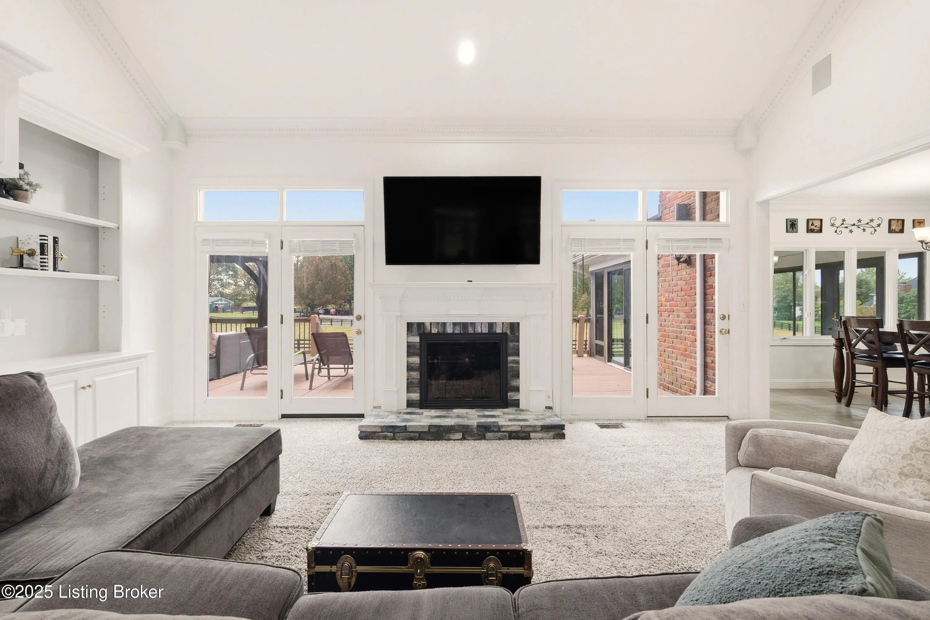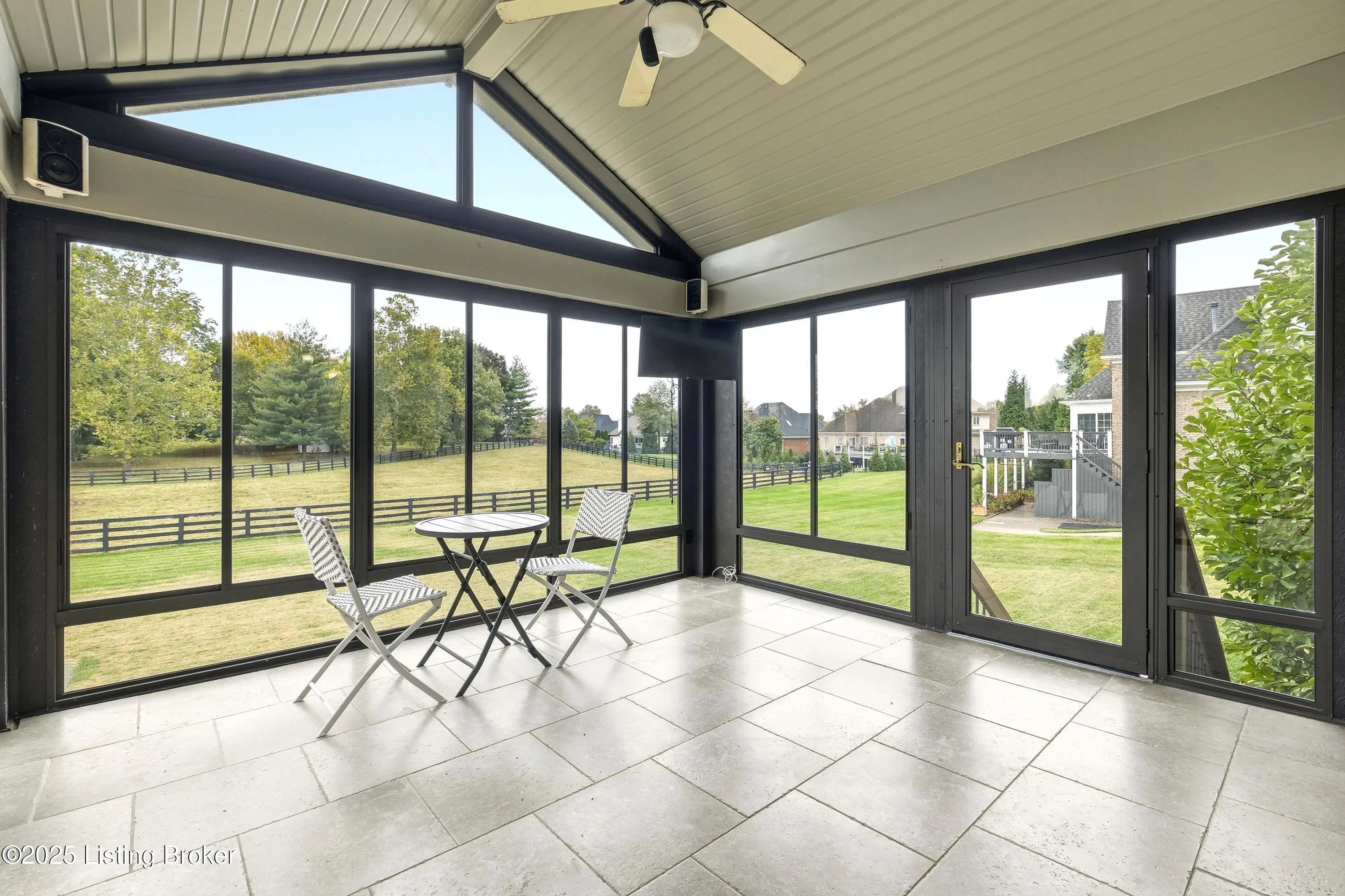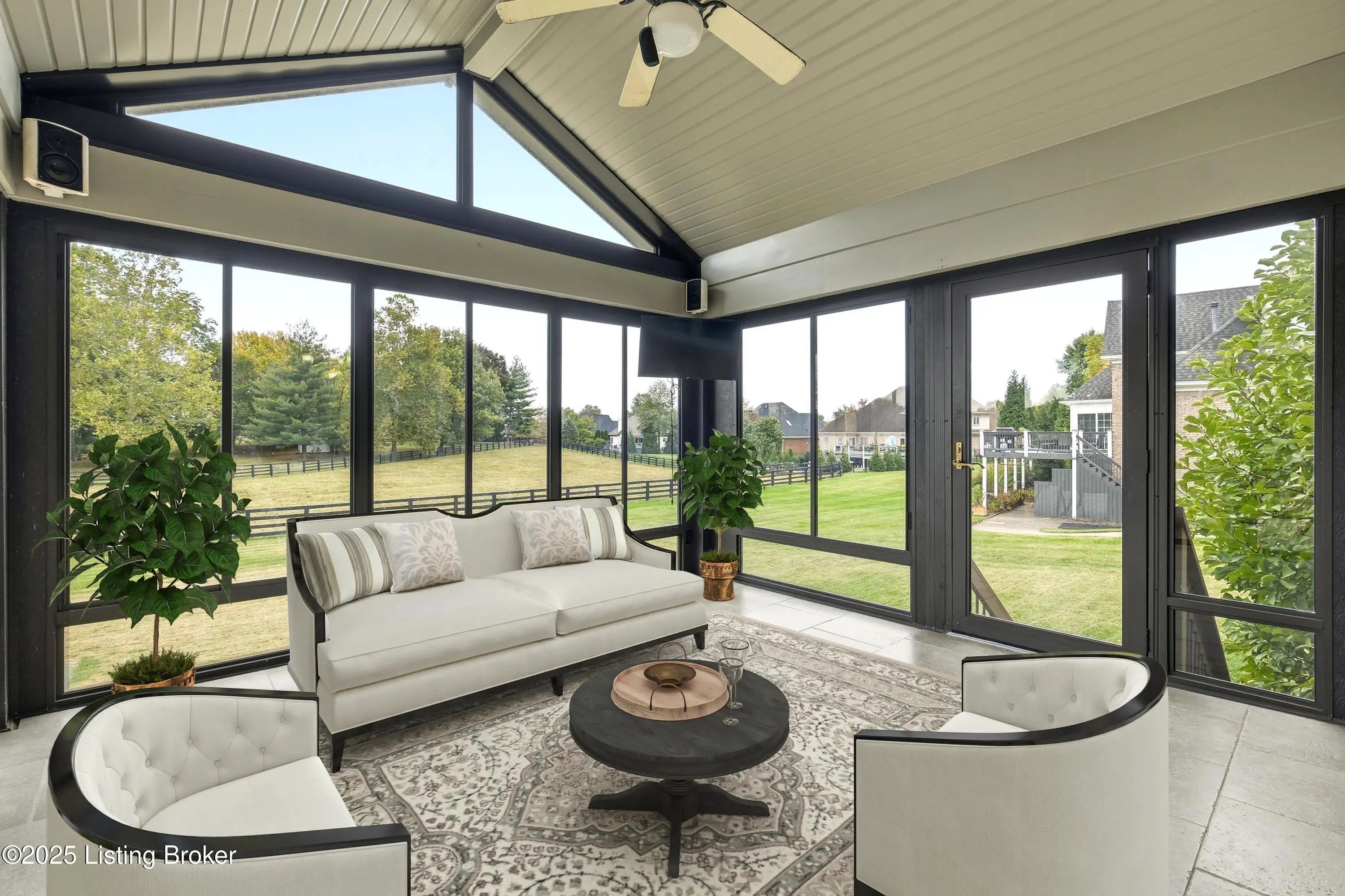 Welcome to this stately home in the sought-after Hillcrest neighborhood. Perfectly positioned directly across from the community pool and clubhouse, this residence backs up to a picturesque horse farm offering breathtaking views. A circular driveway leads to a grand entry with soaring ceilings and a striking staircase. The formal dining room connects seamlessly to the great room, which features a fireplace and built-in shelving—ideal for both everyday living and entertaining. The kitchen is warm and inviting, with a spacious eat-in area, center island, essential appliances, and a pantry closet. A built-in desk or prep station adds functionality, while large windows bathe the space in natural light. Just off the kitchen, a screened-in porch provides the perfect setting for morning coffee or evening relaxation, overlooking tranquil surroundings. The first-floor primary suite serves as a private retreattucked away on the main leveland features a spa-like ensuite bath with a dual-sink vanity, walk-in closet, and direct access to the freshly painted deck and gazebo. A flexible sitting room or office with built-in bookshelves adds versatility, while a convenient laundry room and half bath complete the main level for everyday ease. Upstairs, both the front staircase and the secondary staircase near the kitchen lead to three additional bedrooms. One includes a private ensuite bath, while two share a Jack-and-Jill bathroom, each offering generous closet space. The walkout lower level extends the living space an entertainer's dream featuring a spacious family room with a gas fireplace, full bar, theater room, and an additional office perfect for work or study. A bedroom, full bathroom, home gym, half bath, and ample storage complete this impressive level. Outside you can enjoy a covered patio overlooking the expansive backyard, complete with a firepit area and basketball courtall framed by serene horse-farm views. Residents of Hillcrest have access to wonderful amenities including a clubhouse, pool, tennis courts, and community events. Ideally located in the heart of Prospect, this home offers quick access to award-winning Oldham County schools, nearby parks, golf courses, shopping, and dining. With Highway 42 and I-265 just minutes away, commuting to downtown Louisville and surrounding areas is effortless.