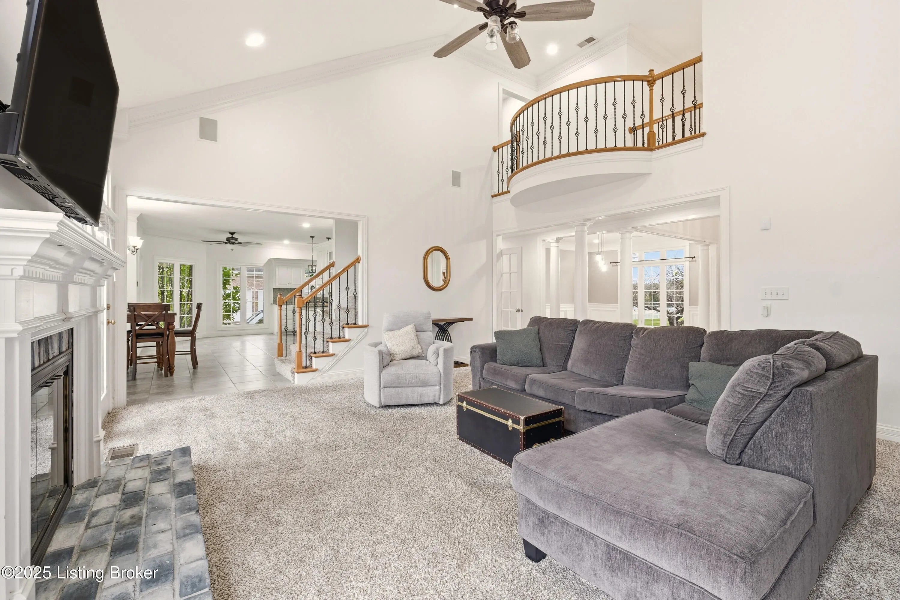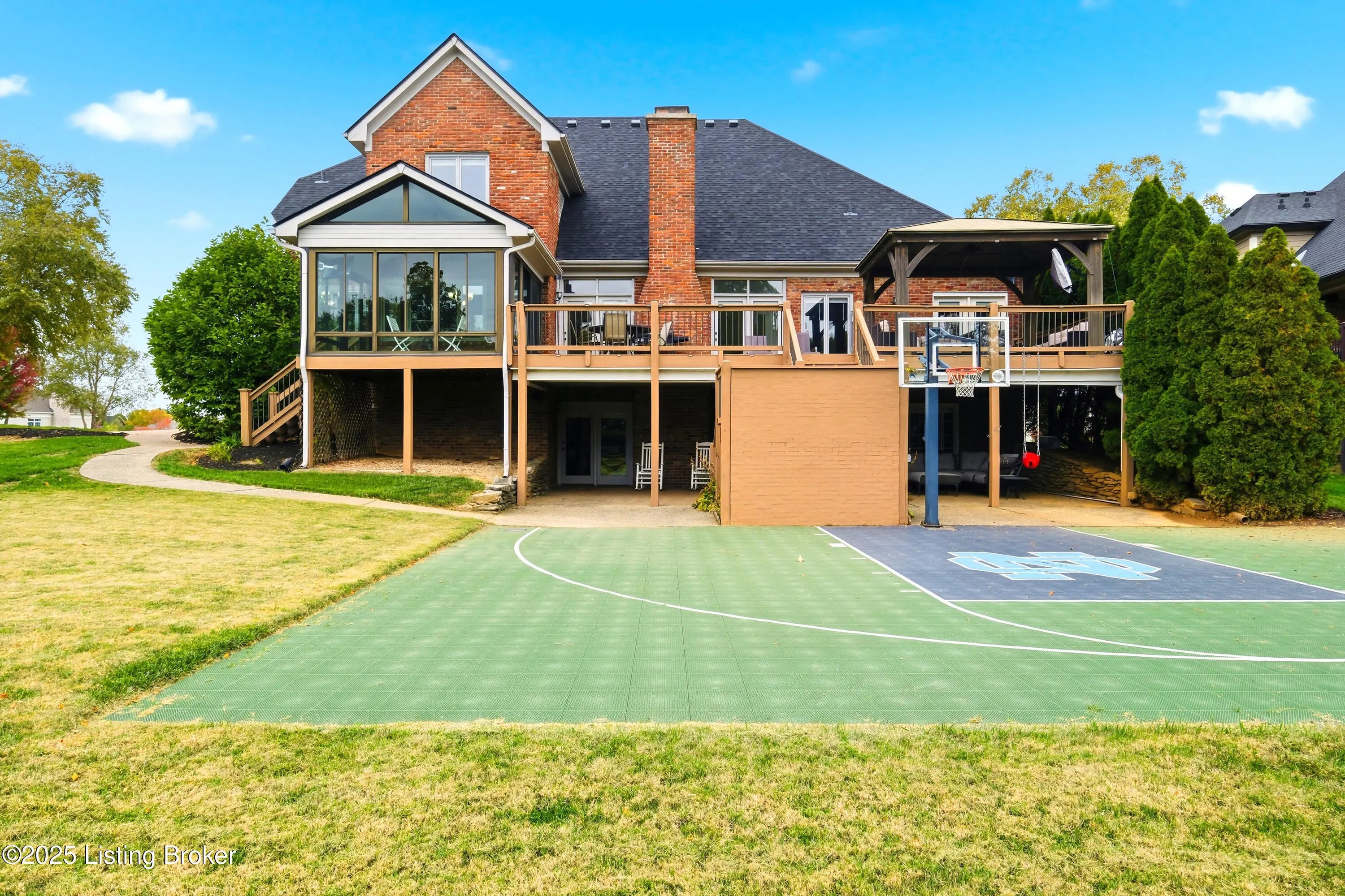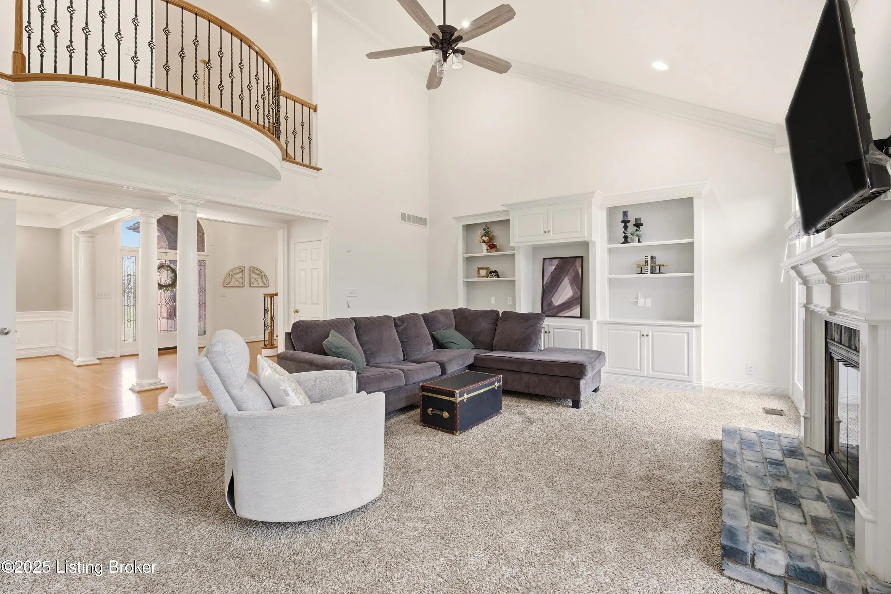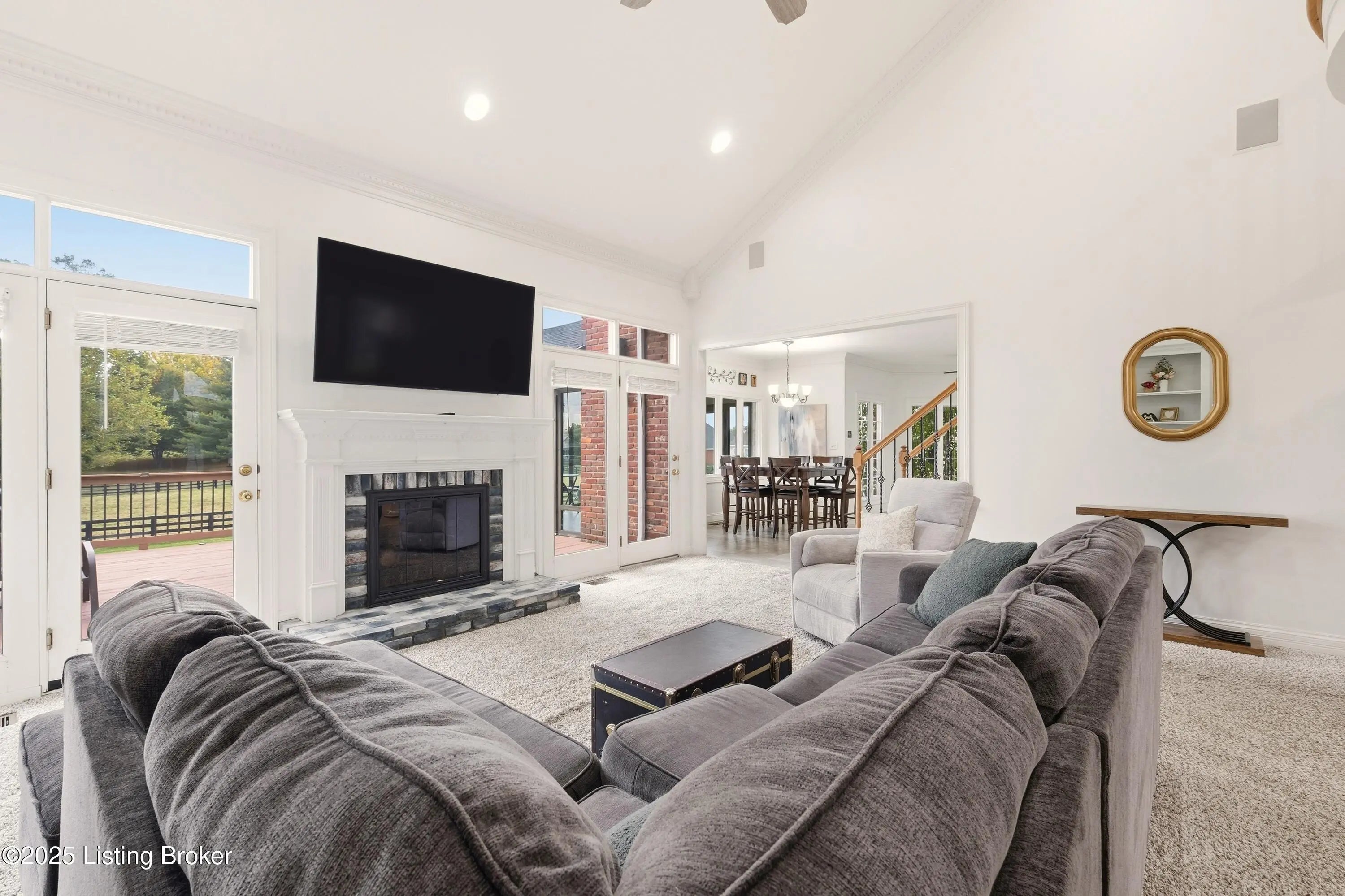 Welcome to this stately home in the sought-after Hillcrest neighborhood. Perfectly positioned directly across from the community pool and clubhouse, this residence backs up to a picturesque horse farm offering breathtaking views. A circular driveway leads to a grand entry with soaring ceilings and a striking staircase. The formal dining room connects seamlessly to the great room, which features a fireplace and built-in shelving—ideal for both everyday living and entertaining. The kitchen is warm and inviting, with a spacious eat-in area, center island, essential appliances, and a pantry closet. A built-in desk or prep station adds functionality, while large windows bathe the space in natural light. Just off the kitchen, a screened-in porch provides the perfect setting for morning coffee or evening relaxation, overlooking tranquil surroundings. The first-floor primary suite serves as a private retreattucked away on the main leveland features a spa-like ensuite bath with a dual-sink vanity, walk-in closet, and direct access to the freshly painted deck and gazebo. A flexible sitting room or office with built-in bookshelves adds versatility, while a convenient laundry room and half bath complete the main level for everyday ease. Upstairs, both the front staircase and the secondary staircase near the kitchen lead to three additional bedrooms. One includes a private ensuite bath, while two share a Jack-and-Jill bathroom, each offering generous closet space. The walkout lower level extends the living space an entertainer's dream featuring a spacious family room with a gas fireplace, full bar, theater room, and an additional office perfect for work or study. A bedroom, full bathroom, home gym, half bath, and ample storage complete this impressive level. Outside you can enjoy a covered patio overlooking the expansive backyard, complete with a firepit area and basketball courtall framed by serene horse-farm views. Residents of Hillcrest have access to wonderful amenities including a clubhouse, pool, tennis courts, and community events. Ideally located in the heart of Prospect, this home offers quick access to award-winning Oldham County schools, nearby parks, golf courses, shopping, and dining. With Highway 42 and I-265 just minutes away, commuting to downtown Louisville and surrounding areas is effortless.