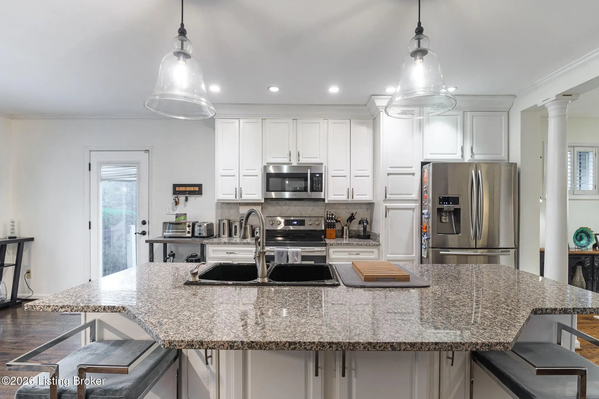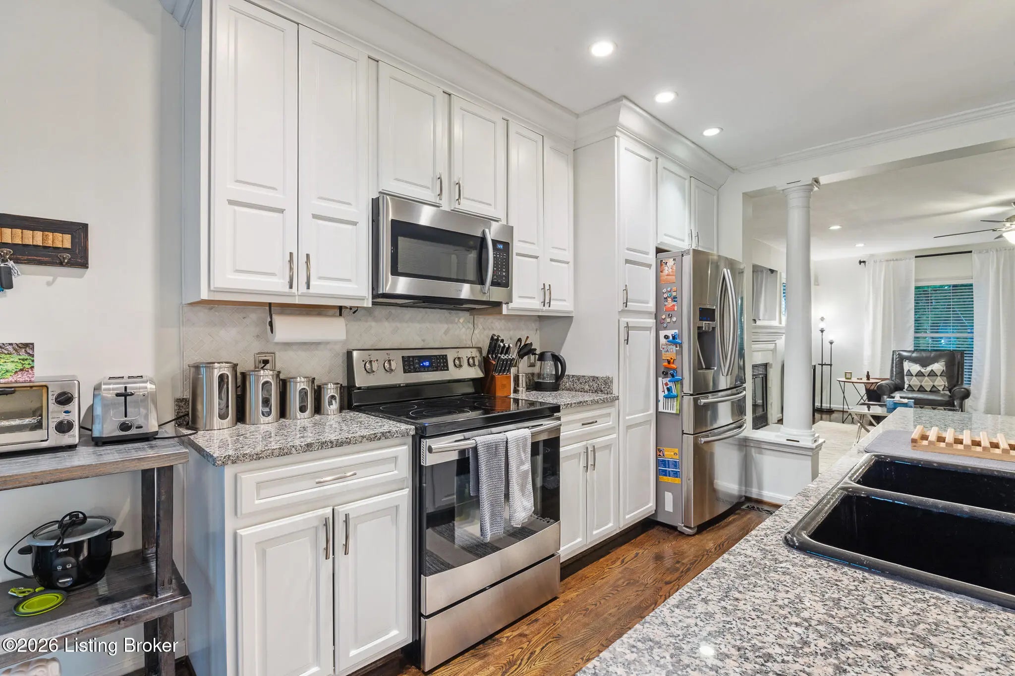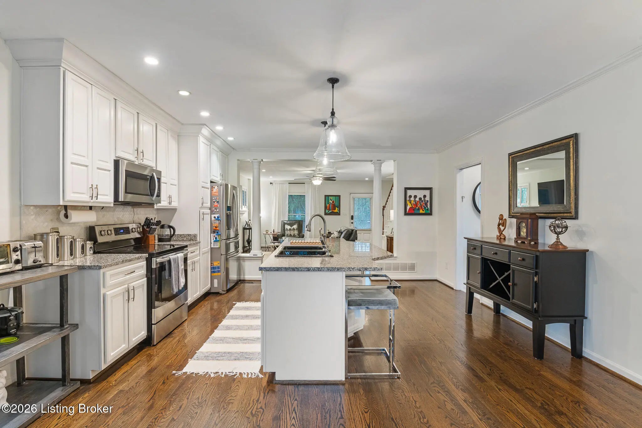 Step into the perfect blend of classic charm and modern living at 105 Marshall Drive, a jewel-of-a-find in the established neighborhood of Beechwood Village. A wonderful wraparound covered front porch sets a welcoming tone for this traditional two-story home designed on a flat lot in what is considered to be one of the most desirable communities in St. Matthews. Upon entry, walnut-stained oak hardwood floors flow throughout the living spaces and you immediately notice the bright, open floor plan that only comes with newer construction. (Yes, this home was built in 2001.) The heart of the home is the well-equipped kitchen, featuring a Samsung stainless steel appliance package, stone countertops, crisp white cabinetry (with rollouts and tall crown molding), pantry, and a striking chevron-patterned marble tile backsplash. An oversized island with generous seating is highlighted by dramatic glass pendant lighting, opening seamlessly to the great room on one end and dining area on the other. You'll love the cozy fireplaceideal for everyday living and entertaining alike. A conveniently located powder room sits just off the kitchen. Upstairs, all three bedrooms enjoy 8.5-foot ceilings for an elevated feel. The second floor primary suite offers a true retreat seldom found in 40207 at this price. There is a generous walk-in closet complete with custom built-ins along with luxurious all-tile bath featuring double vanity, and a spacious walk-in shower with bench. A second full bathroom is located between the additional two bedrooms. Outside, mature arborvitaes and a privacy fence create a serene backyard oasis to enjoy the deck. The two-car detached garage includes an additional storage door for bikes, tools, or seasonal items, while the unfinished basement provides excellent potential for future expansion. Thoughtfully designed and move-in ready, this home delivers comfort, timeless style, and room to grow.