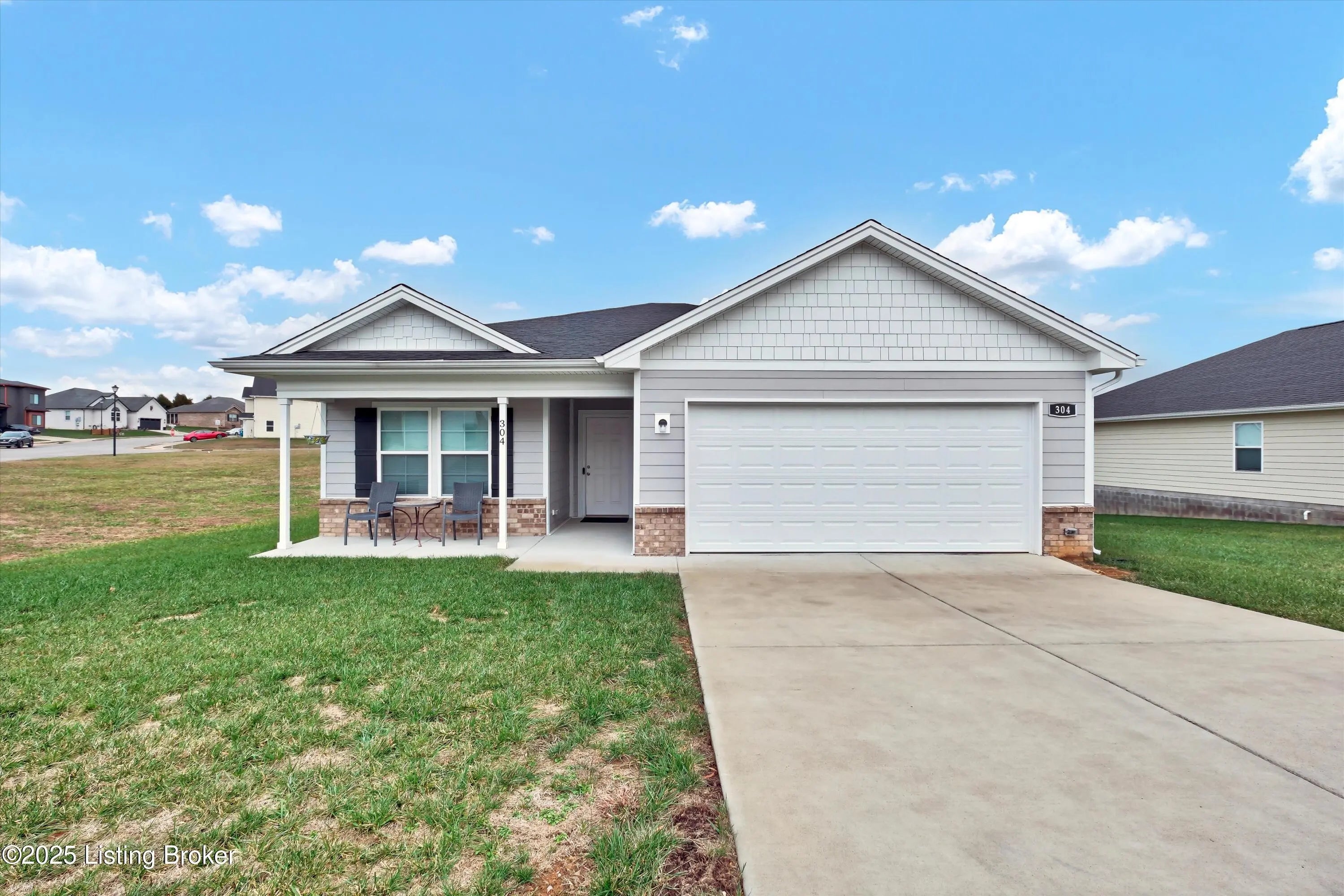 Welcome to 304 Summit Creek, a beautifully built home completed in 2023 that offers modern design, quality finishes, and comfortable living throughout. This 3-bedroom, 2-full-bath residence features an open floor plan with luxury vinyl plank flooring in the main living areas, creating a bright and inviting space ideal for everyday living and entertaining. The kitchen showcases crisp white cabinetry, granite countertops, stainless steel appliances, and a pantry for added storage. A split bedroom layout provides privacy, with the primary suite offering a walk-in closet, double vanity, and walk-in shower. Additional highlights include a screened-in covered deck perfect for relaxing outdoors, a covered front porch, a dedicated laundry room, and a 2-car attached garage. Situated on a desirable corner lot, this home combines modern convenience with thoughtful design in a move-in-ready setting.