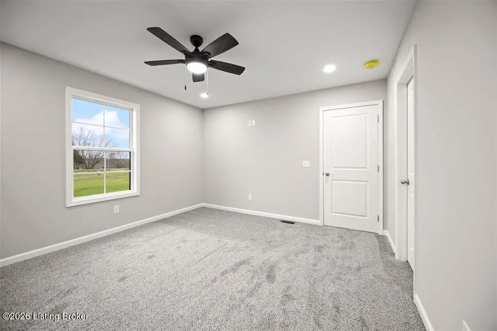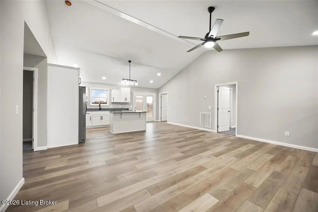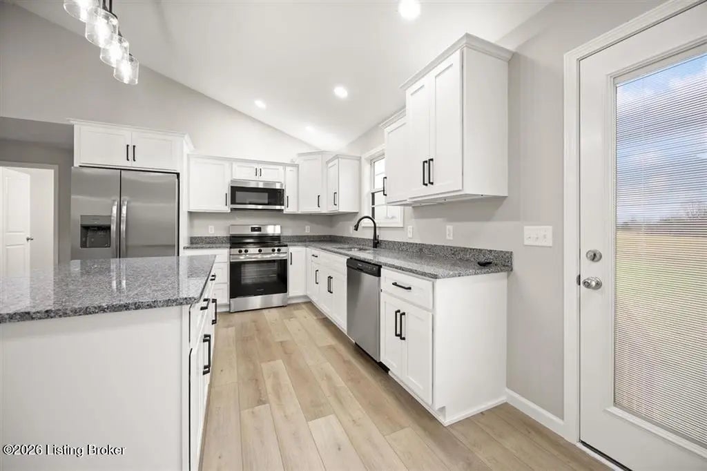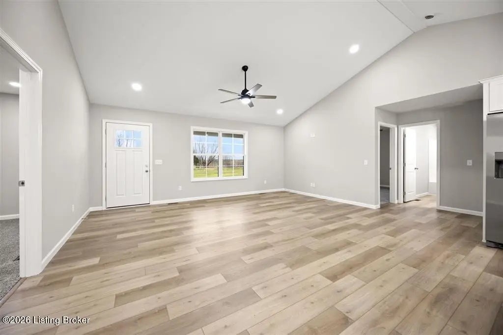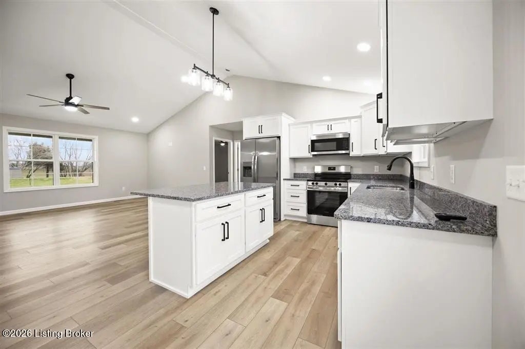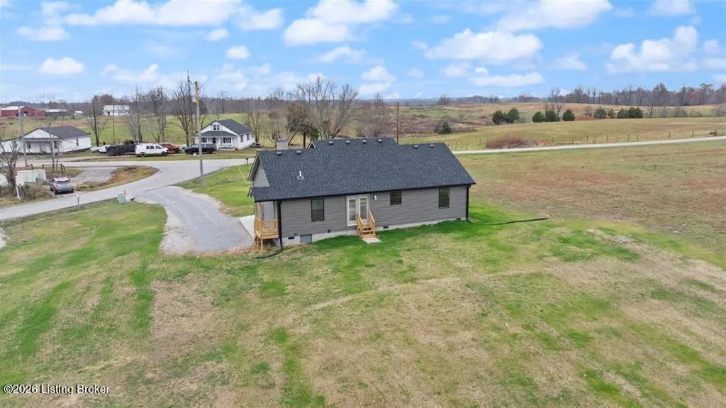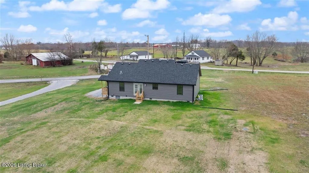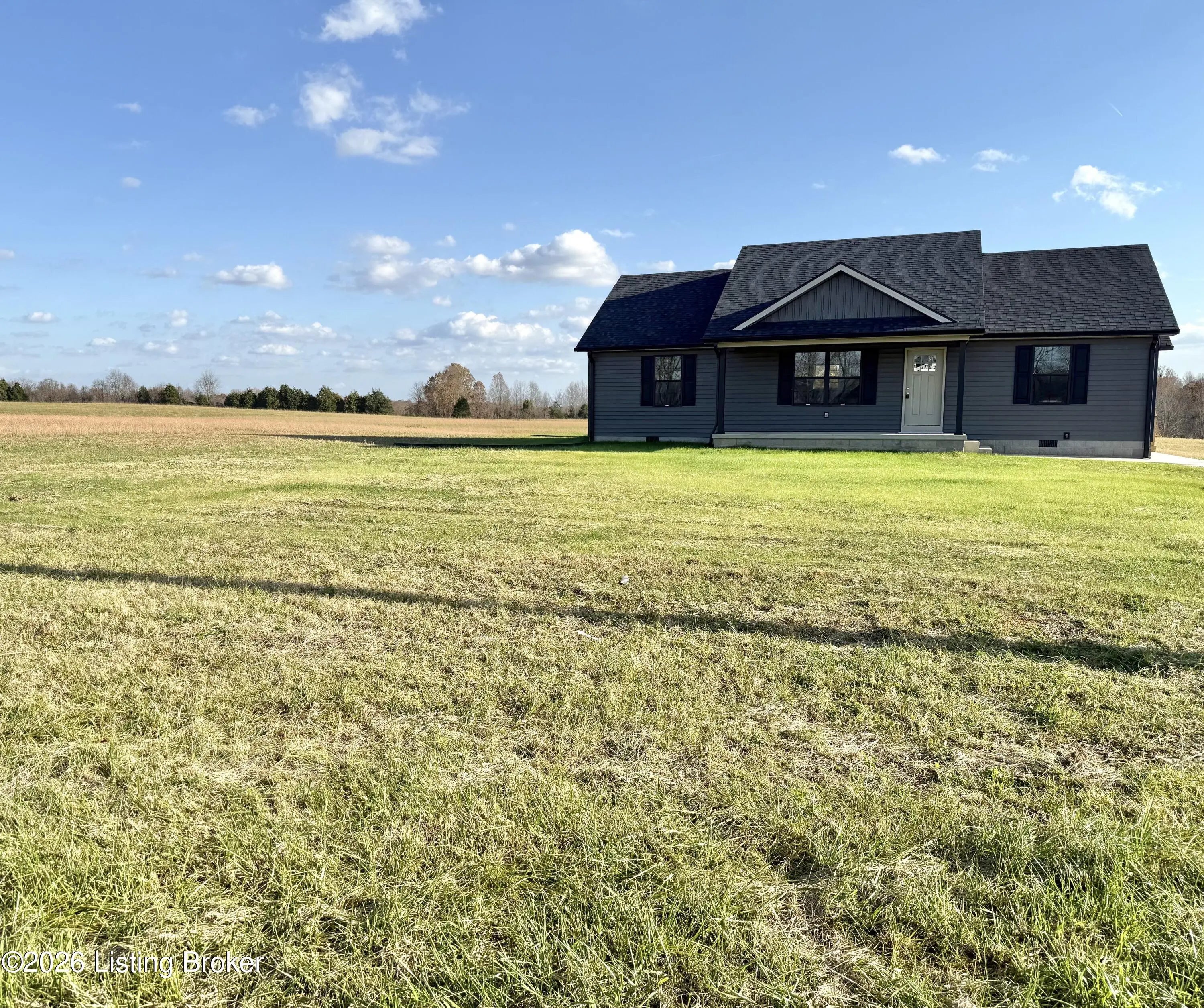 This newly completed construction offers a beautiful 3 bedroom, 2 bathroom layout with a total of 1,350 sq. ft. The open-concept living room and kitchen feature vaulted ceilings, modern farmhouse soft-close cabinets, granite countertops, and stainless steel appliances. The primary bedroom includes its own private bathroom and walk-in closet, while the two guest bedrooms are located on the opposite side of the home for added privacy. A convenient side entry leads into a combined laundry and mudroom area. Located just 12 minutes from Nolin Lake, 5 minutes from the nearest Dollar Store, 20 minutes to Leitchfield, and 30 minutes to Elizabethtown, this home sits in a quiet rural setting with pleasant views. Built by highly reputable Amish craftsman.