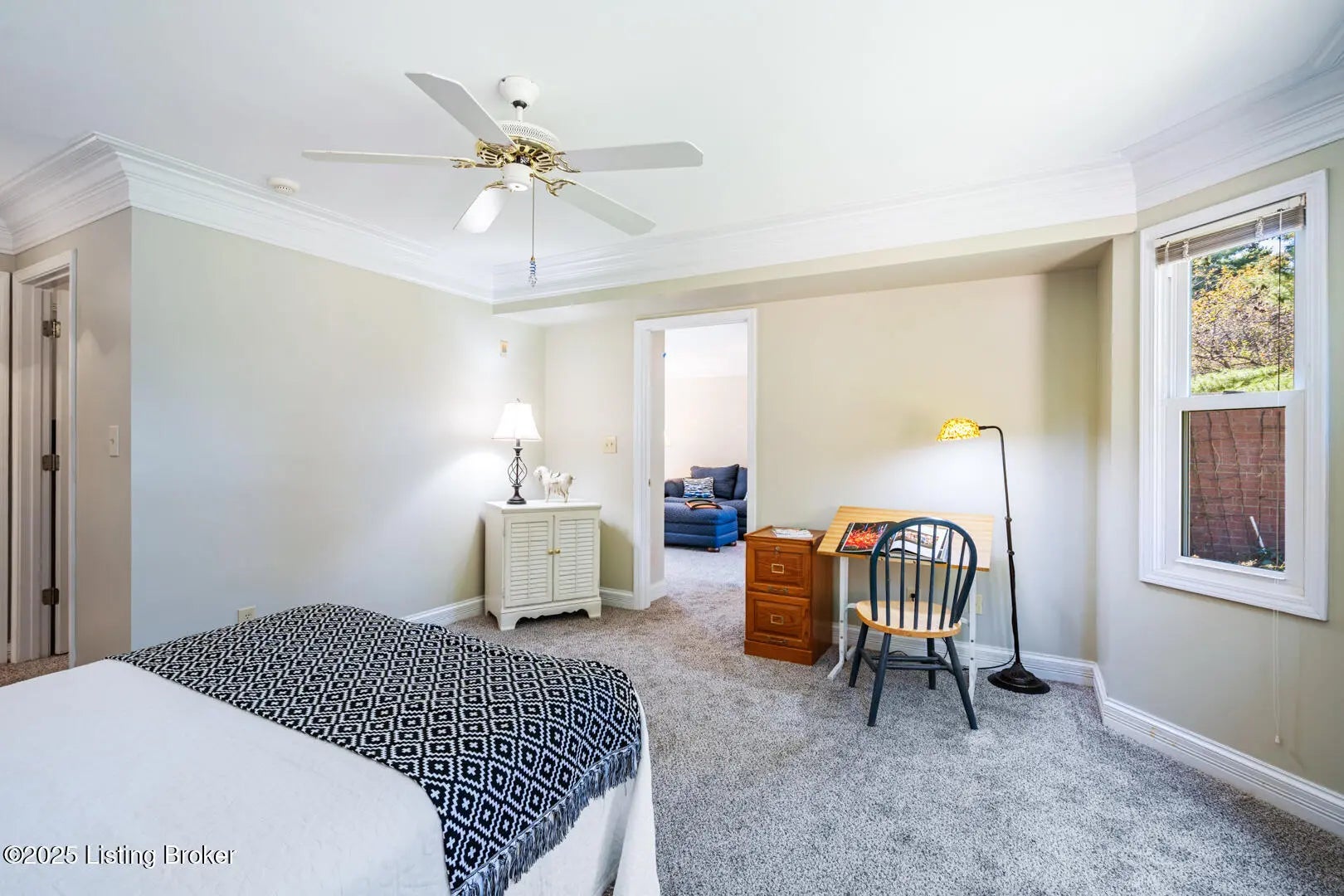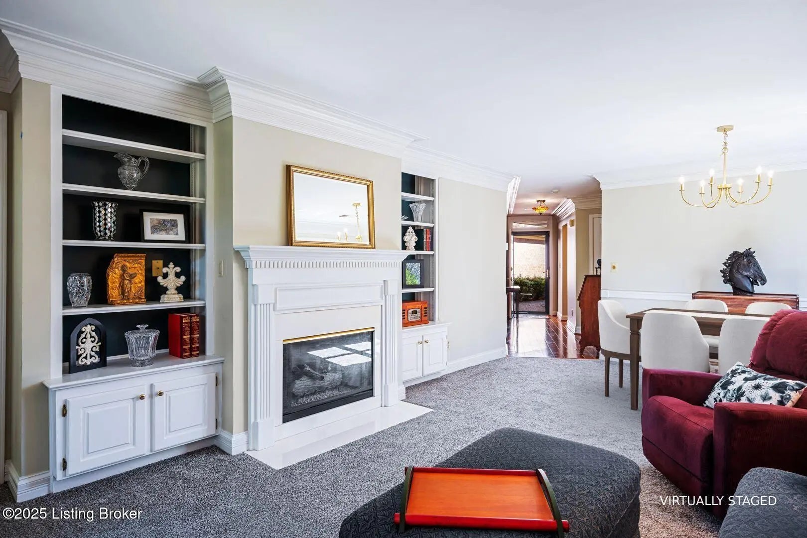 Experience the ease, comfort, and long-term value of owning in this beautifully maintained FIRST-FLOOR CONDOMINIUM located in the highly desirable HURSTBOURNE RIDGE community. Offering true SINGLE-LEVEL LIVING WITH NO STAIRS and a RARE ATTACHED TWO-CAR GARAGE, this home is an ideal option for those looking to simplify without giving up space, privacy, or storage. It also presents a smart opportunity for buyers who want the stability of ownership and the ability to build equity, especially when monthly payments can be comparable to renting. The welcoming Foyer showcases hardwood floors, triple crown molding, and freshly painted walls and ceilings (September 2025). Hardwood flooring continues into the Kitchen, which is bright, functional, and spacious enough for casual dining. Golden-oak cabinetry offers generous storage, including a walk-in pantry and two windows over the sink bring in natural light. Appliances include a GE electric range, GE microwave, GE dishwasher, and a Kenmore refrigerator with bottom freezer and ice maker. Across the Foyer, the second Bedroom provides flexibility for guests, a home office, or hobbies, and features new carpet and padding, fresh paint, double windows with mini blinds, and a full double closet. A nearby full Bath includes ceramic tile flooring, an updated three-light vanity fixture, golden-oak vanity with marble countertop, and a tub/shower combination. The Great Room is the heart of the home, offering 9-foot ceilings, triple crown molding, chair rail, and new carpet and paint. A gas fireplace with glass doors is flanked by custom built-in shelving and cabinetry, creating a warm and inviting focal point. The adjoining Dining Area comfortably accommodates a full-sized table and opens through a sliding glass door to a covered patio, perfect for relaxing outdoors or enjoying a quiet morning coffee. Tucked away at the back of the home for added privacy, the PRIMARY SUITE is a standout feature. Four windows create a bay-style sitting area with peaceful views of the landscaped grounds. The space includes triple crown molding, new carpet and padding, a ceiling fan, and fresh paint. Two closets offer exceptional storage, including a large walk-in closet with dual-level shelving and shoe storage. The Primary Bath features a double-sink vanity with marble countertop, jetted soaking tub, separate walk-in shower with glass door, recessed lighting, and a thoughtful layout. Additional highlights include a hallway Laundry and utility room with upper cabinetry and shelving, along with major system updates for peace of mind. The HVAC and air-conditioning condenser were replaced in 2021, and the water heater was replaced in 2019. The ATTACHED TWO-CAR GARAGE provides direct interior access, excellent storage, and a built-in workspace. The monthly association fee covers master insurance, exterior maintenance, water, sewer, trash, landscaping, monitored security system and use of the community clubhouse, swimming pool, and tennis court. Ideally located in Louisville's east end, Hurstbourne Ridge offers a quiet, tree-lined setting while being within walking distance to Meijer and just minutes from Kroger, Target, Home Depot, dining, and everyday conveniences. Whether you're downsizing, establishing a Louisville home base to be close to family or work, or investing in a home that offers comfort and long-term value, 3616 HURSTBOURNE RIDGE BLVD delivers a rare combination of location, livability, and thoughtful design in a well-maintained community.