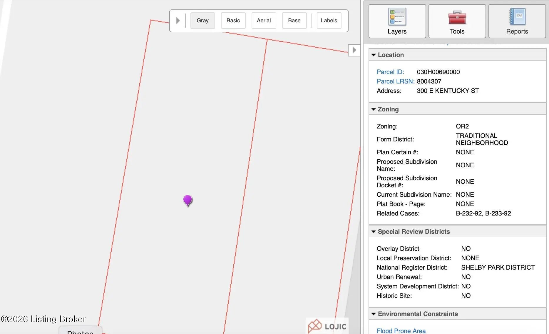 Corner lot located in the Smoketown neighborhood at the intersection of E Kentucky Street and S Floyd Street. Ready for development. High-visibility along a busy intersection, surrounded by mixed residential and commercial. Zoned OR-2. Suitable for permitted uses under OR-2 zoning, including office, residential, or mixed-use. Traditional Neighborhood form district overlay. Convenient access to I65 and public transportation. Buyer to verify information contained in this listing, including but not limited to zoning, permitted uses, utilities, measurements, and development potential.