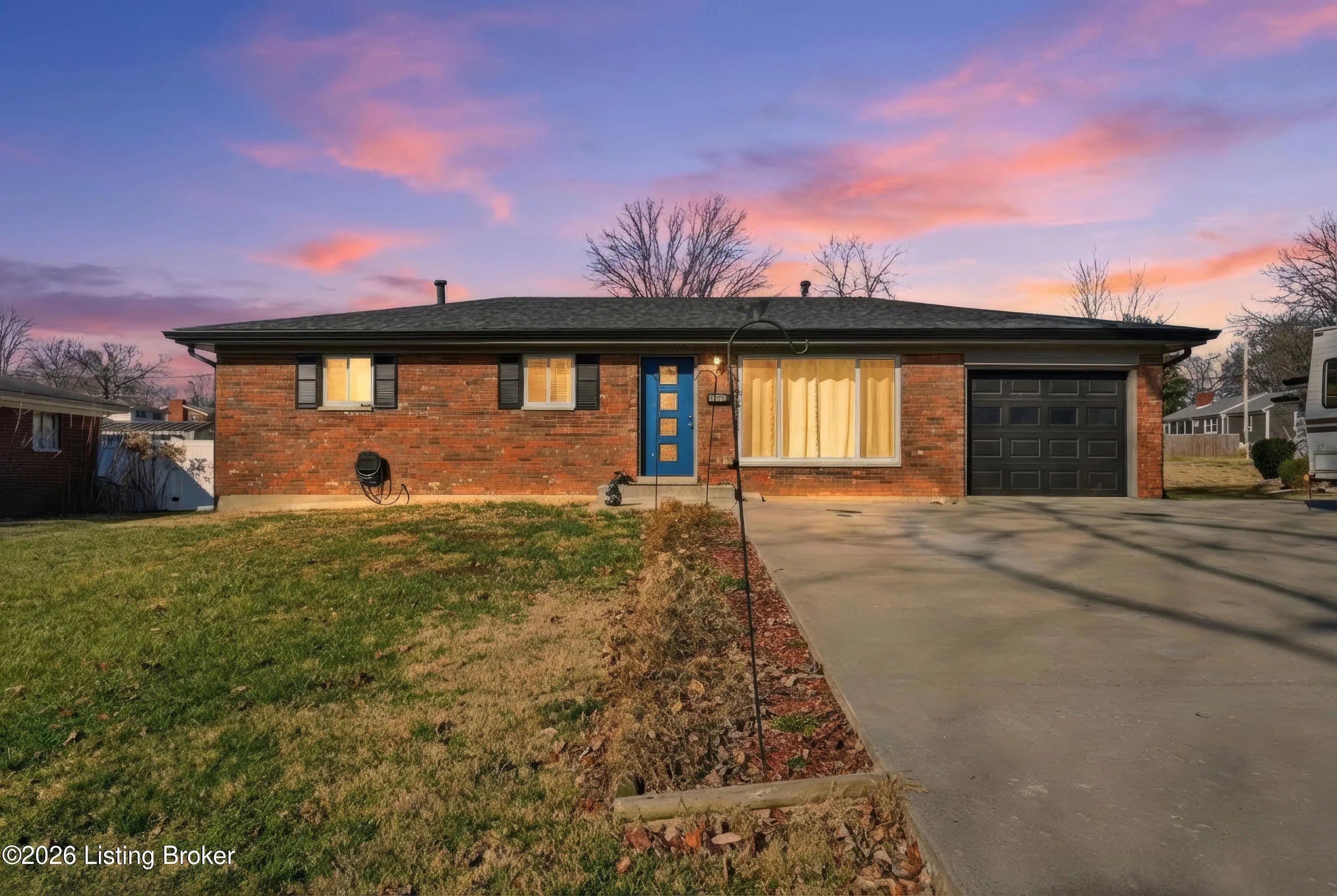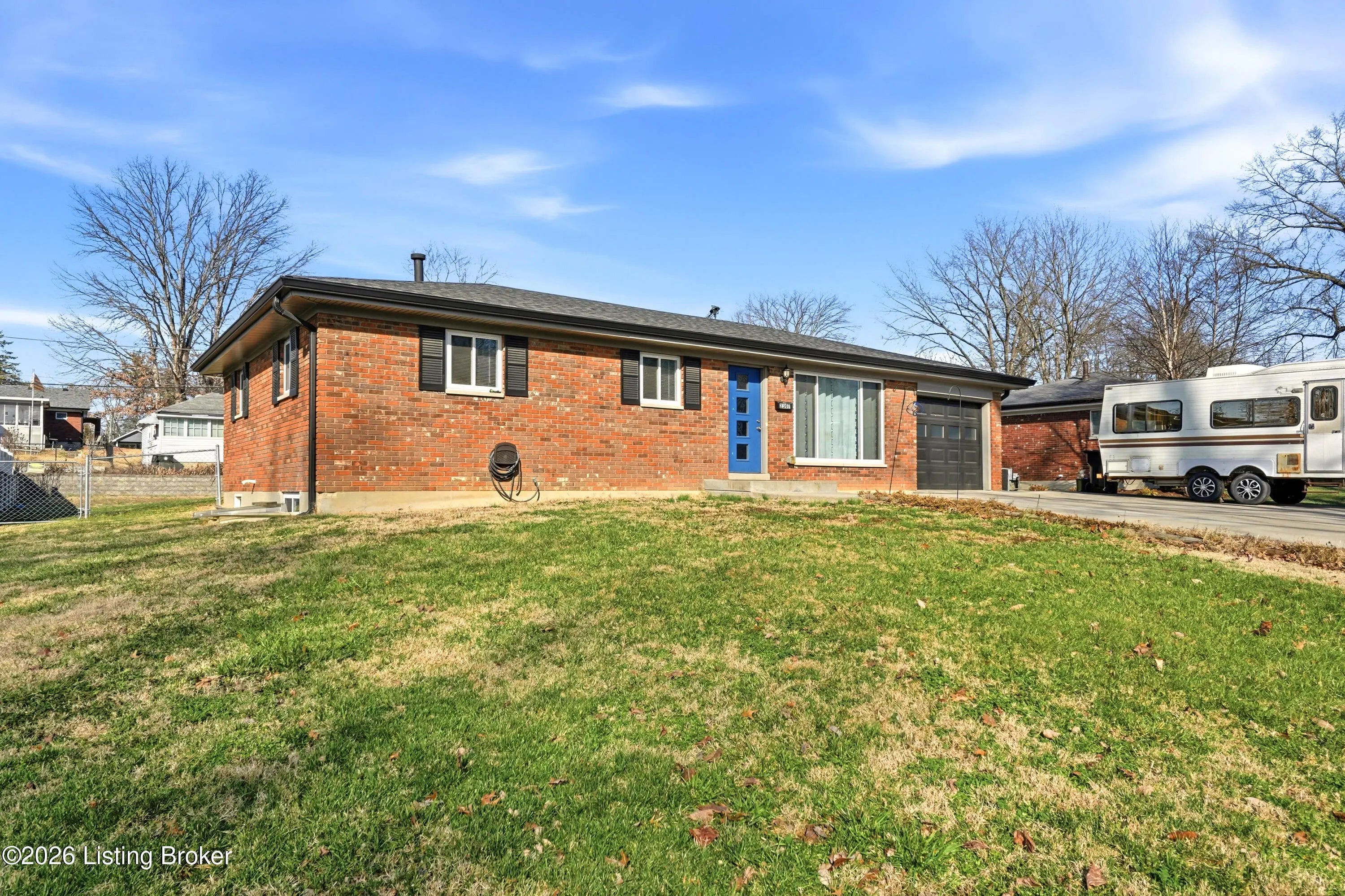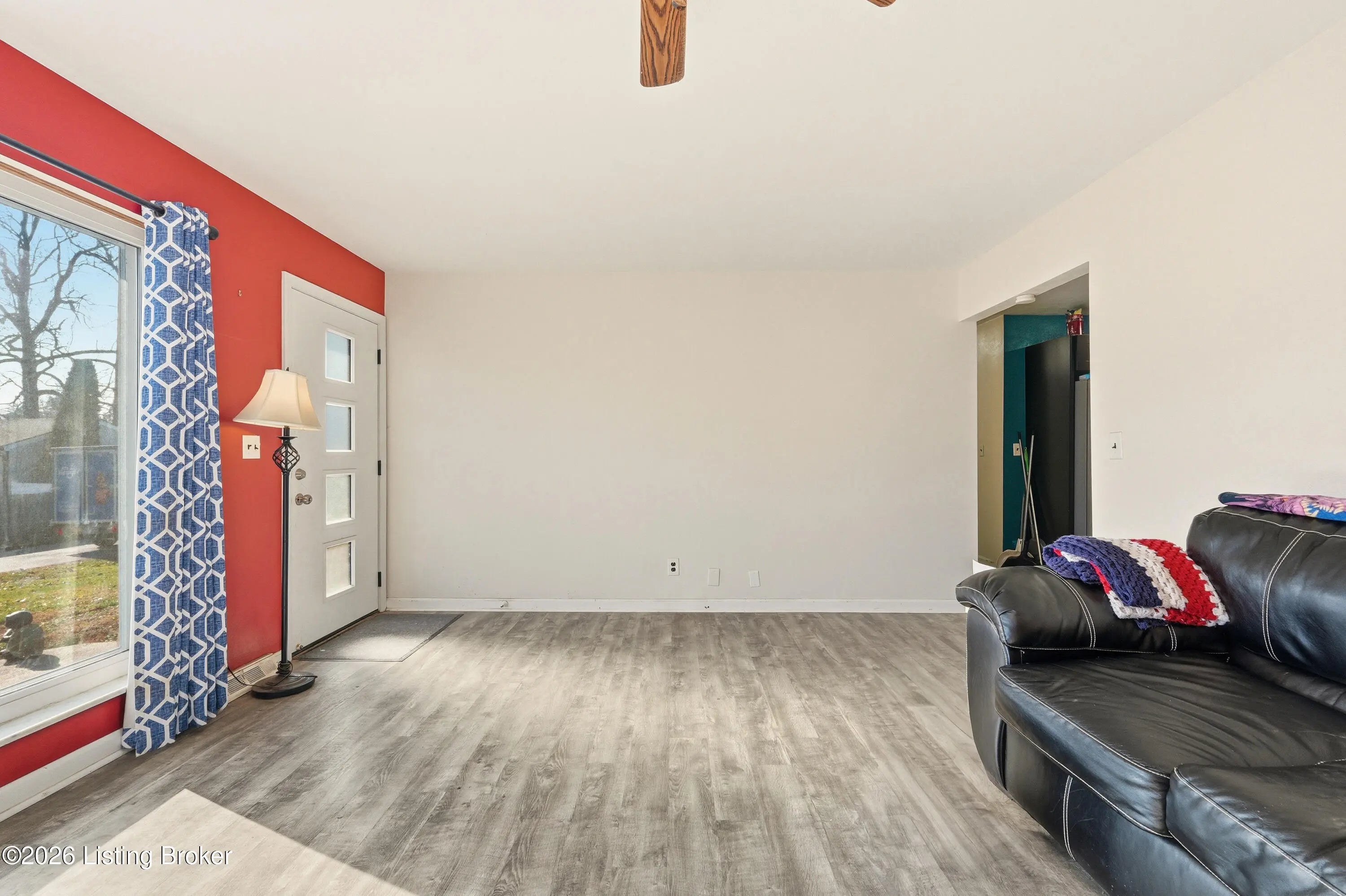 A welcoming blue front door sets the tone for this inviting New Albany home, offering warmth, personality, and comfortable living spaces throughout. Inside, the living room makes an immediate impression with a thoughtfully designed two-tone palette of red and beige, grounded by luxury vinyl plank flooring in a soft brown with subtle gray undertones. A ceiling fan with rich wood accents adds depth and contrast, tying the space together beautifully. The kitchen continues the color story with a complementary blend of blue and beige, creating a space that feels lively yet balanced. Bedrooms are individually styled with soft violet tones in some rooms and warm golden brown and fresh green hues in others, adding charm and character throughout the home. The finished basement expands the living area with a welcoming family room dressed in golden brown tones, along with a second full bathroom featuring light blue walls and crisp white tile flooring. Out back, a covered patio with an awning opens to a large, open fieldperfect for relaxing, entertaining, or enjoying the outdoors. This home blends personality, comfort, and flexible living spaces in a setting that feels welcoming from the moment you arrive.