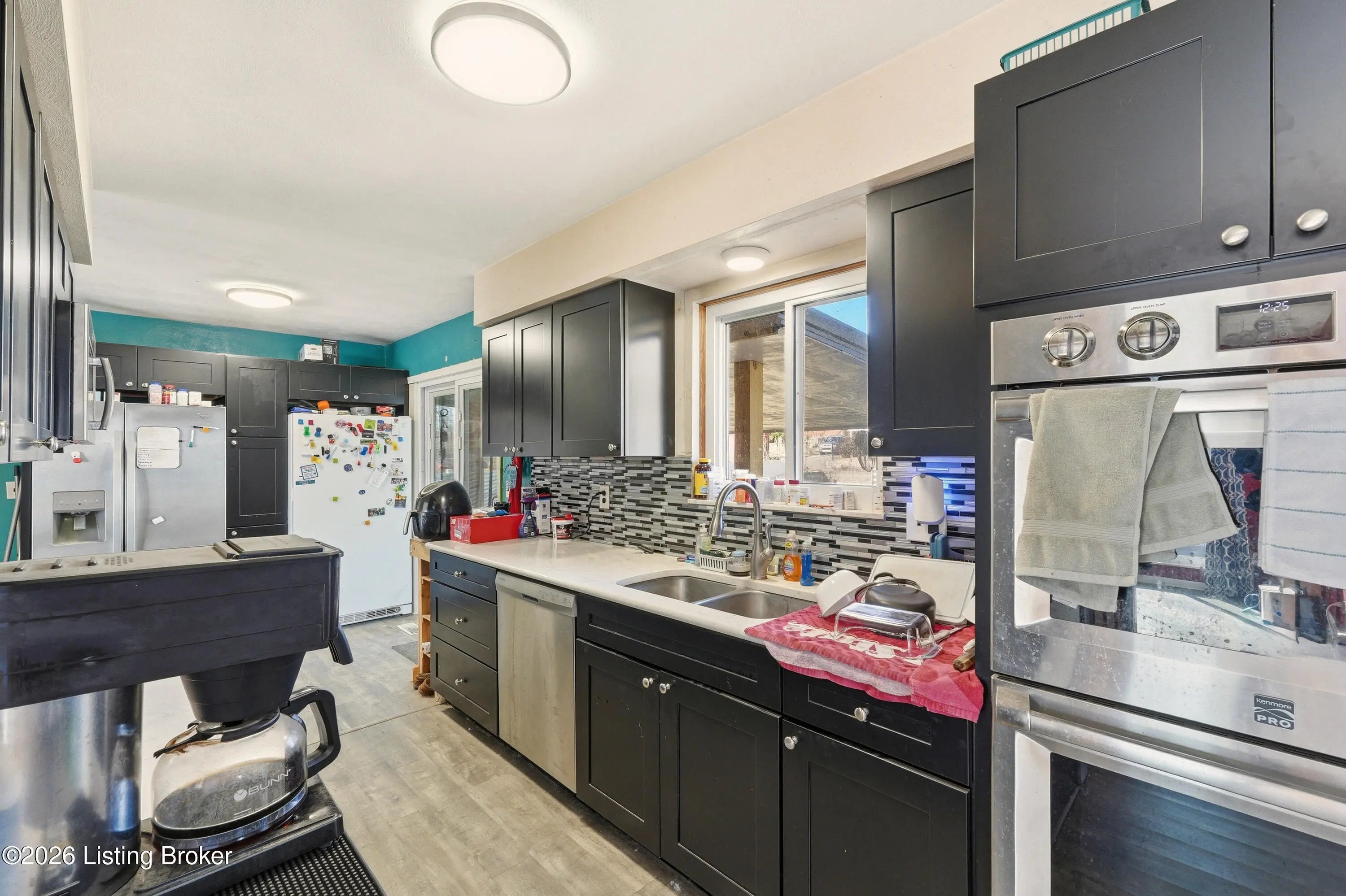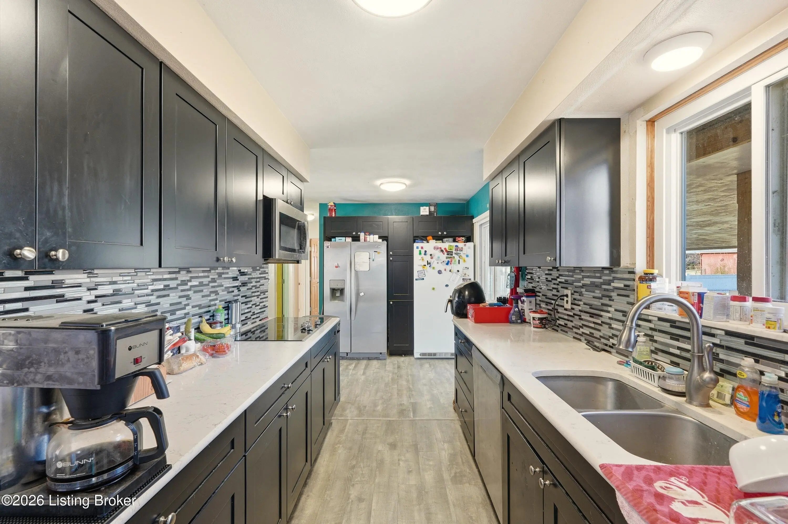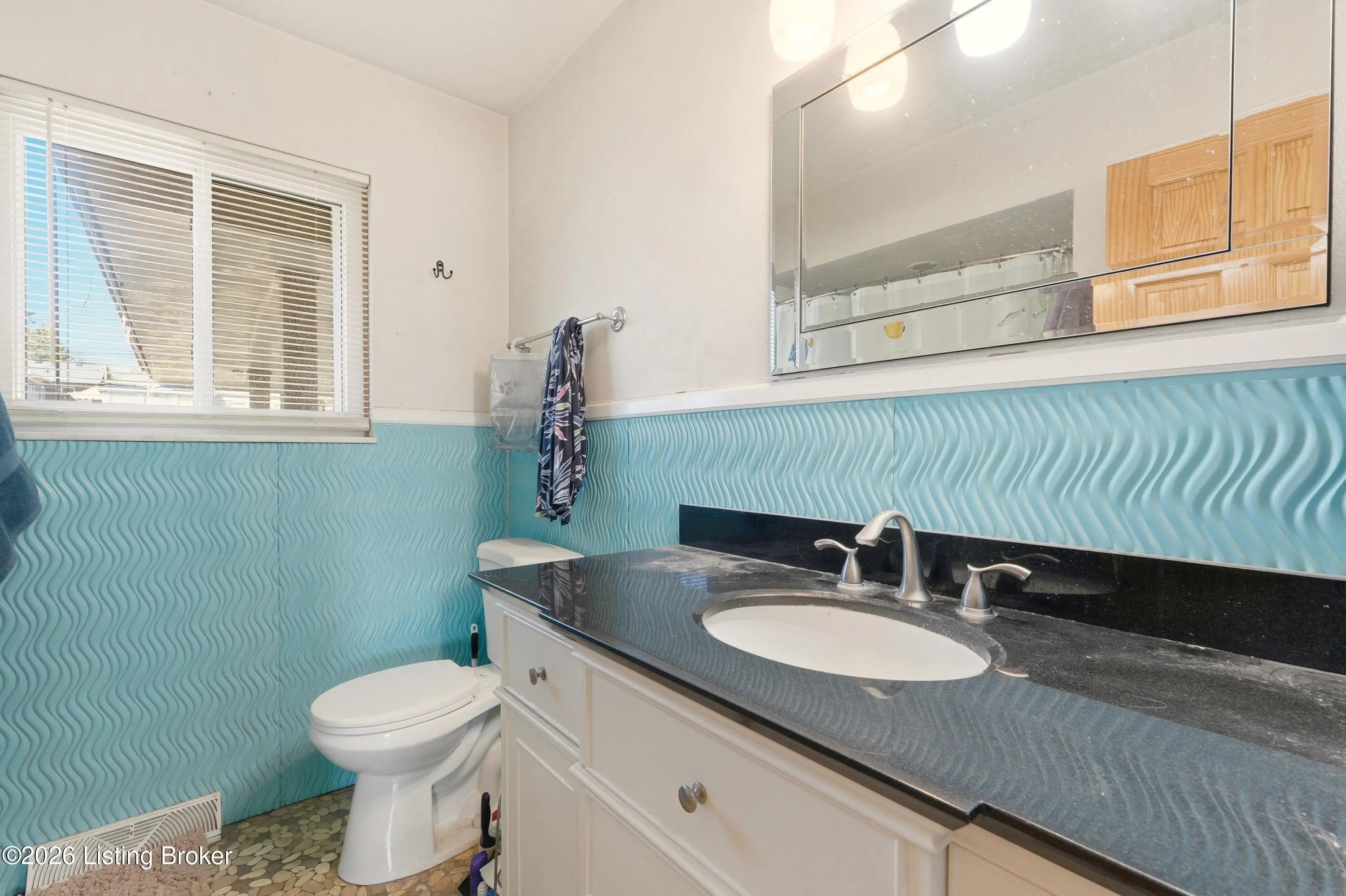 A welcoming blue front door sets the tone for this inviting New Albany home, offering warmth, personality, and comfortable living spaces throughout. Inside, the living room makes an immediate impression with a thoughtfully designed two-tone palette of red and beige, grounded by luxury vinyl plank flooring in a soft brown with subtle gray undertones. A ceiling fan with rich wood accents adds depth and contrast, tying the space together beautifully. The kitchen continues the color story with a complementary blend of blue and beige, creating a space that feels lively yet balanced. Bedrooms are individually styled with soft violet tones in some rooms and warm golden brown and fresh green hues in others, adding charm and character throughout the home. The finished basement expands the living area with a welcoming family room dressed in golden brown tones, along with a second full bathroom featuring light blue walls and crisp white tile flooring. Out back, a covered patio with an awning opens to a large, open fieldperfect for relaxing, entertaining, or enjoying the outdoors. This home blends personality, comfort, and flexible living spaces in a setting that feels welcoming from the moment you arrive.